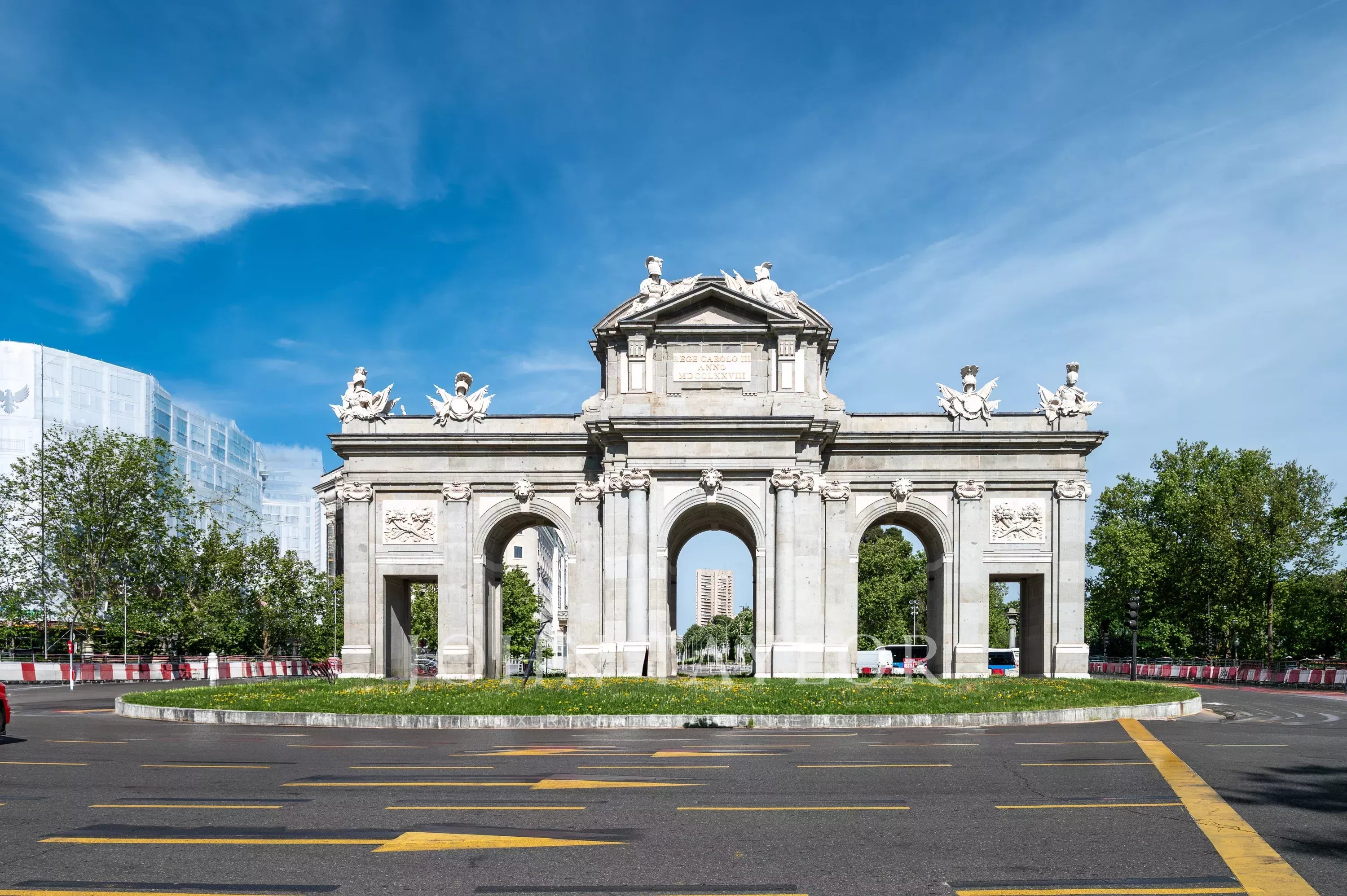 Esta exclusiva vivienda se sitúa en frente a la emblemática Puerta de Alcalá, ofreciendo impresionantes vistas directas a uno de los iconos más representativos de Madrid. Su excepcional distribución en esquina permite que estancias principales como la cocina, el comedor, el salón y la suite principal disfruten de abundante luz natural y panorámicas únicas.