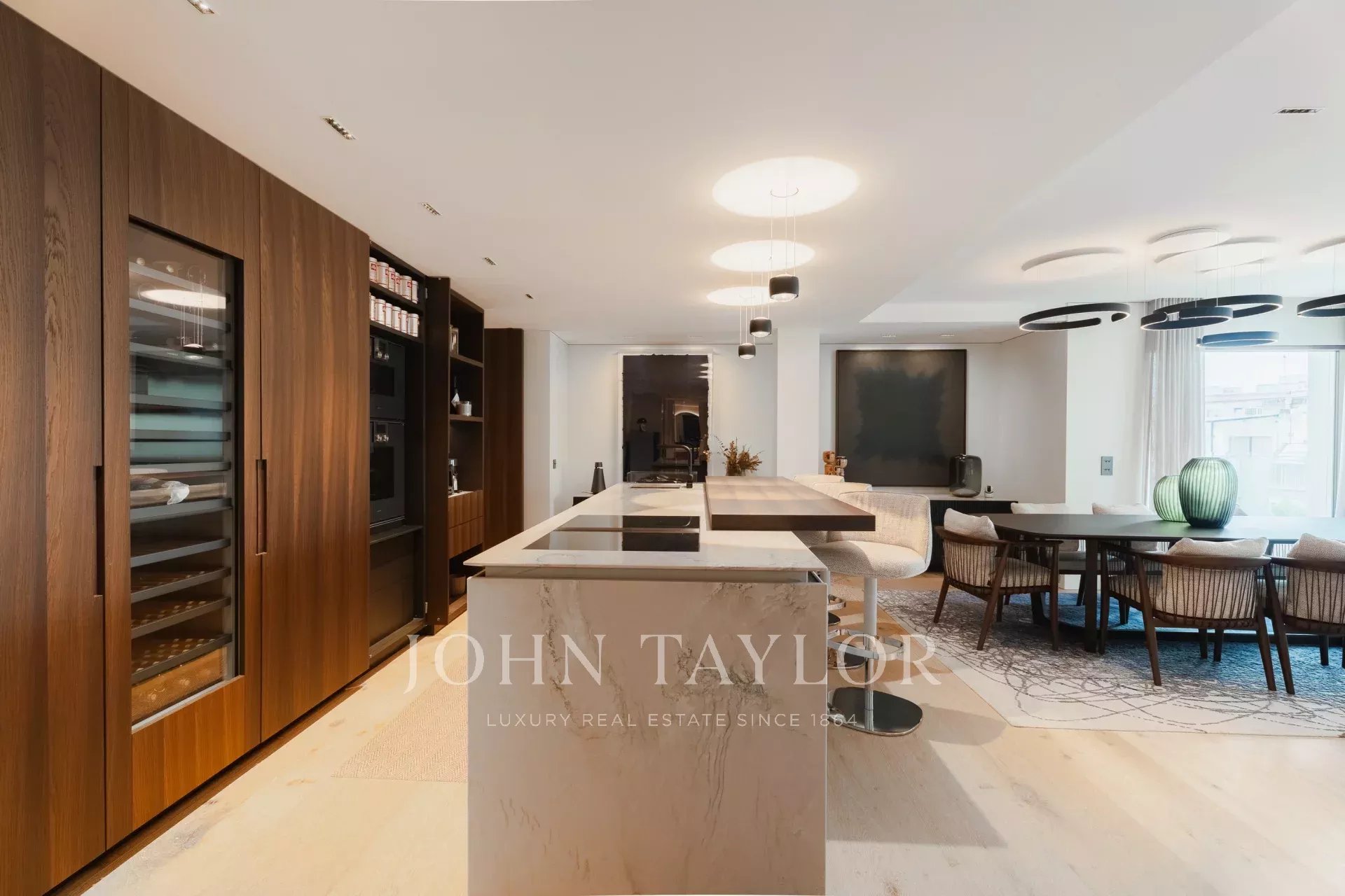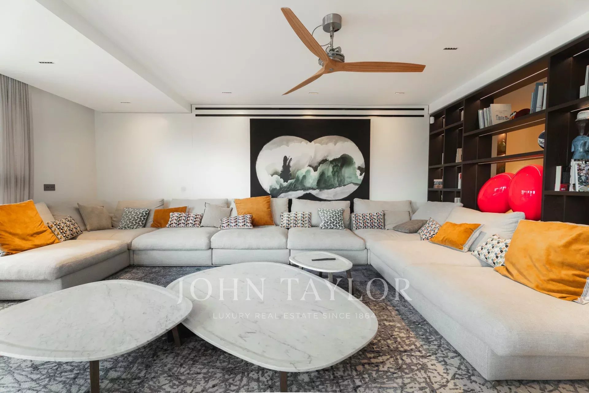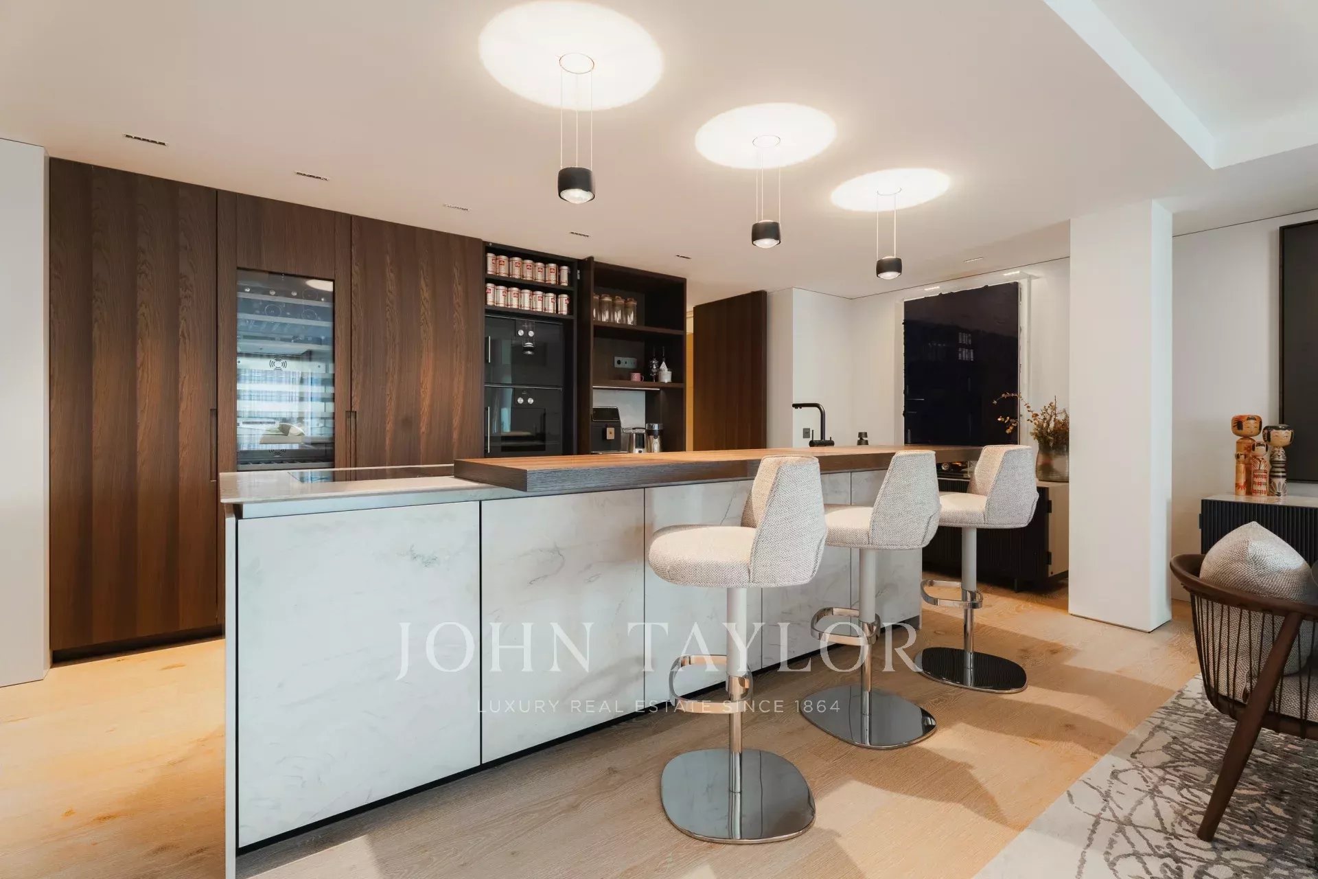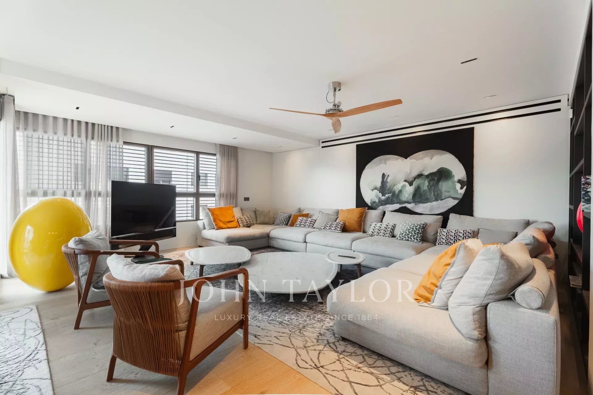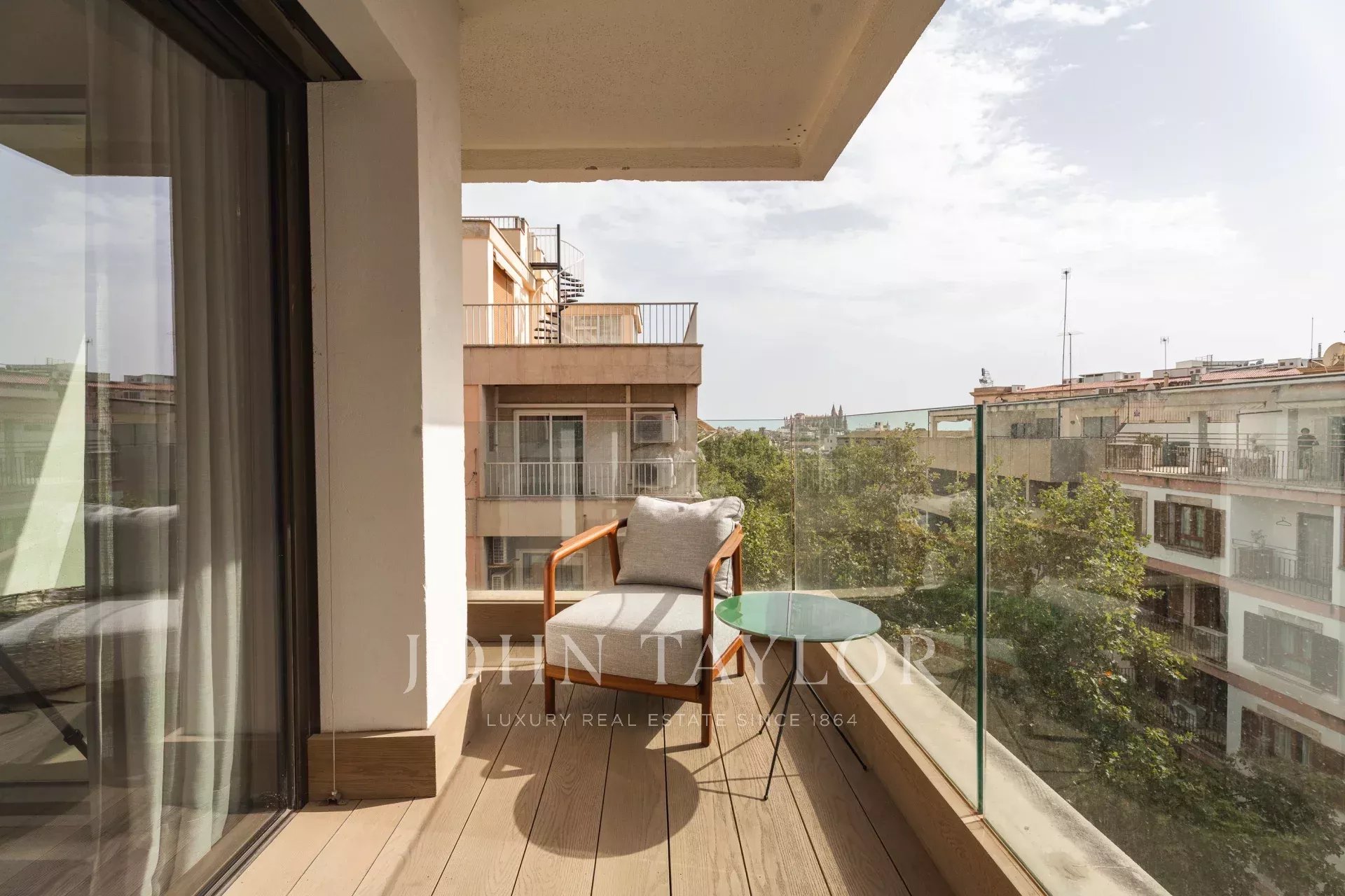 Este moderno apartamento, completamente amueblado, cuenta con una amplia distribución de concepto abierto que integra una cocina de diseño, un elegante comedor y un luminoso salón con acceso directo a una terraza cubierta con vistas despejadas a la icónica Catedral de Palma.