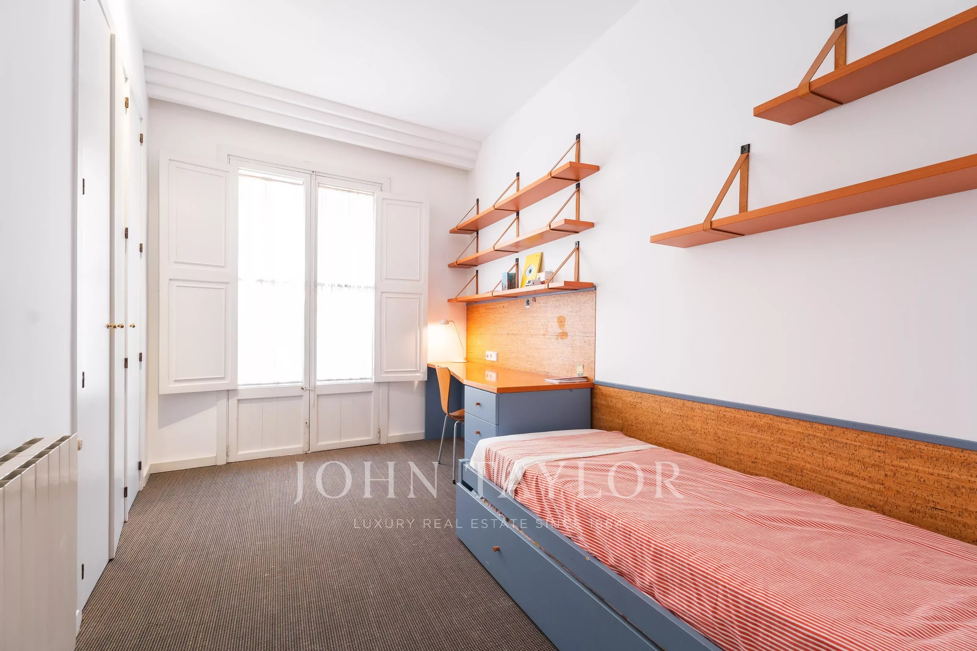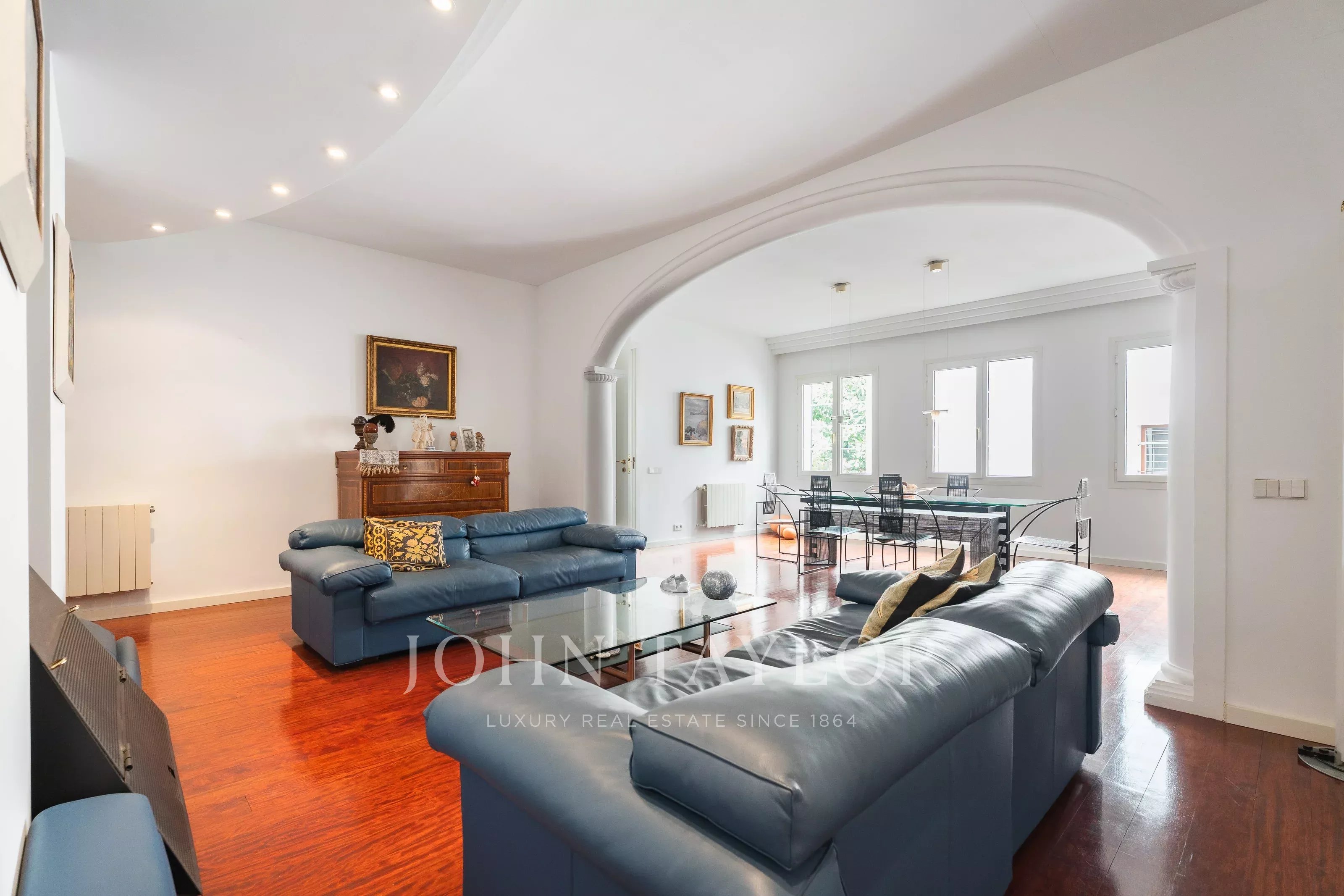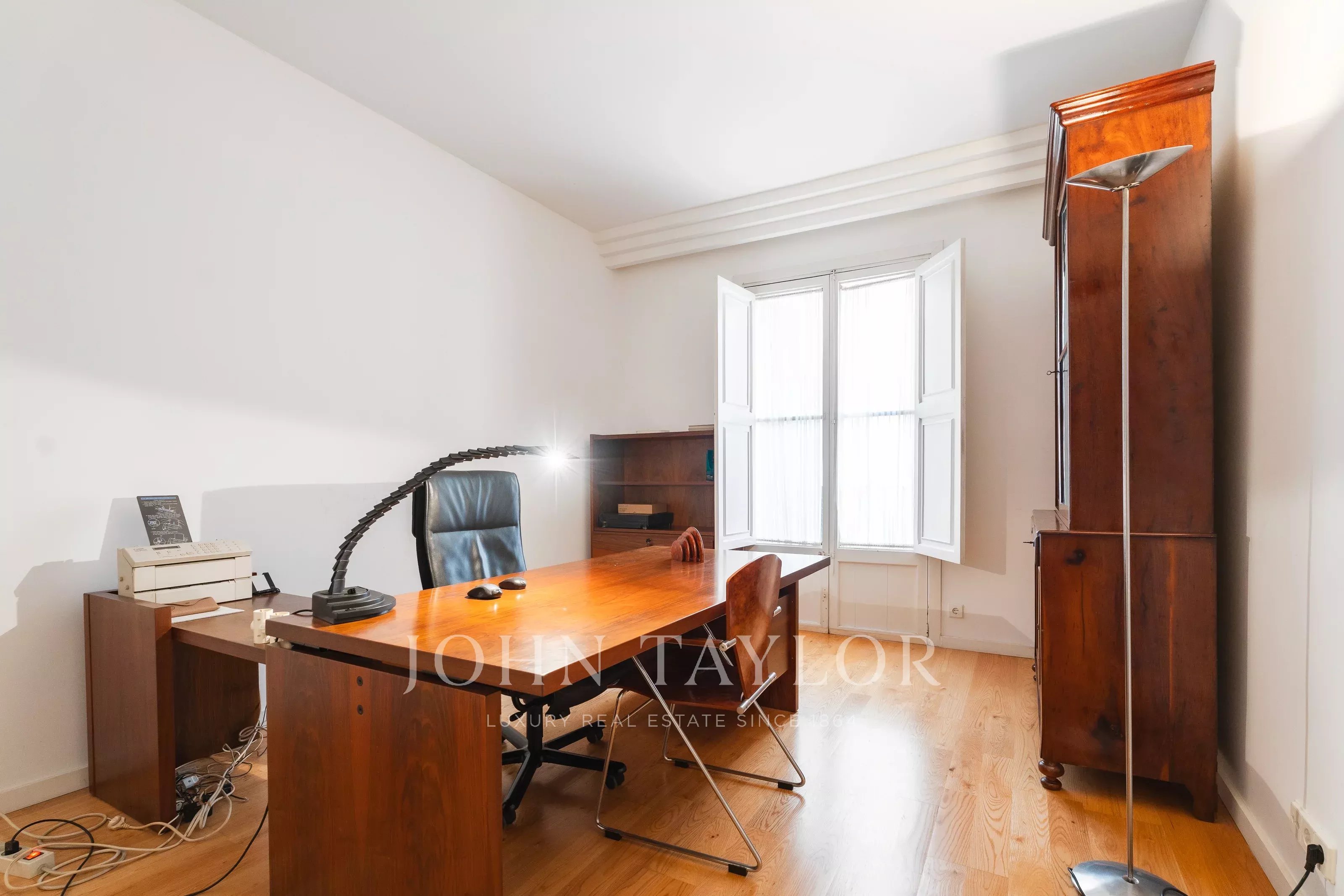 El inmueble cuenta con un amplio salón, comedor independiente y cocina totalmente equipada, destacando por su distribución funcional y luminosa. Dispone de dos accesos, entrada principal y entrada de servicio, una característica muy valorada en pisos señoriales en Palma. El edificio, con carácter histórico, no dispone de ascensor, manteniendo su esencia original.