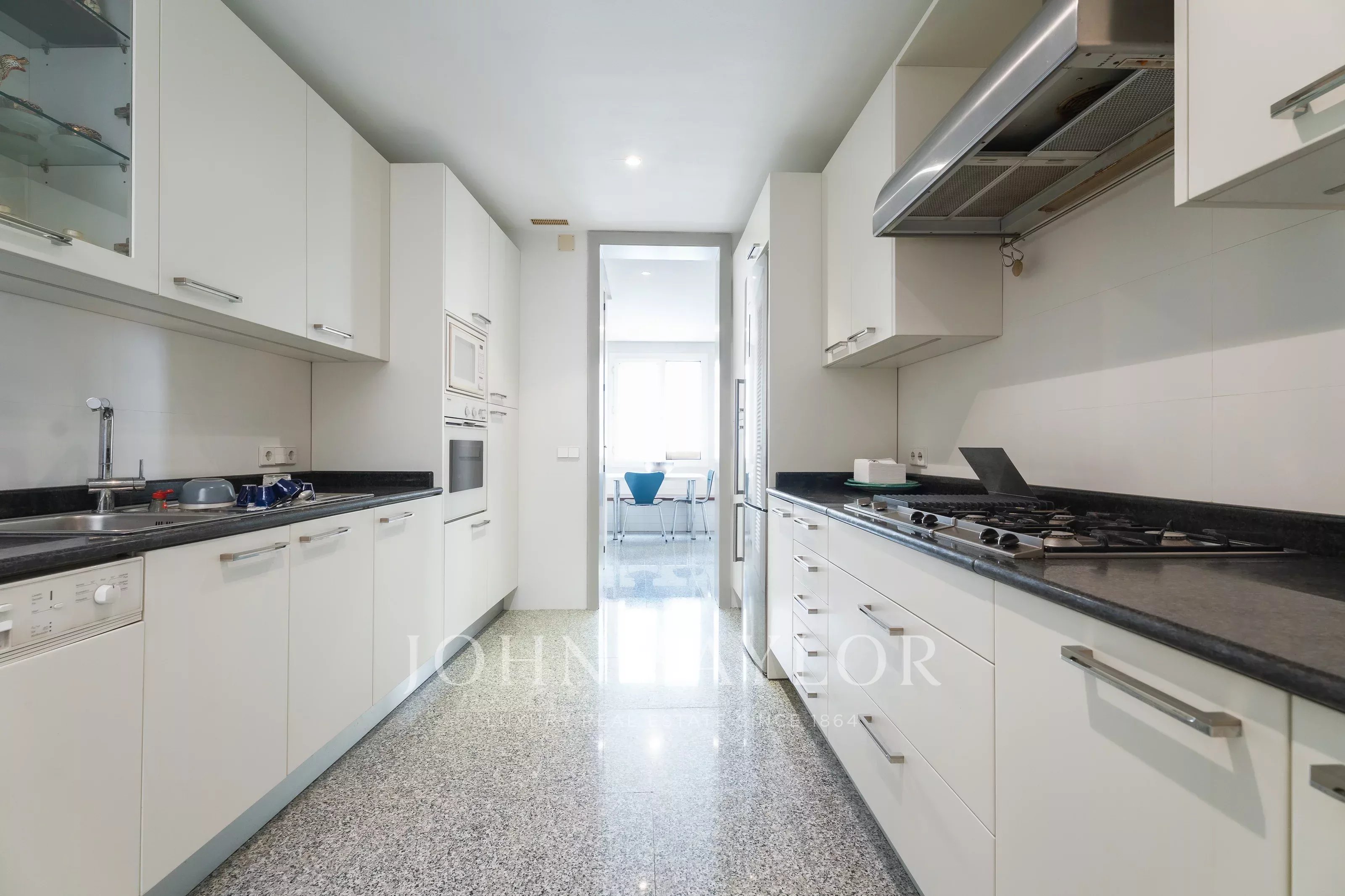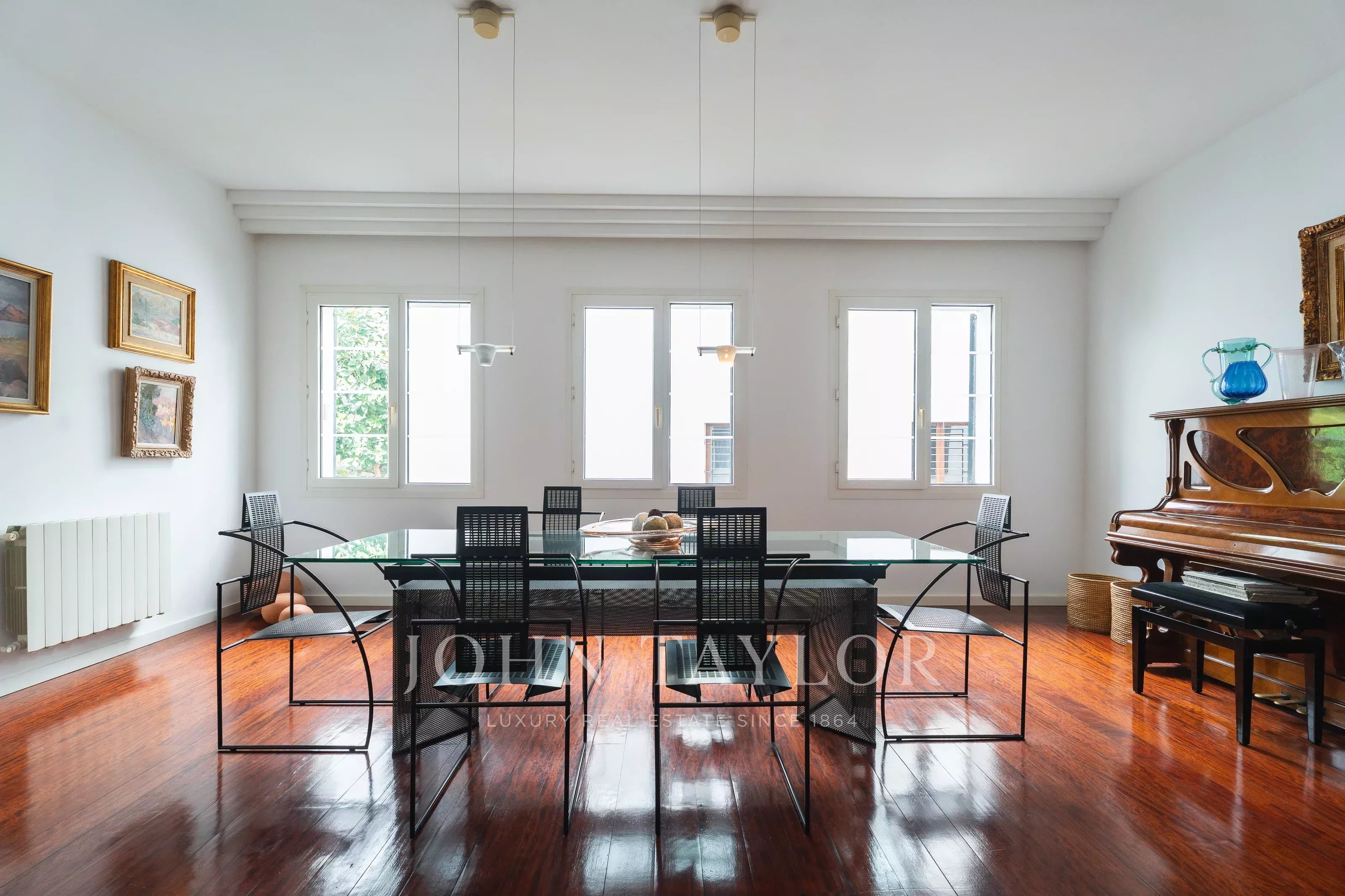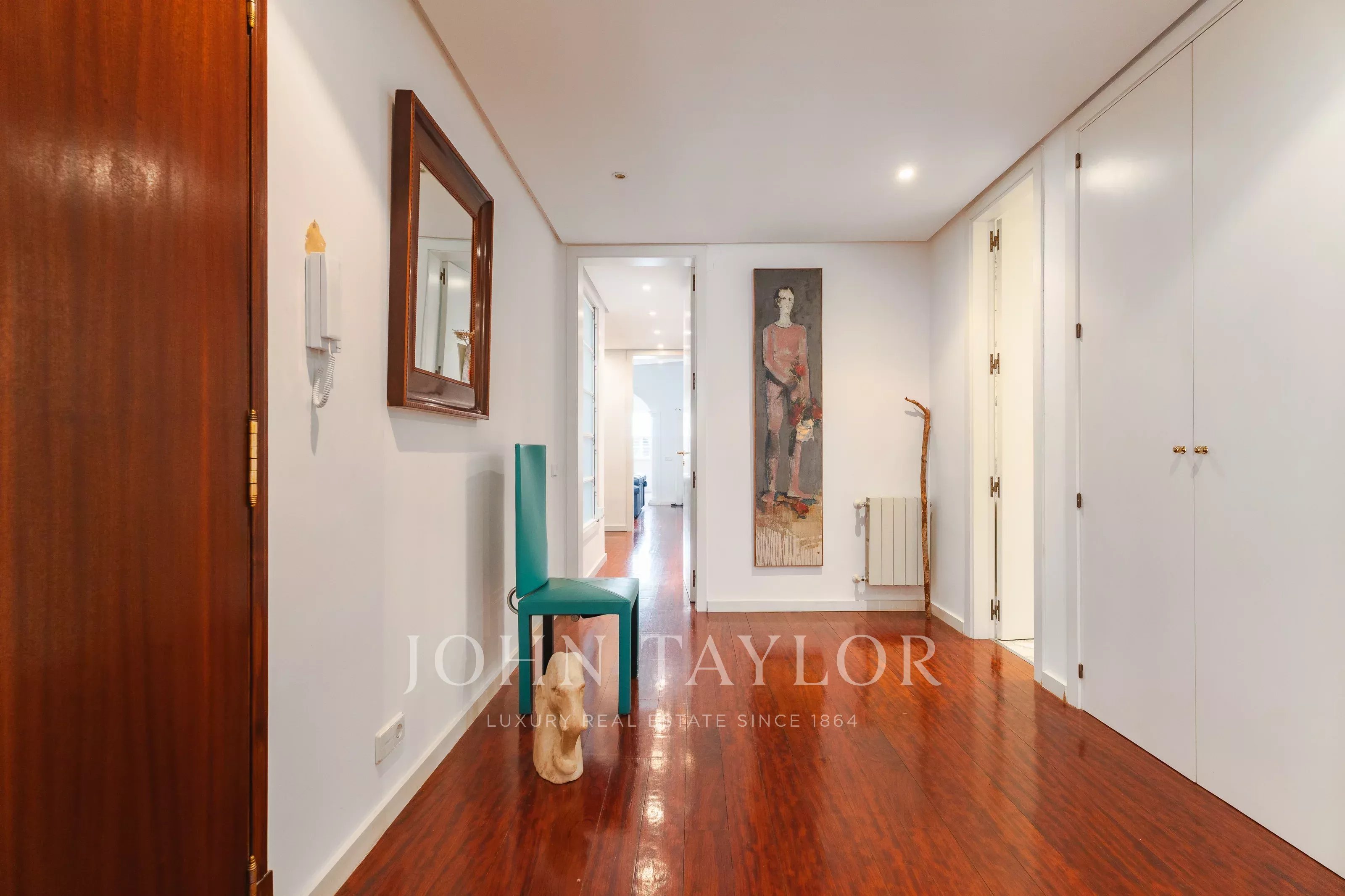El inmueble cuenta con un amplio salón, comedor independiente y cocina totalmente equipada, destacando por su distribución funcional y luminosa. Dispone de dos accesos, entrada principal y entrada de servicio, una característica muy valorada en pisos señoriales en Palma. El edificio, con carácter histórico, no dispone de ascensor, manteniendo su esencia original.