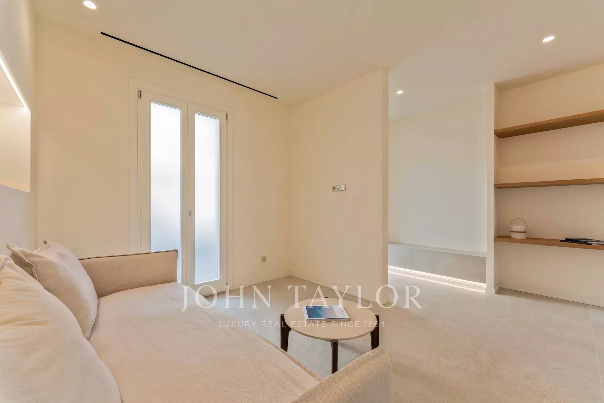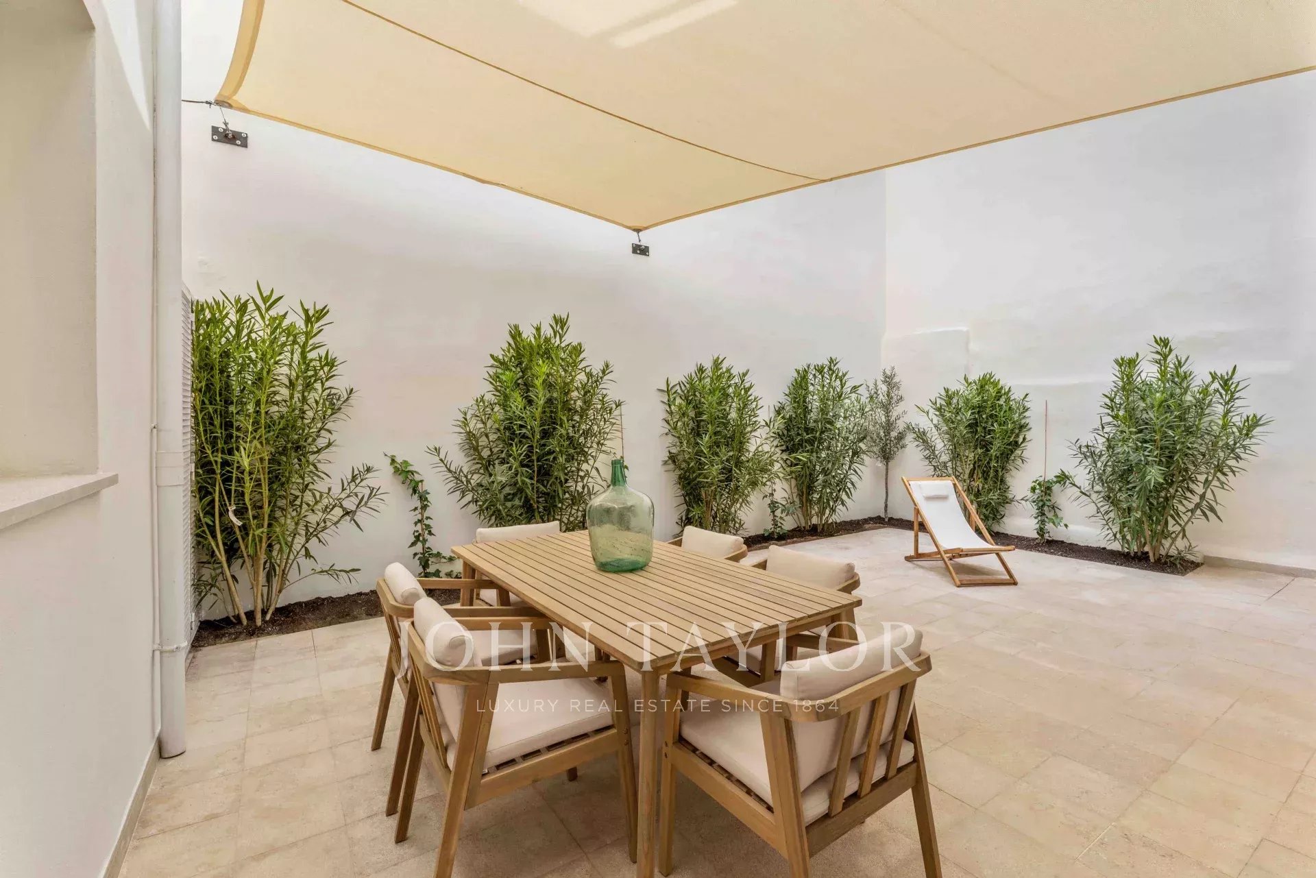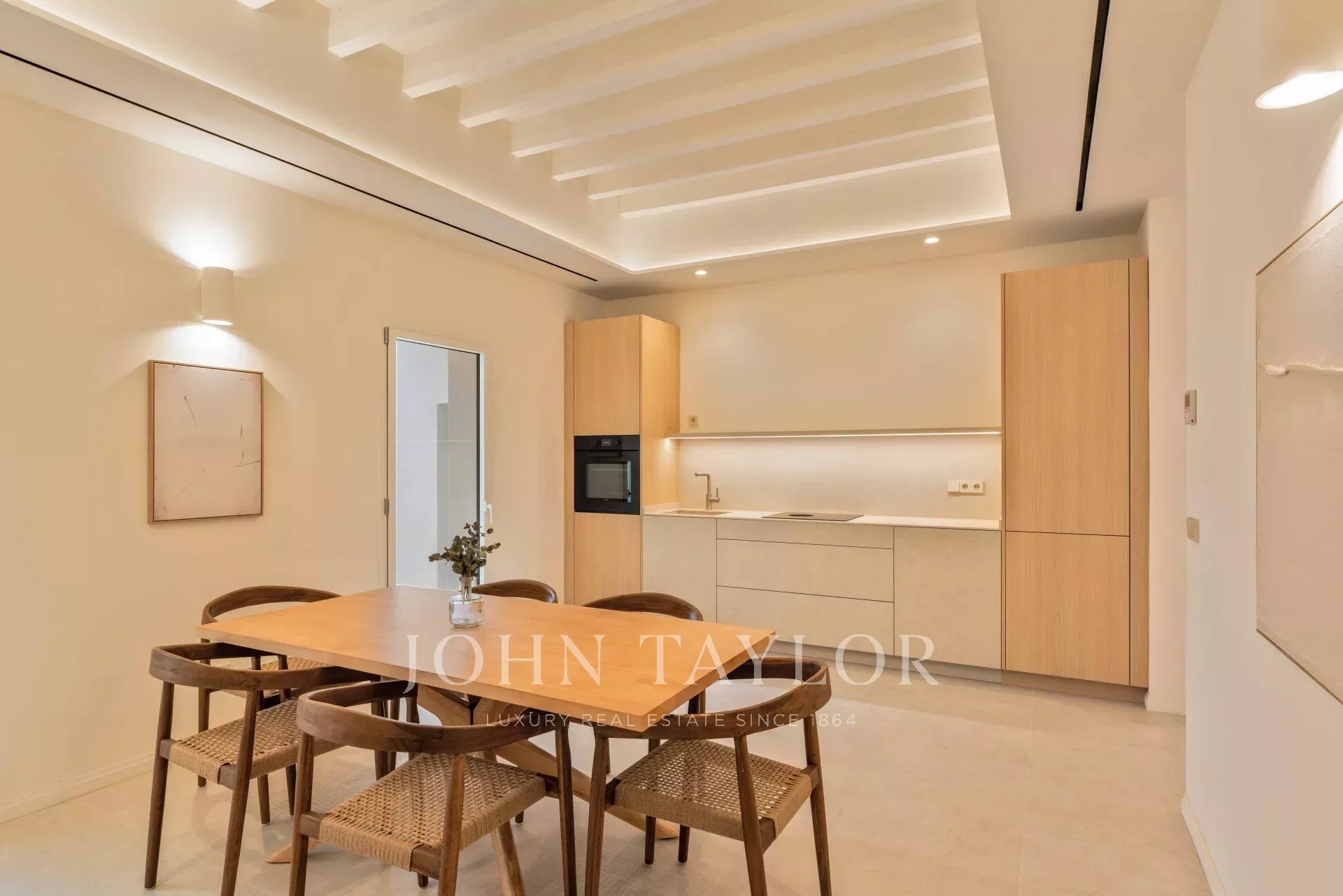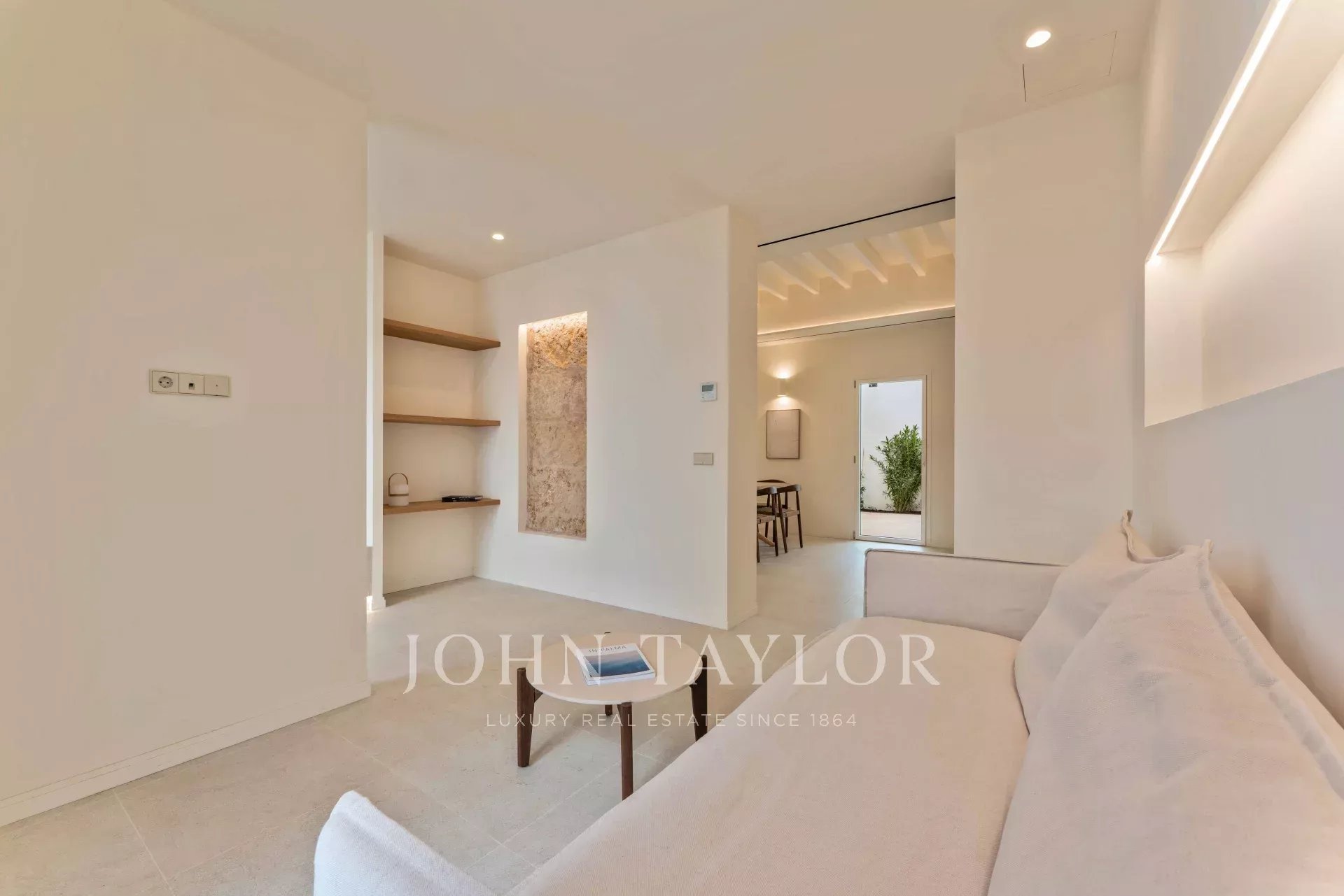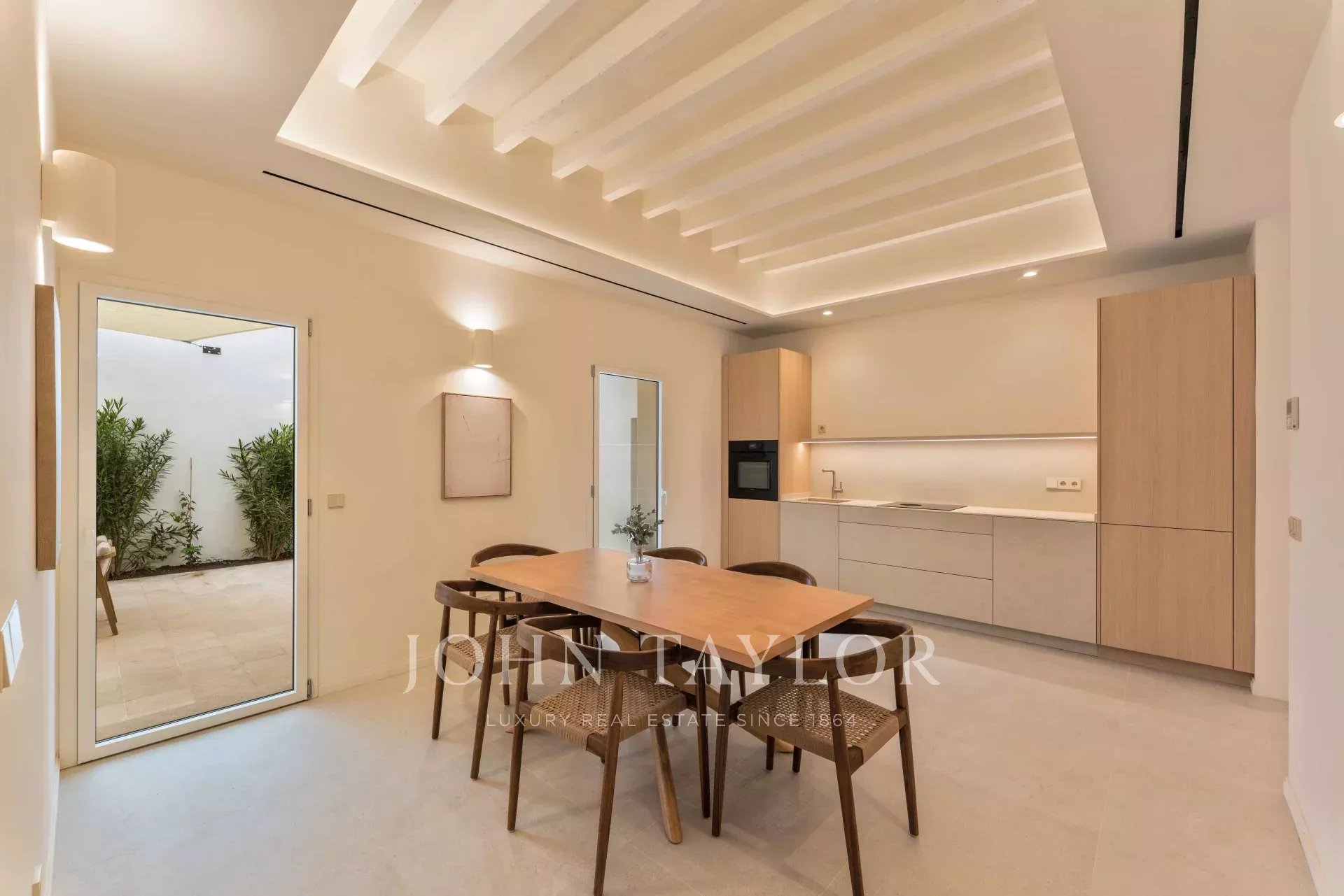 Este moderno apartamento en planta baja fue completamente renovado en 2025 y está situado a pocos pasos del Mercado de Santa Catalina, el Club de Tenis y el centro histórico de Palma. Con aprox. 150 m² de espacio habitable, cuenta con un salón-comedor de planta abierta con una cocina de diseño totalmente equipada (Bora, Siemens), dos dormitorios dobles, dos baños y un estudio. La terraza de aprox. 40 m² invita a disfrutar de la vida al aire libre en el corazón de la ciudad e incluye una pequeña piscina, ideal para refrescarse en los días calurosos. El apartamento está completamente amueblado y tiene acabados de alta calidad, como aire acondicionado, ventanas de doble acristalamiento y accesorios hechos a medida en todo el apartamento. Se trata de una oportunidad de alquiler exclusiva en uno de los barrios más solicitados de Palma. Periodo mínimo de alquiler: 6 meses.