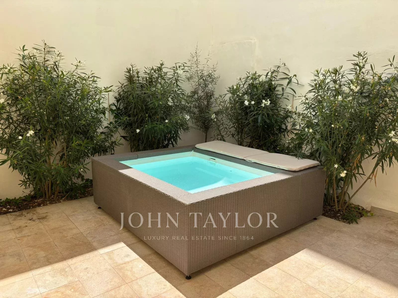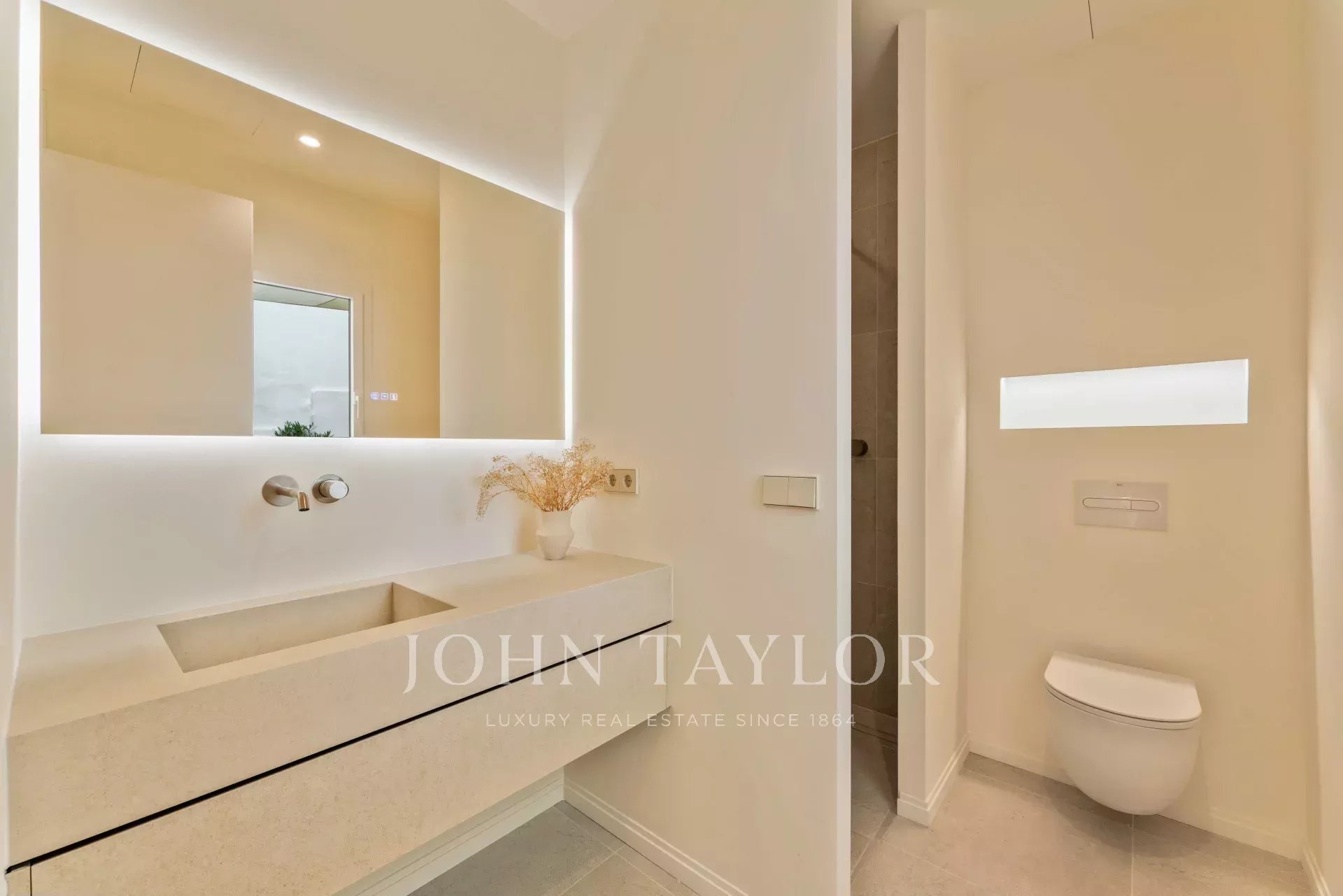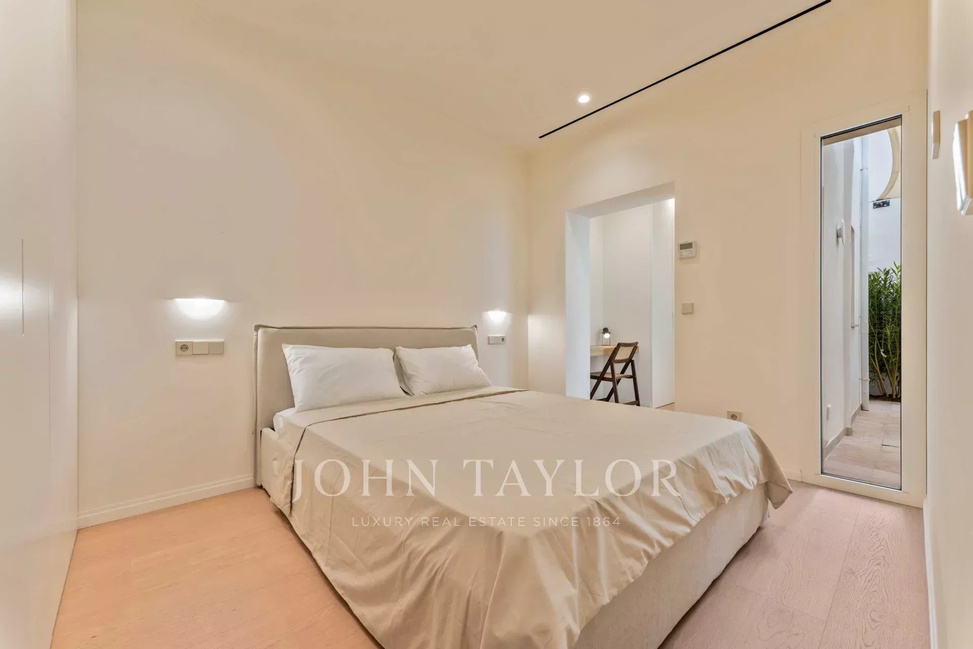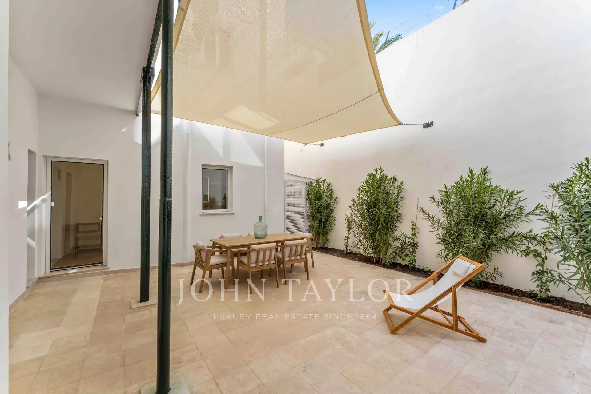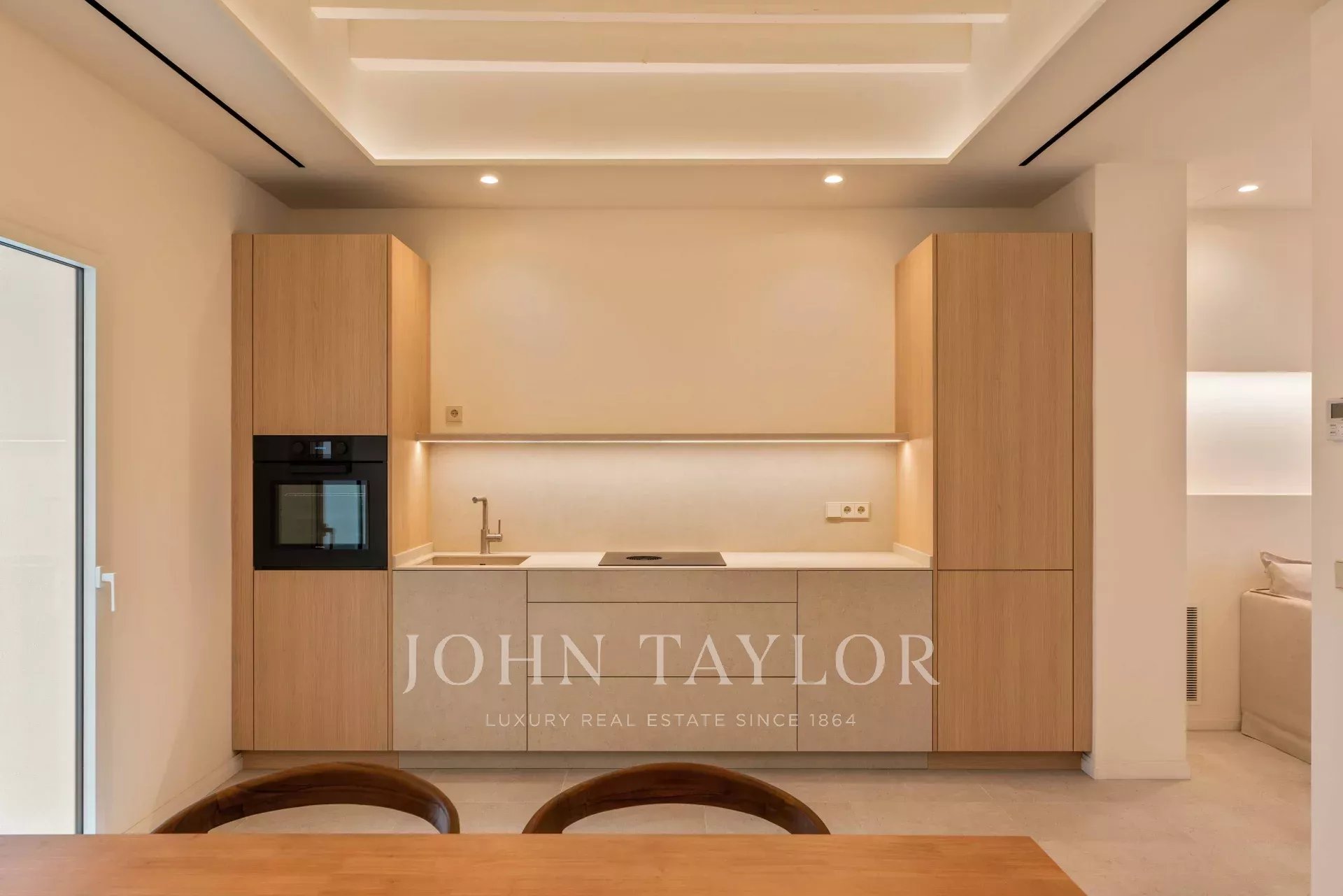 Este moderno apartamento en planta baja fue completamente renovado en 2025 y está situado a pocos pasos del Mercado de Santa Catalina, el Club de Tenis y el centro histórico de Palma. Con aprox. 150 m² de espacio habitable, cuenta con un salón-comedor de planta abierta con una cocina de diseño totalmente equipada (Bora, Siemens), dos dormitorios dobles, dos baños y un estudio. La terraza de aprox. 40 m² invita a disfrutar de la vida al aire libre en el corazón de la ciudad e incluye una pequeña piscina, ideal para refrescarse en los días calurosos. El apartamento está completamente amueblado y tiene acabados de alta calidad, como aire acondicionado, ventanas de doble acristalamiento y accesorios hechos a medida en todo el apartamento. Se trata de una oportunidad de alquiler exclusiva en uno de los barrios más solicitados de Palma. Periodo mínimo de alquiler: 6 meses.