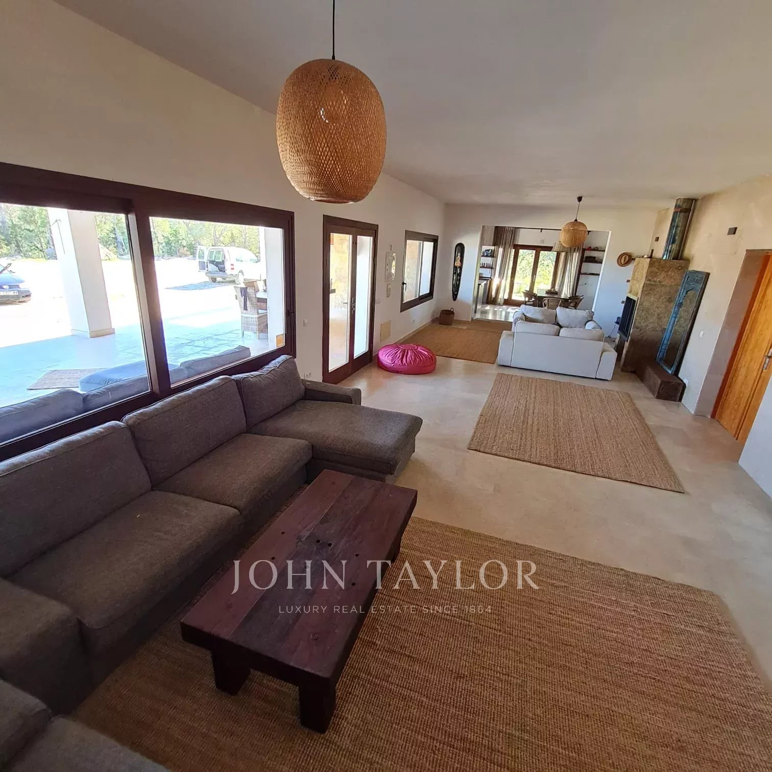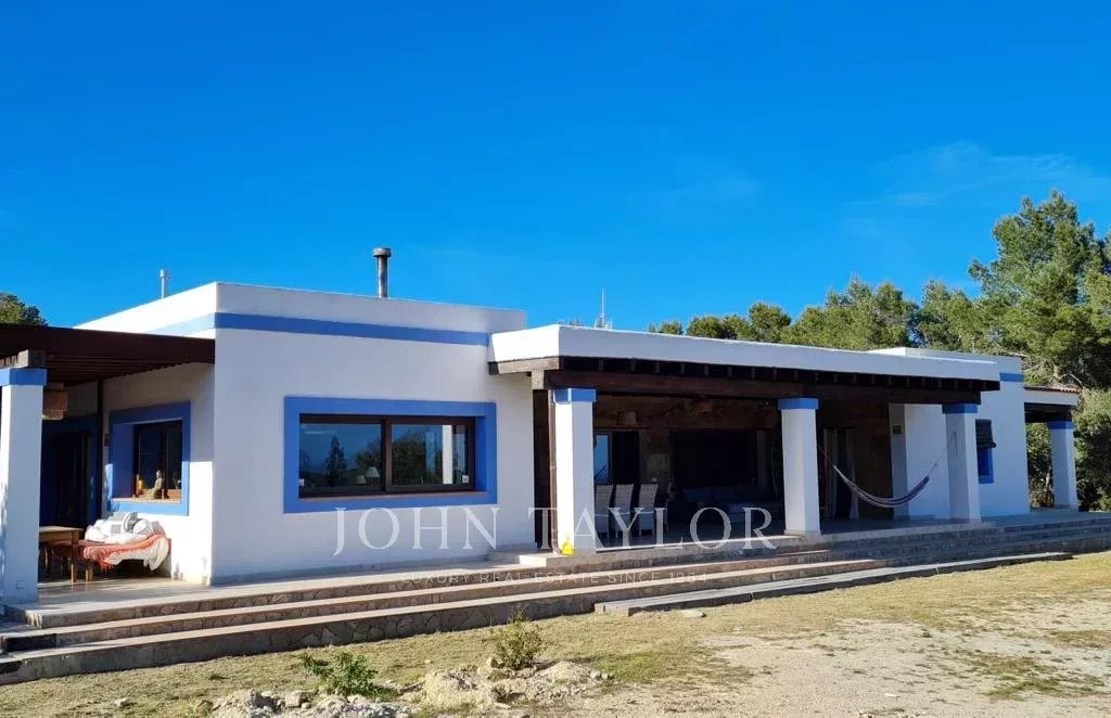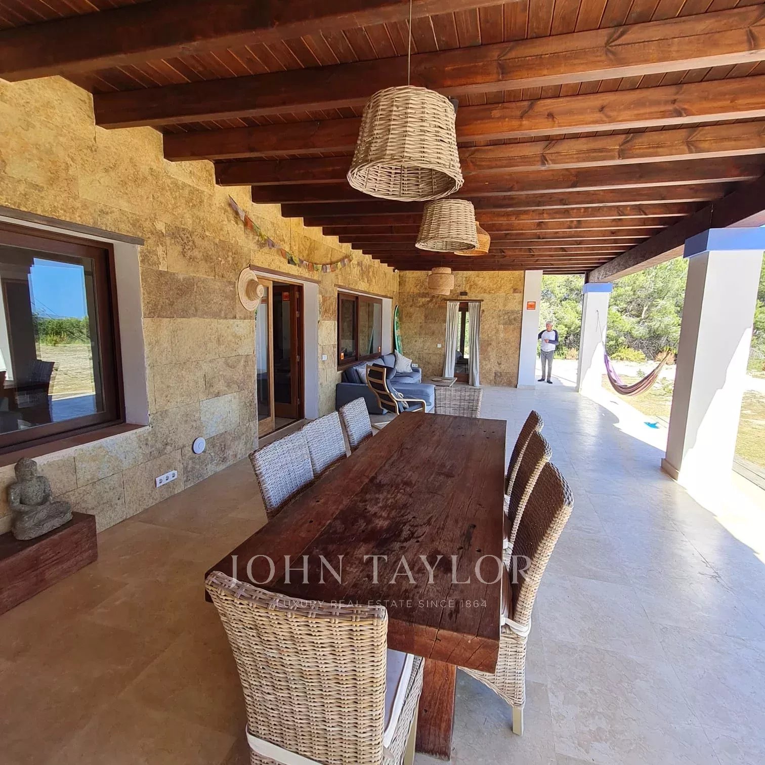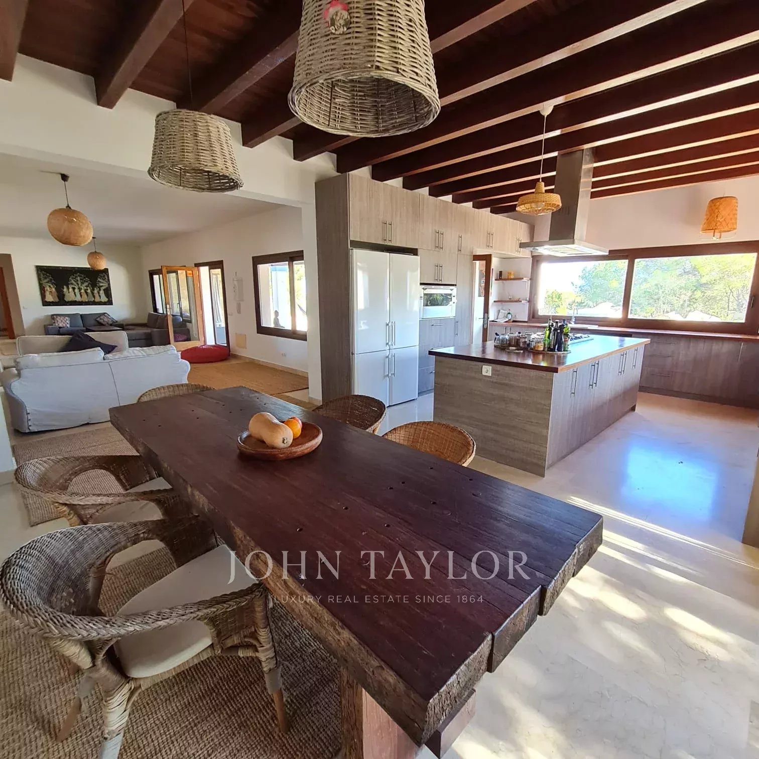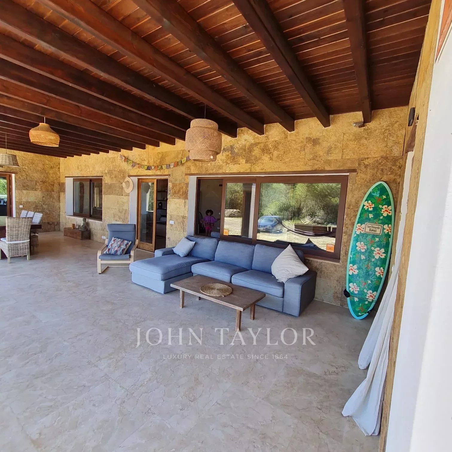 La gran extensión de terreno que rodea la villa ofrece un espacio ideal para relajarse, dar paseos y disfrutar de la magia de Ibiza en un entorno tranquilo y natural.