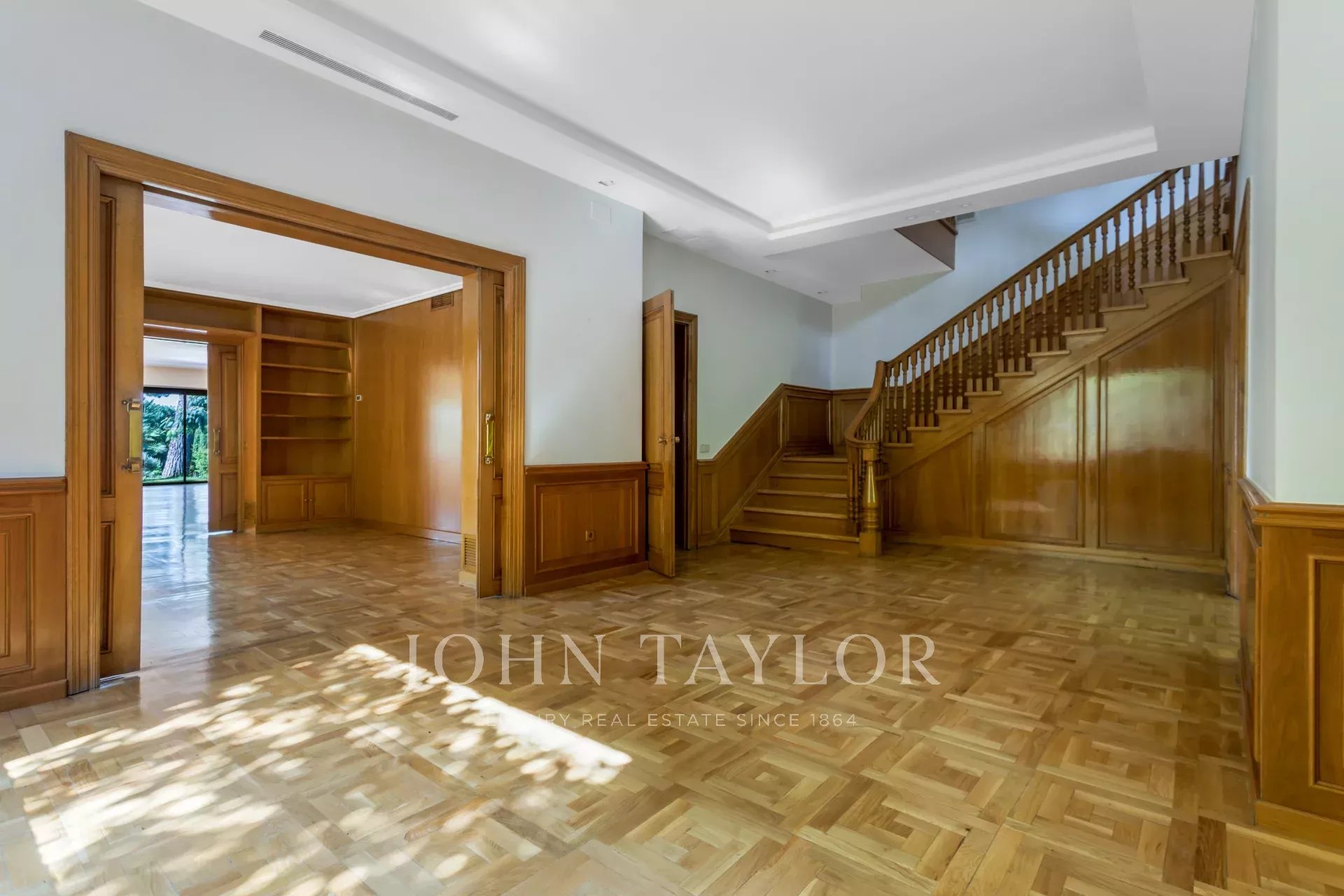 La zona de ocio, la componen un esplendido jardín en dos alturas desde donde se aprecian unas magnificas vistas de Madrid, piscina de cloro de 12x8, casa de piscina y pista de padel, estupenda bodega con capacidad para almacenar mas de 30 botellas. Ascensor para acceder a todas las plantas menos a la zona de aparcamiento. La vivienda dispone de orientación Norte y Sur.
