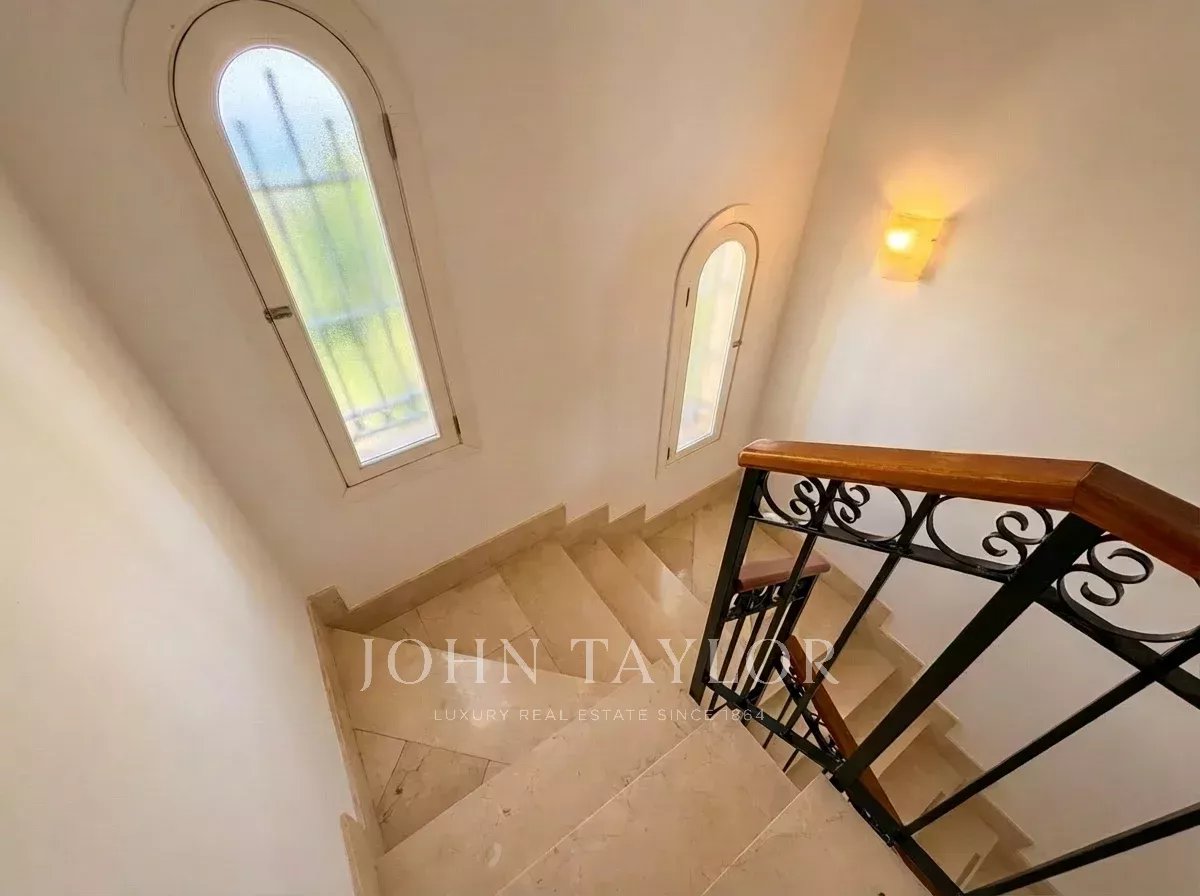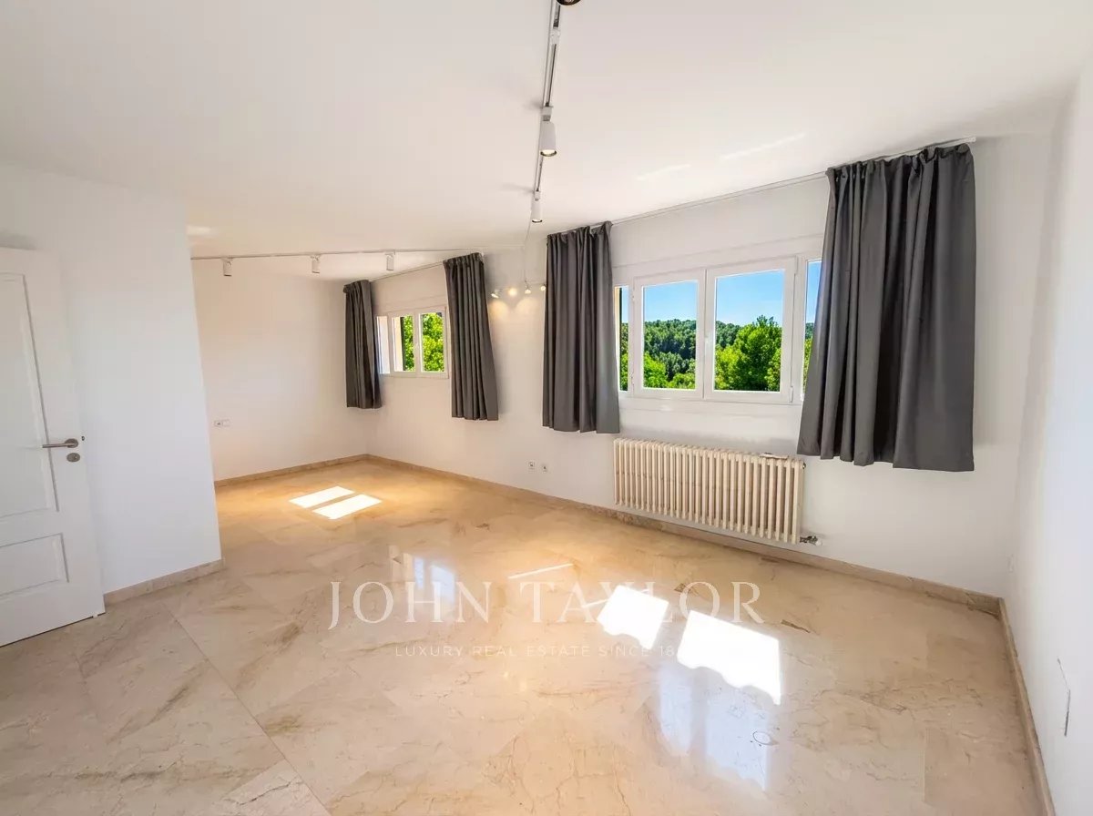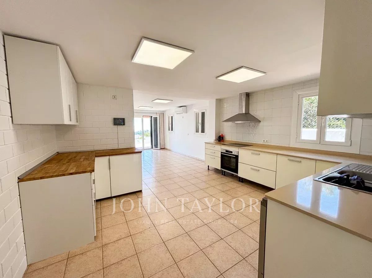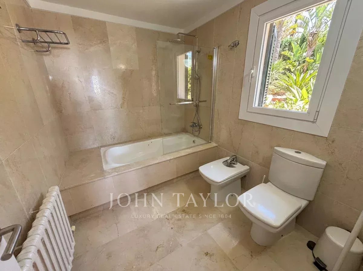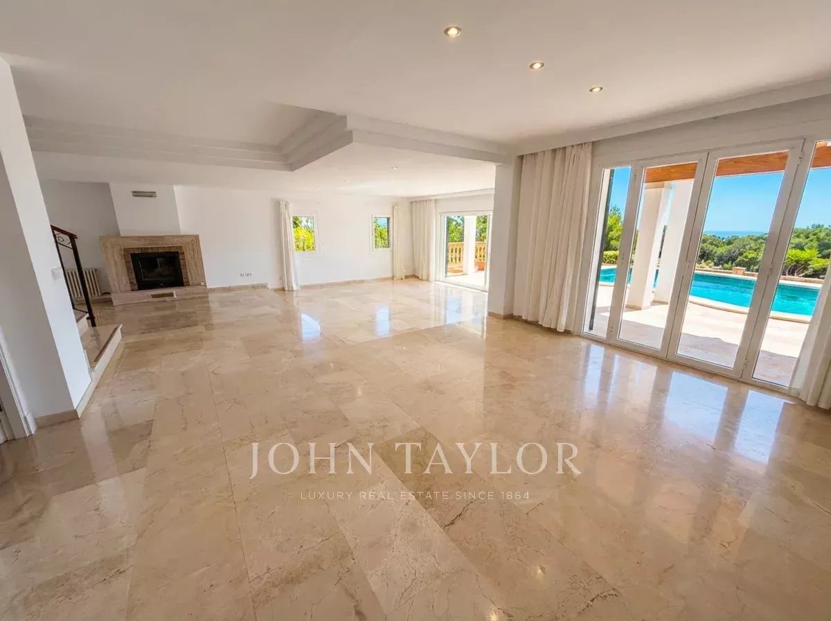 La propiedad, que se alquila sin amueblar, destaca por un ambiente excepcionalmente luminoso y acogedor. Su diseño está pensado para la vida familiar, ofreciendo amplias zonas comunes que conectan directamente con el exterior. Desde sus generosas terrazas, tanto cubiertas como descubiertas, se disfruta de unas vistas panorámicas al mar, convirtiendo cada rincón de la parcela en un mirador privado. El exterior se completa con una piscina privada, un patio tradicional y varias terrazas.