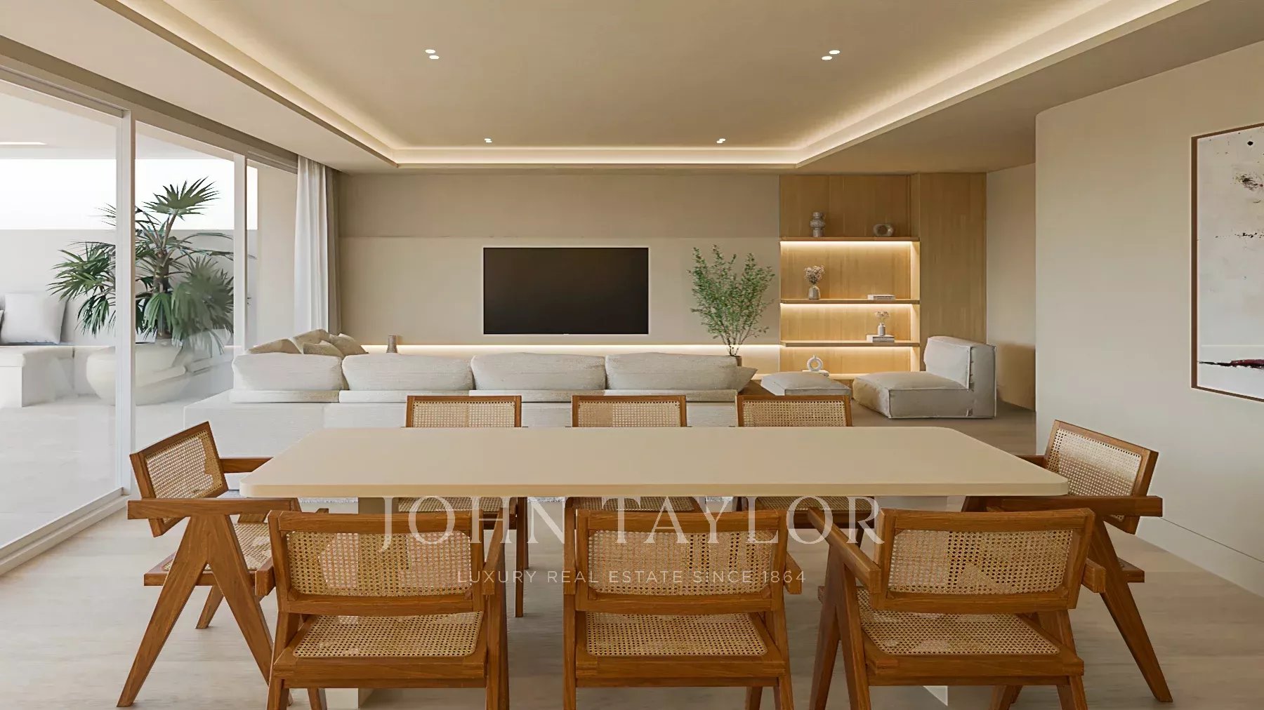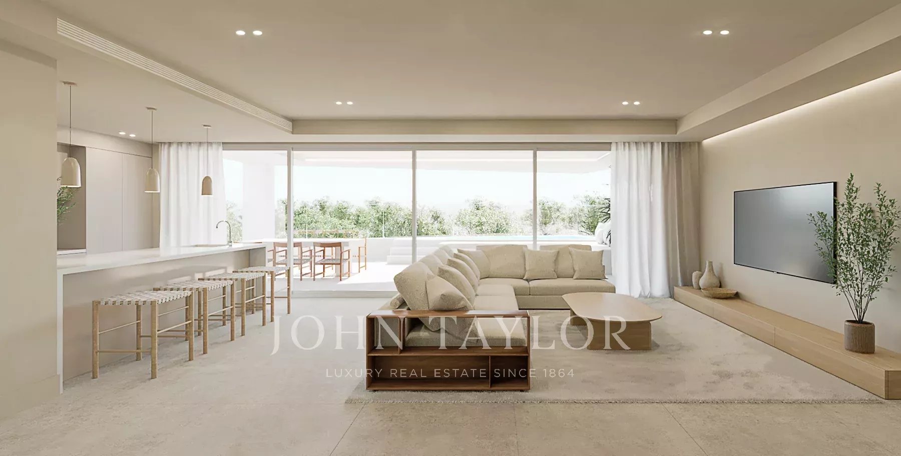 Cada una de las residencias ha sido diseñada con un enfoque en la amplitud y la luz natural. Todas las viviendas cuentan con cuatro amplios dormitorios y cuatro baños completos. La cocina de concepto abierto se integra perfectamente con el gran salón comedor, generando un espacio ideal para el ocio y la convivencia. Las grandes terrazas con piscinas privadas en cada unidad añaden un toque exclusivo de lujo y privacidad.