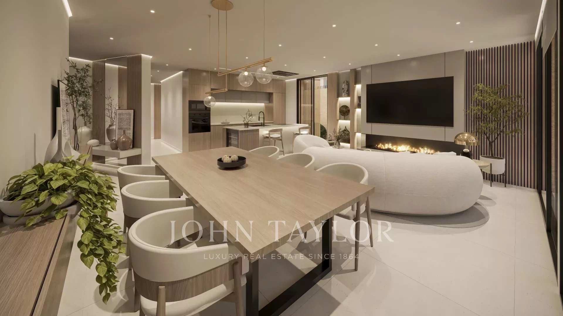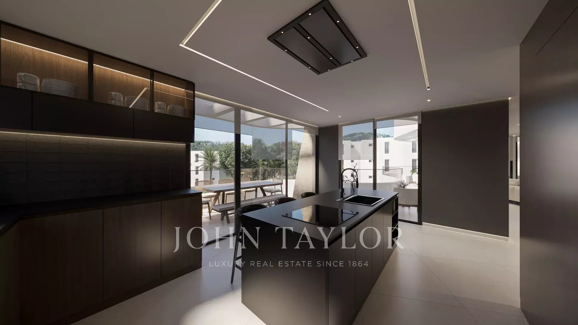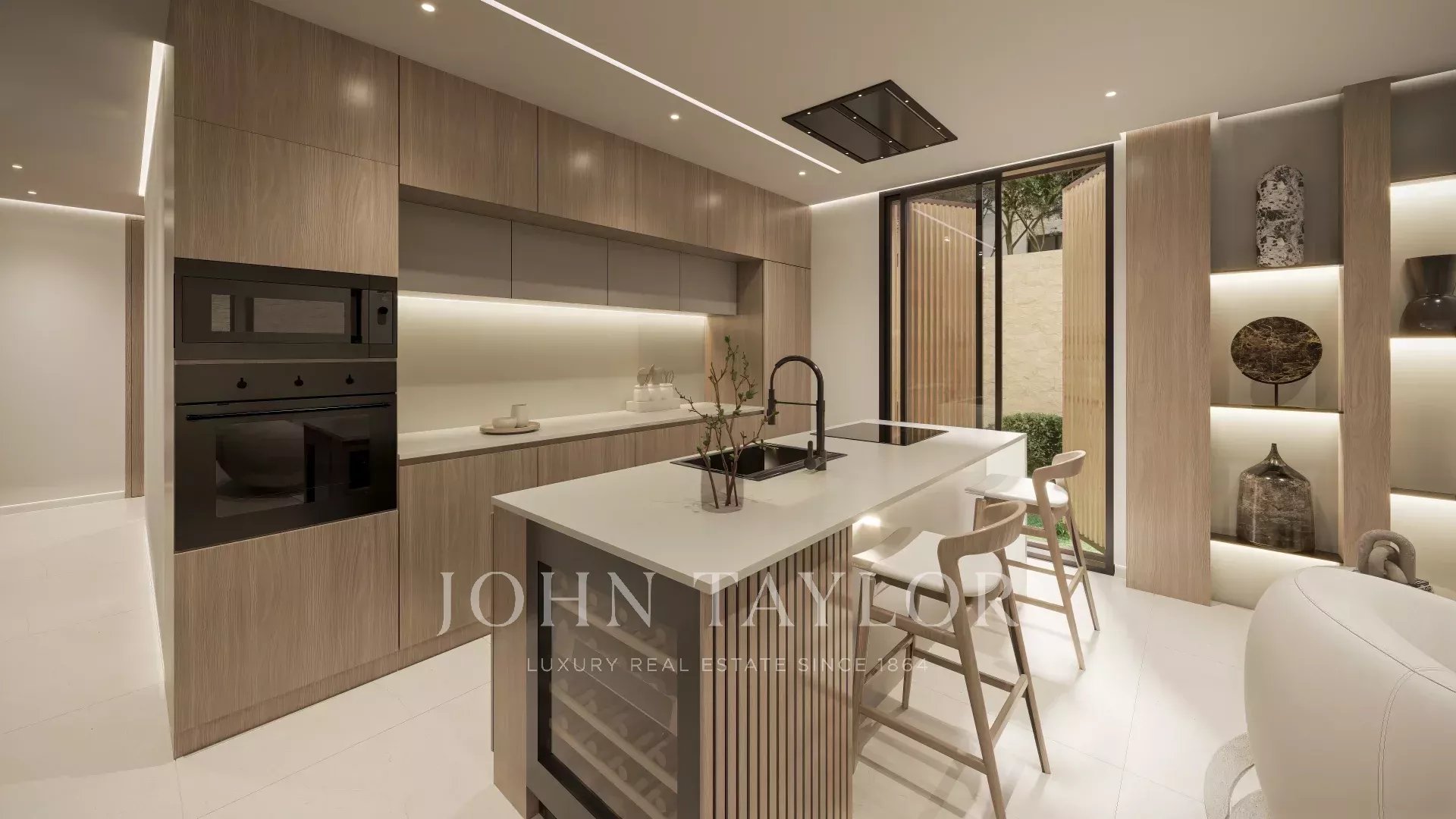 La cocina de planta abierta con isla central constituye el corazón del hogar, logrando el equilibrio perfecto entre diseño y funcionalidad. Los baños se conciben como auténticos espacios de bienestar, con acabados elegantes y una atmósfera serena. Los dormitorios, amplios y luminosos, están diseñados como refugios privados que ofrecen comodidad y lujo discreto.