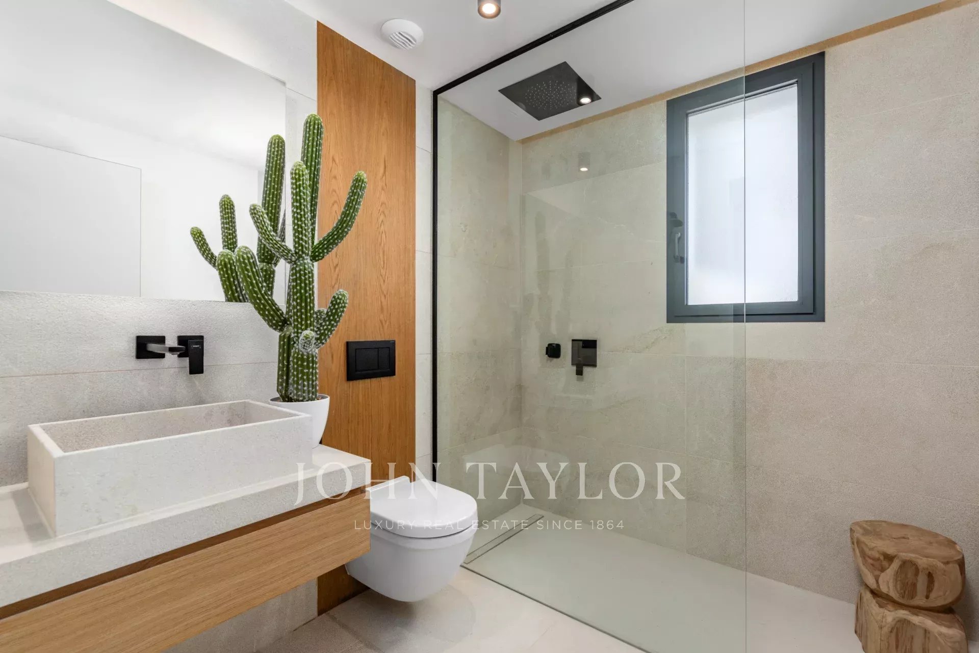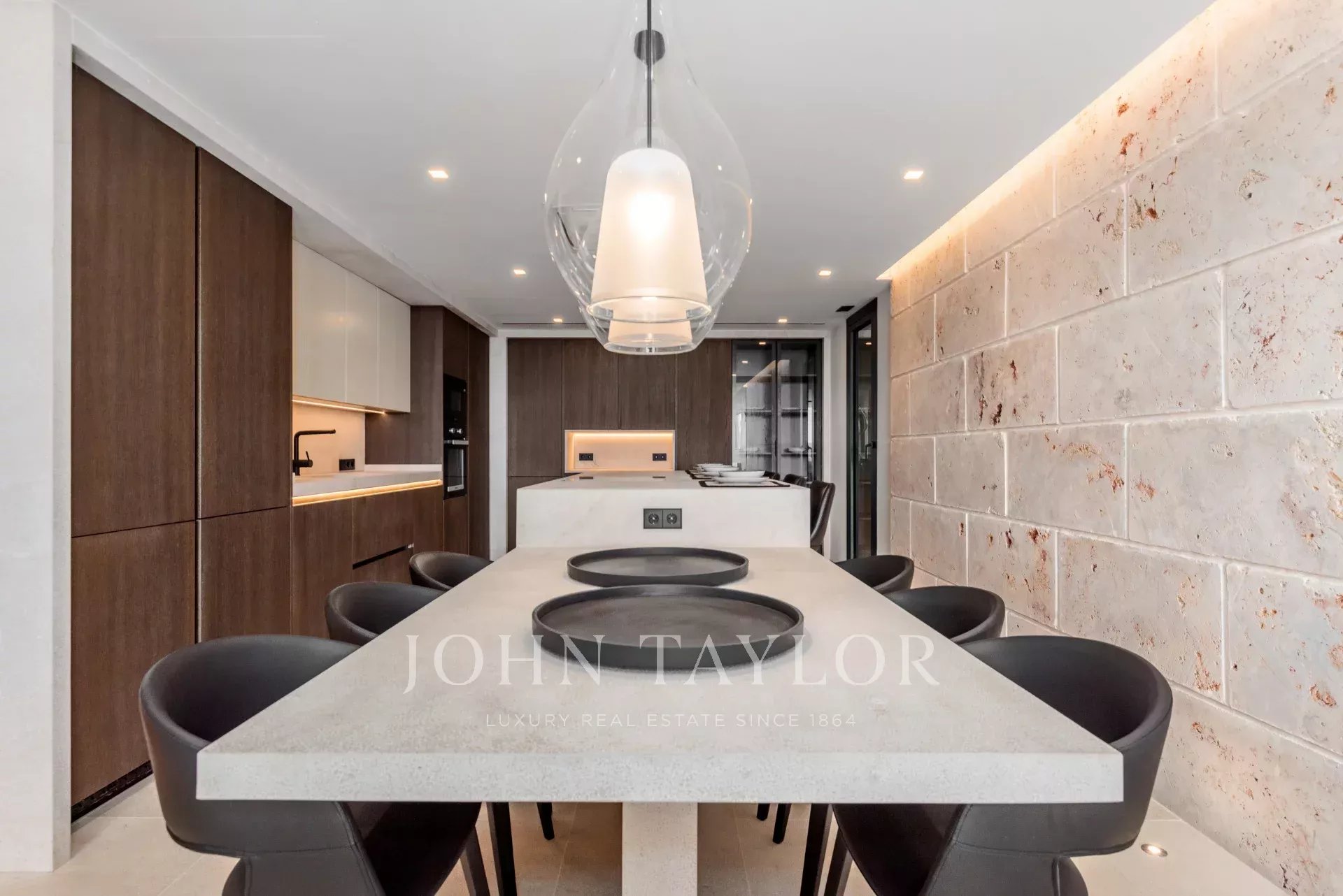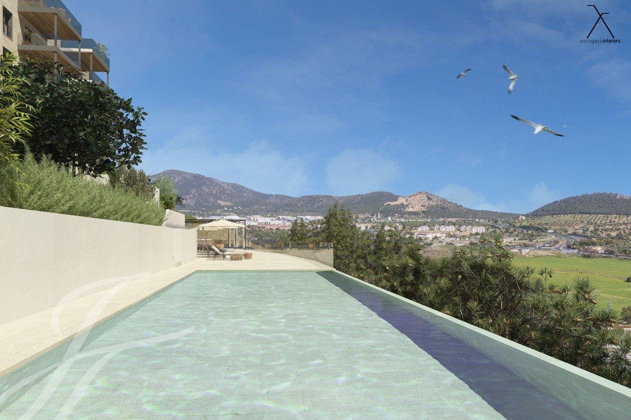 Estos apartamentos modernos se están construyendo en Santa Ponsa. Tienen fantásticas vistas panorámicas de Santa Ponsa y el campo de golf, con orientación este-sur-oeste y hermosas terrazas de 18 m2 para disfrutar plenamente del estilo de vida mediterráneo. Los apartamentos disponen de 4 habitaciones dobles y 3 baños, 2 de ellos en suite, equipados con materiales de alta calidad. Una sala de estar y un comedor con mucha luminosidad, así como una cocina abierta y moderna con electrodomésticos y una isla de cocina combinada con materiales de la más alta calidad le dan comodidad y bienestar. El complejo cuenta con 24 unidades residenciales, una piscina comunitaria y un jardín mediterráneo. Una plaza de aparcamiento subterráneo está incluida en el precio de venta. El proyecto se completará durante el año 2025.