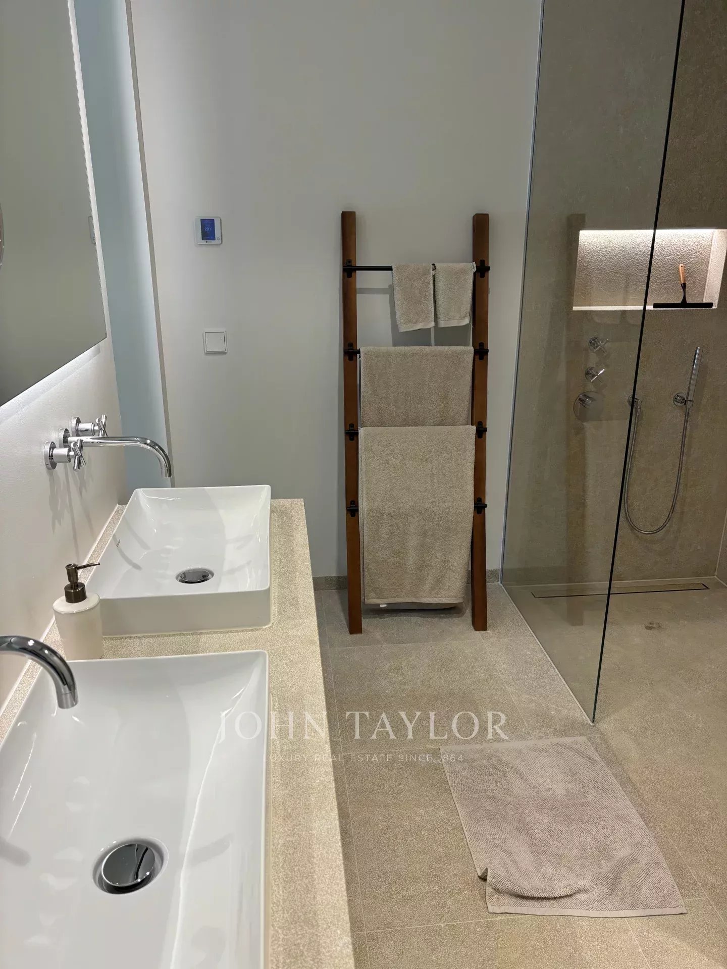 El diseño moderno combina lujo con el carácter ibicenco, destacando por su impresionante fachada blanca adornada con jardines verticales y un patio central de 15 metros de altura. Totalmente amueblado con acabados premium, el piso incluye cocinas equipadas con electrodomésticos Gaggenau y grifería Dornbracht.