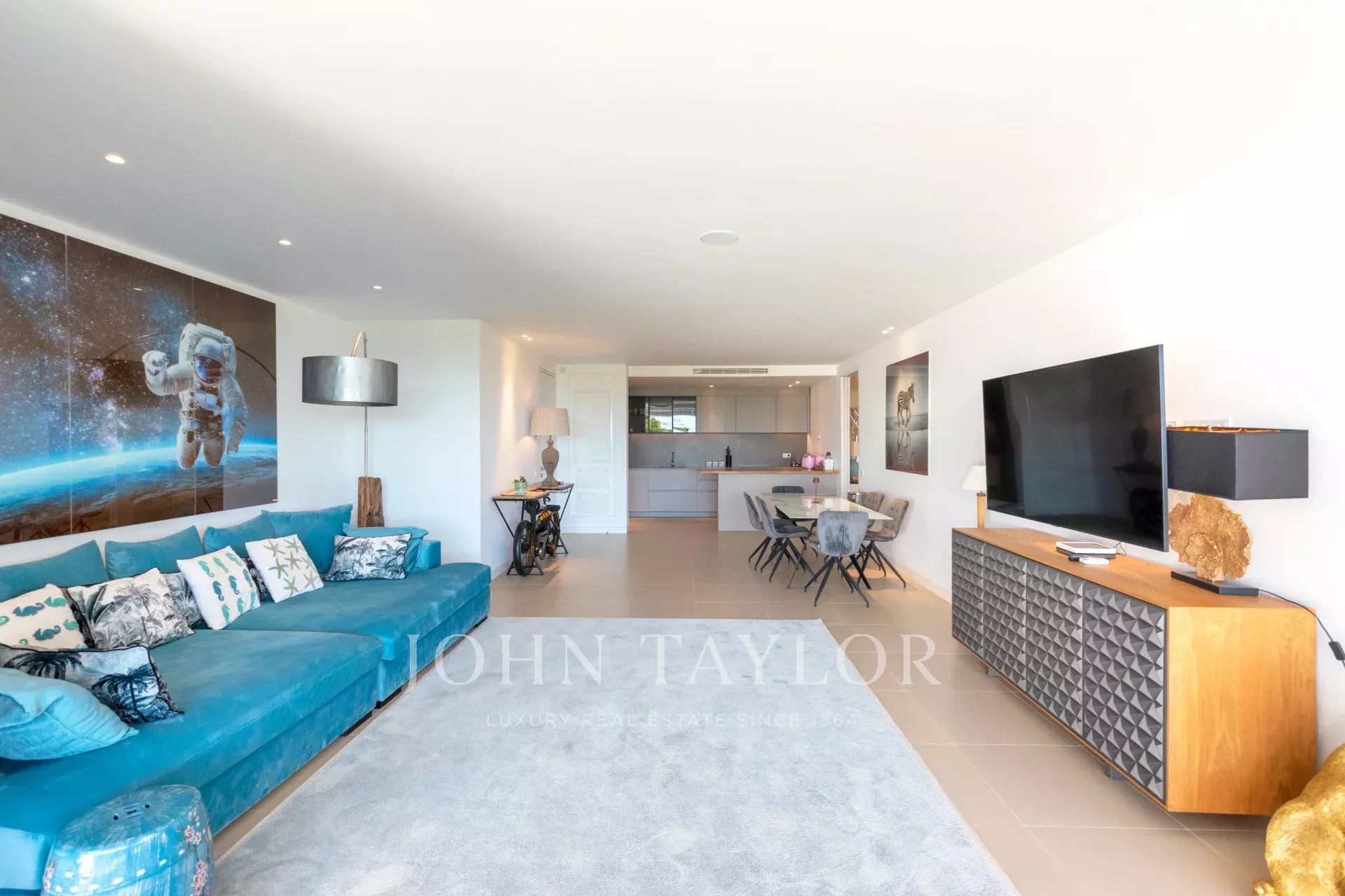 Las áreas de sala y cocina de concepto abierto fluyen sin esfuerzo, realzando la sensación de espacio y conexión con el exterior. El apartamento cuenta con tres habitaciones bellamente decoradas, cada una con acceso directo al jardín. La suite principal cuenta con baño en suite y vestidor, mientras que dos habitaciones adicionales disfrutan de baños privados y vistas a los jardines paisajísticos.