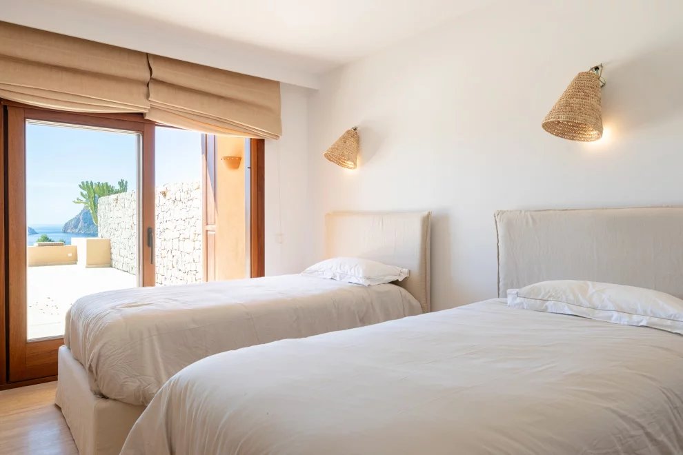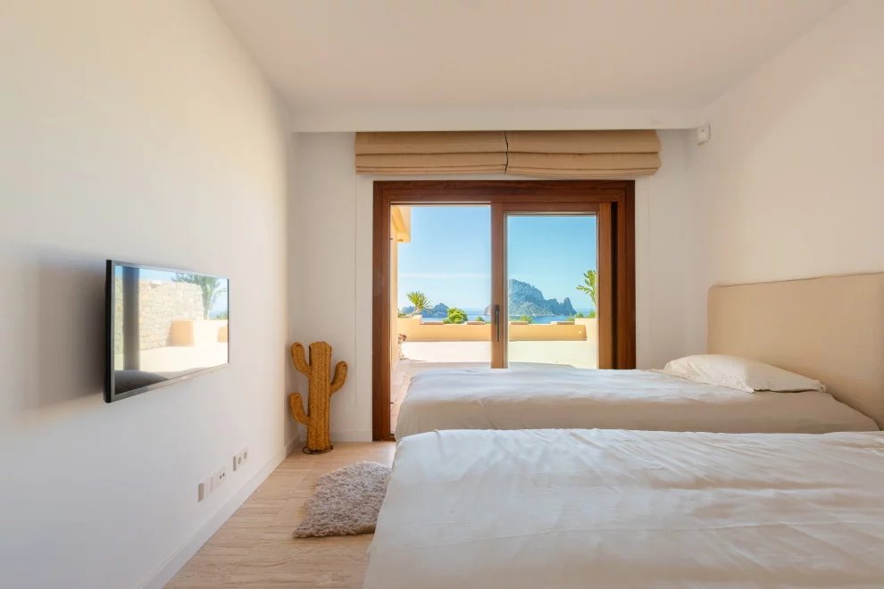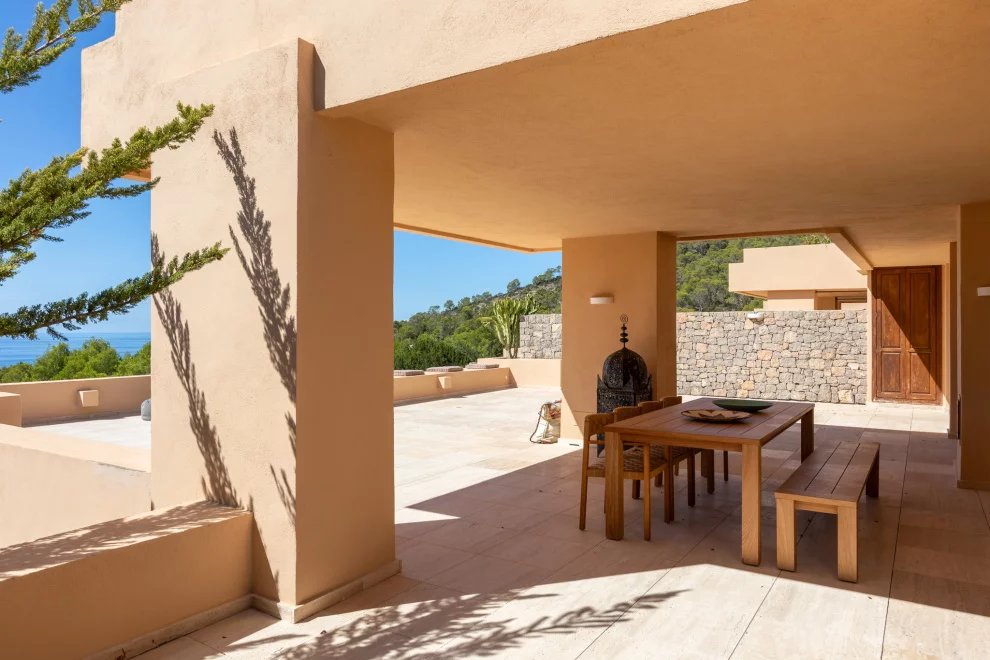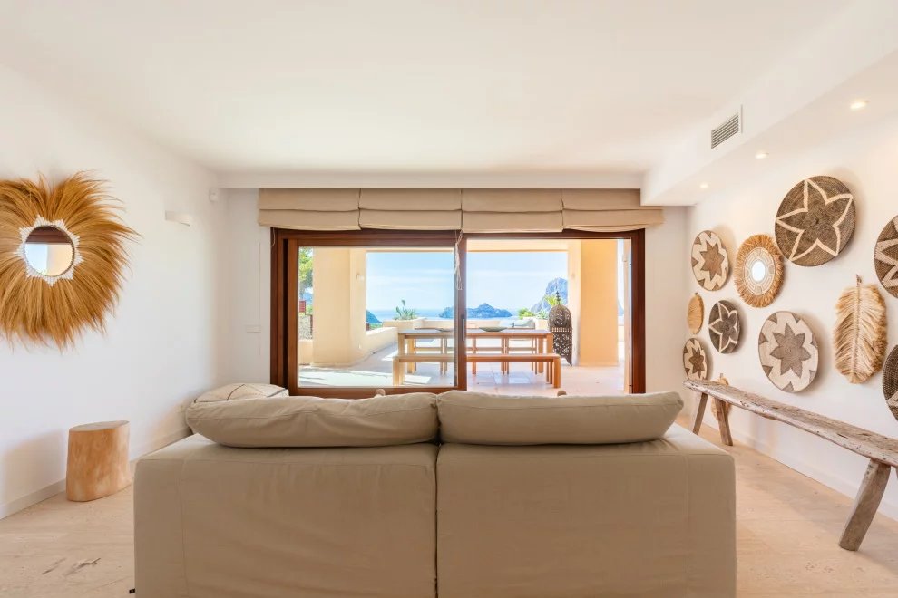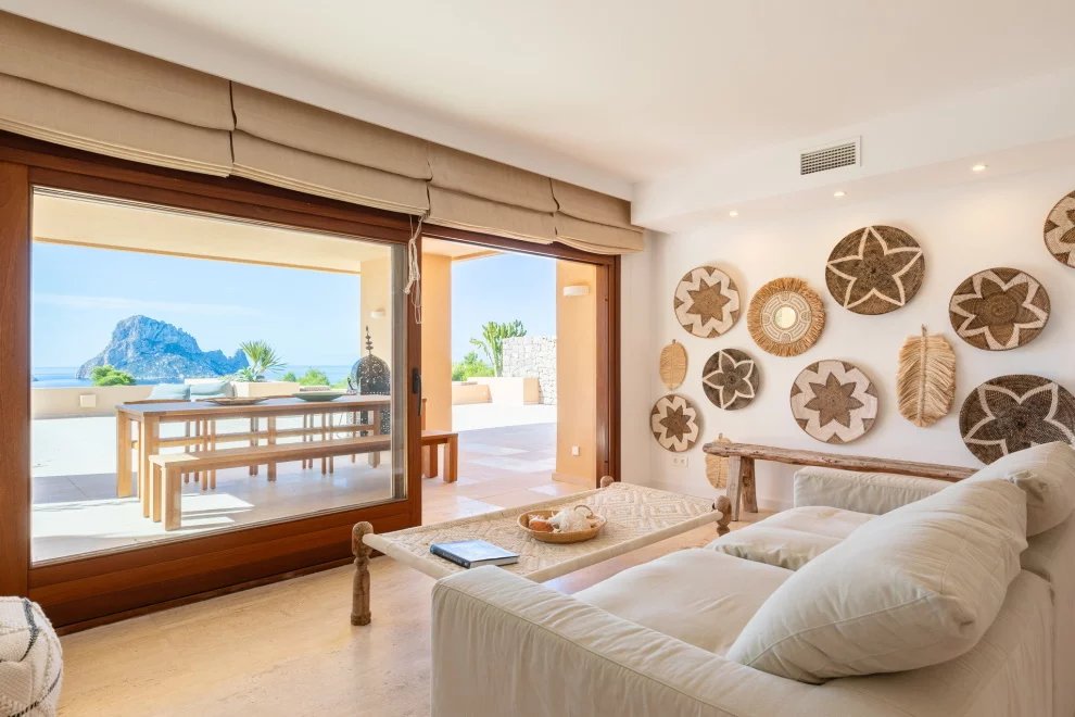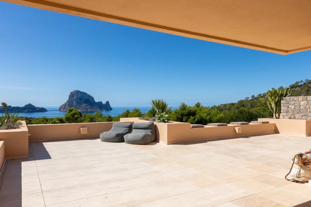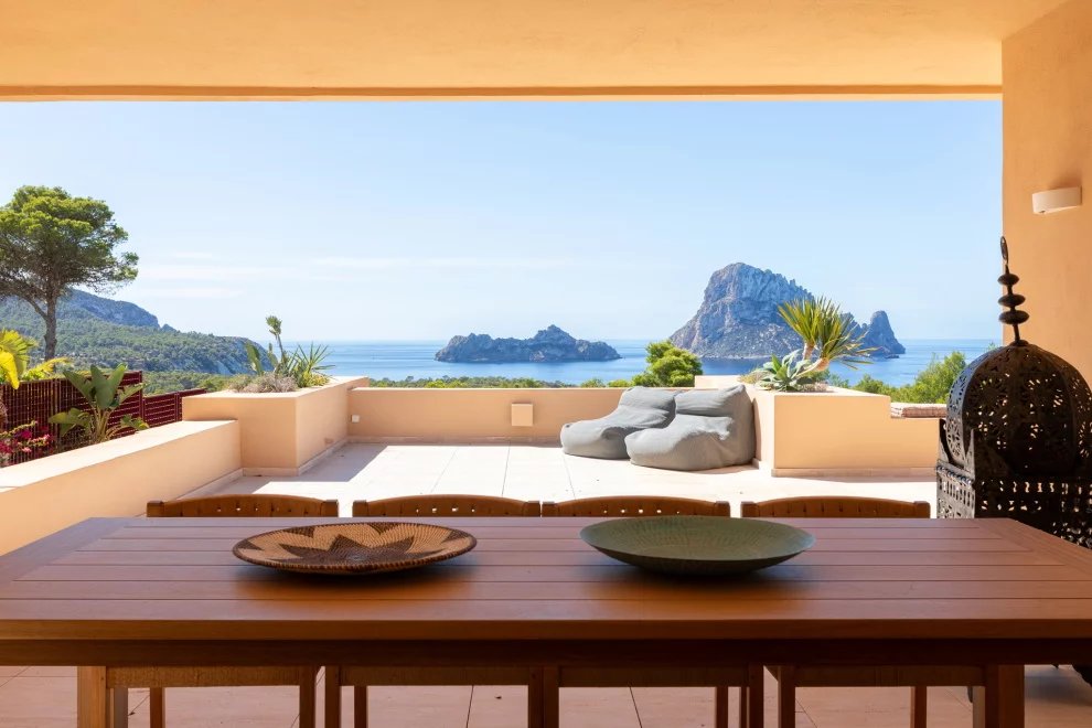 Desde la terraza, las puestas de sol sobre Es Vedrà ofrecen un espectáculo único, que combina belleza natural y una energía difícil de describir. Este enclave es conocido por su magnetismo y por la sensación de paz que transmite.