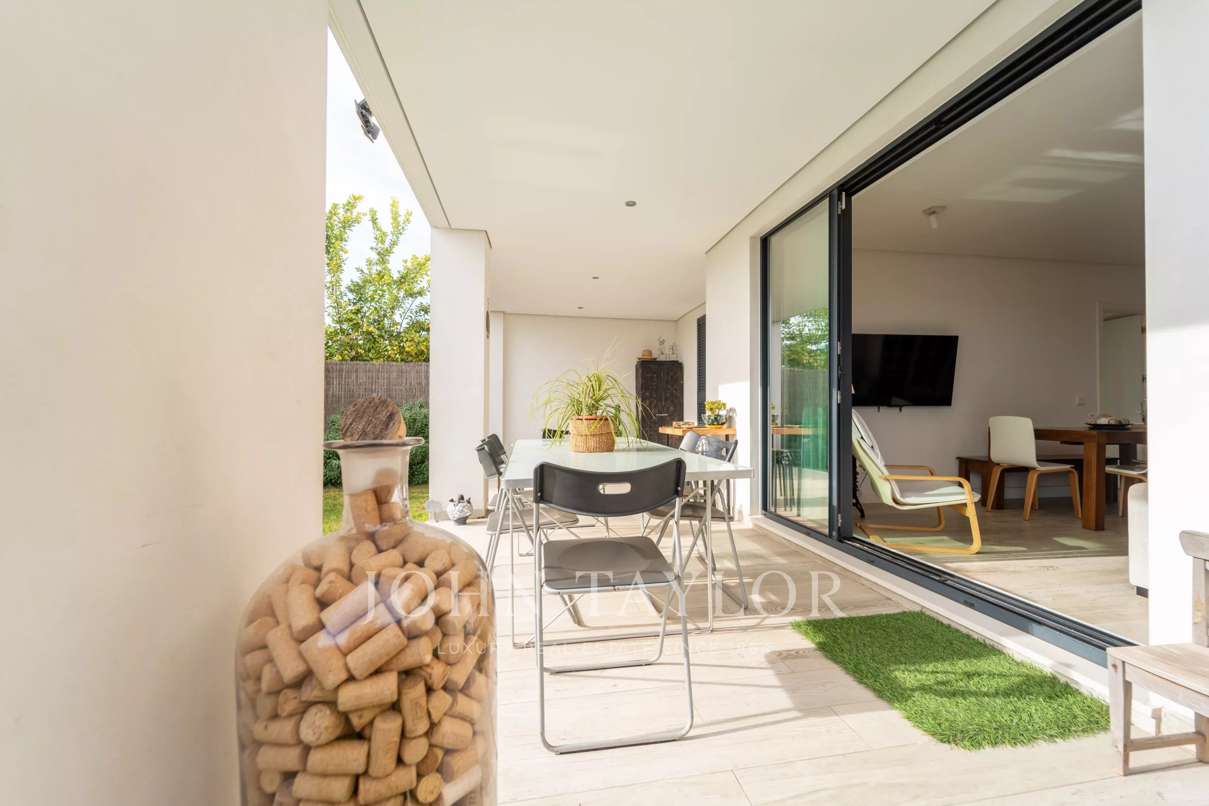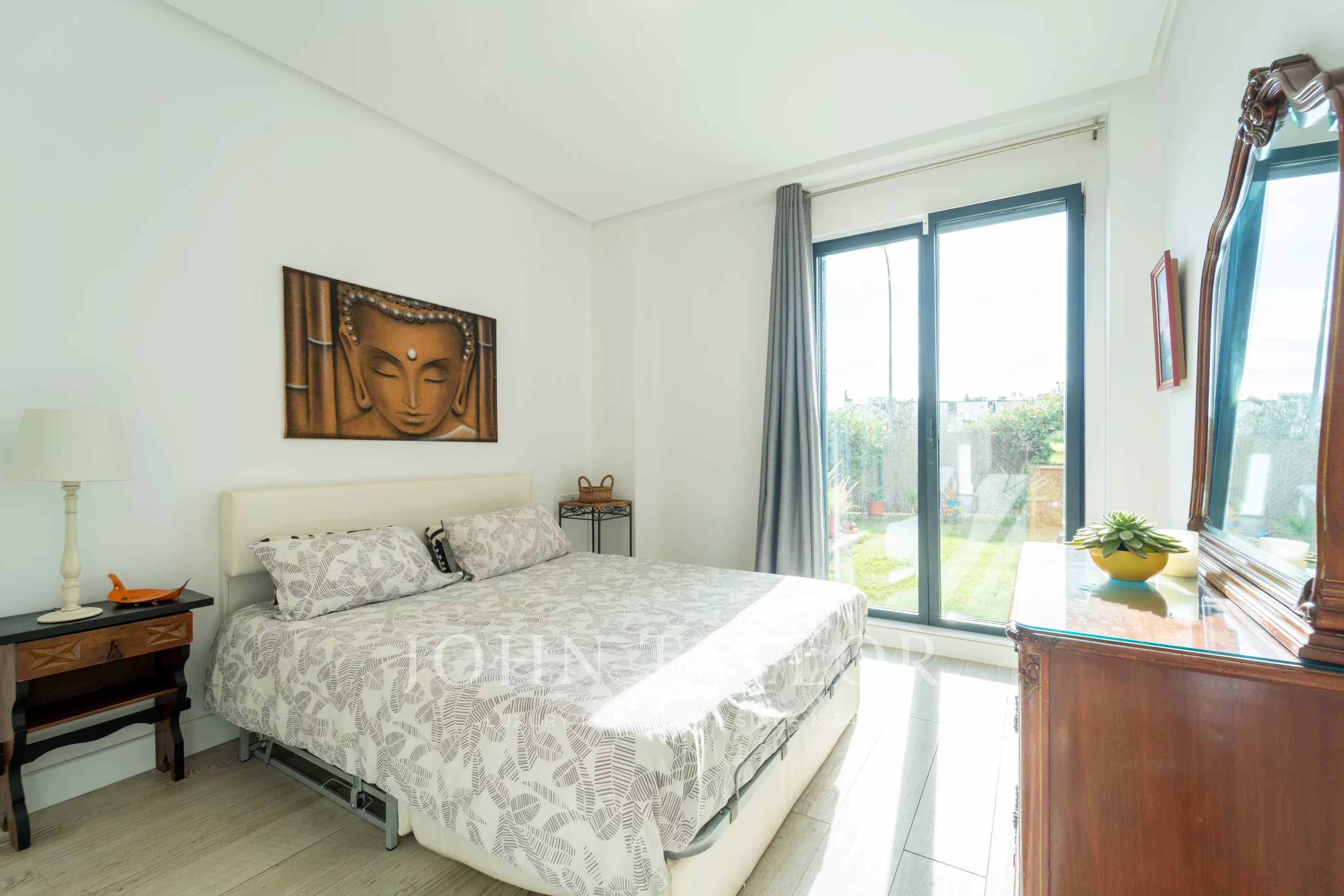 Las zonas exteriores son un punto clave de la propiedad, ofreciendo un patio inglés de 12 m², una gran terraza cubierta y un jardín privado de aproximadamente 90 m² con césped natural y una barbacoa de piedra tradicional, perfecto para la vida al aire libre y el entretenimiento.
