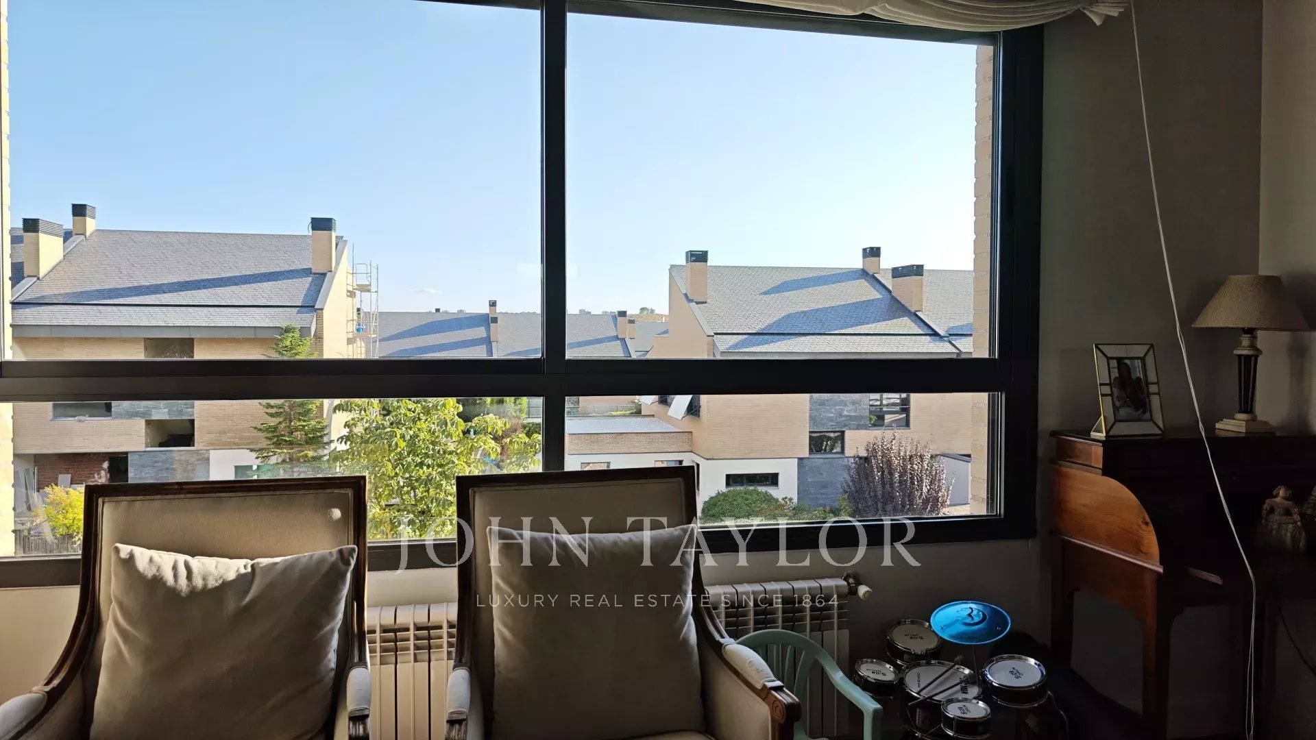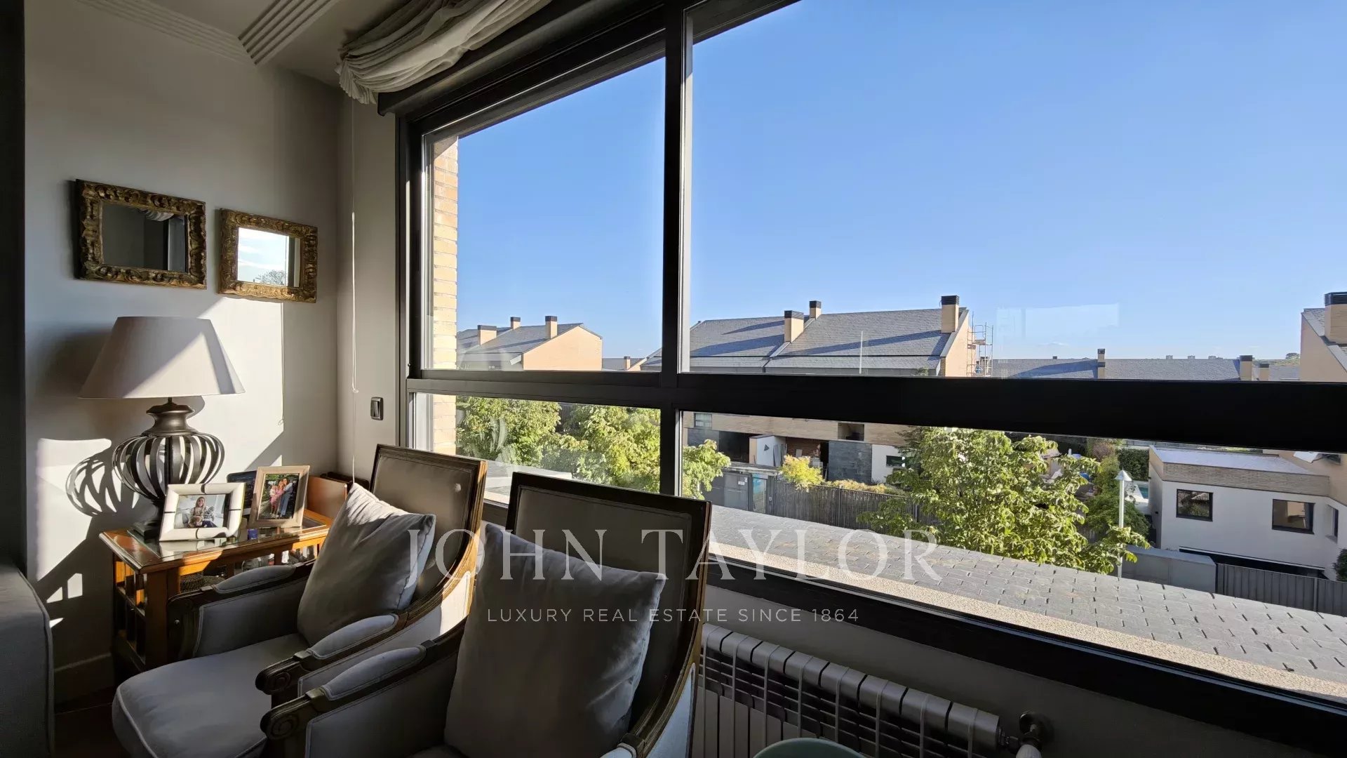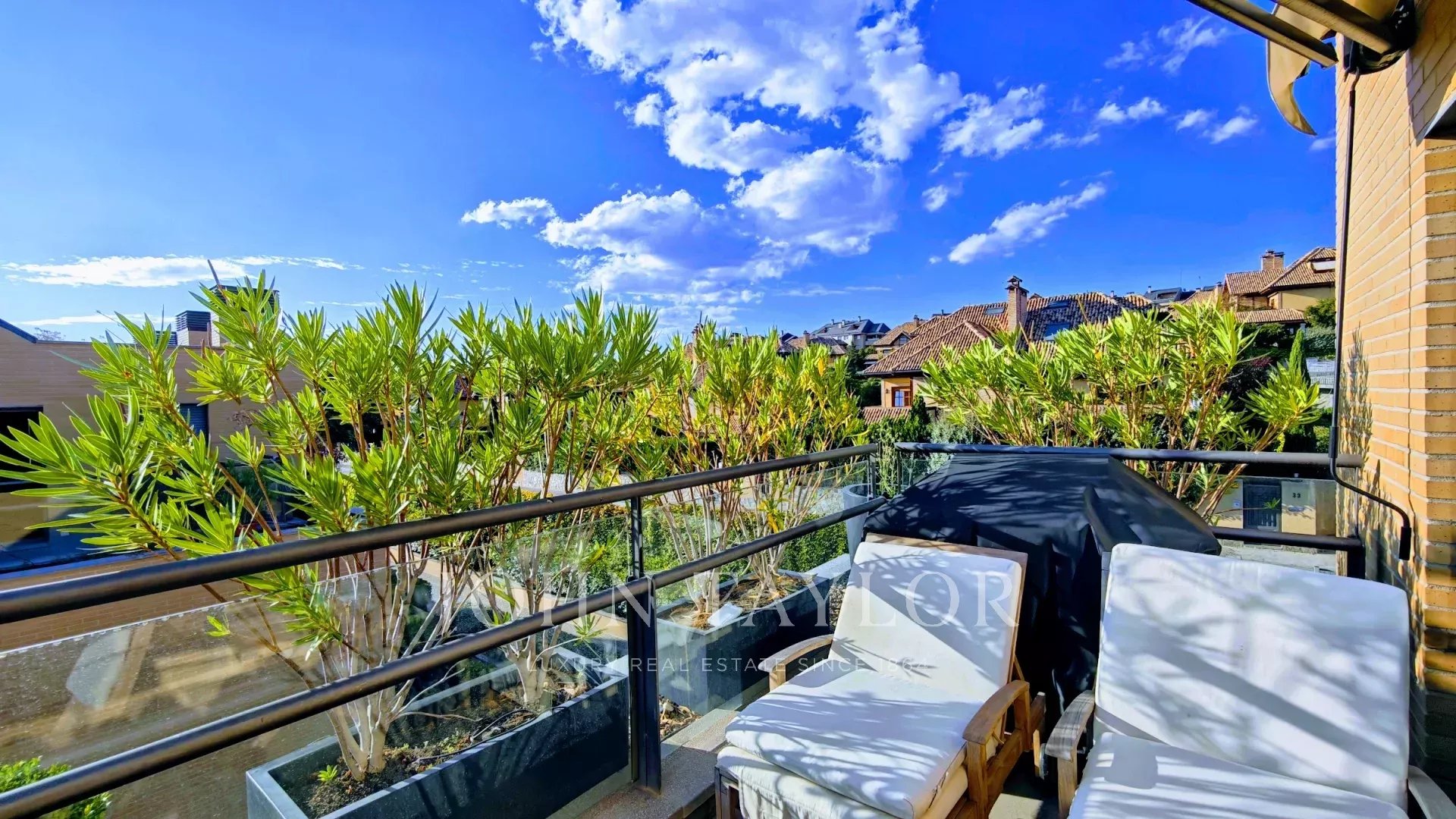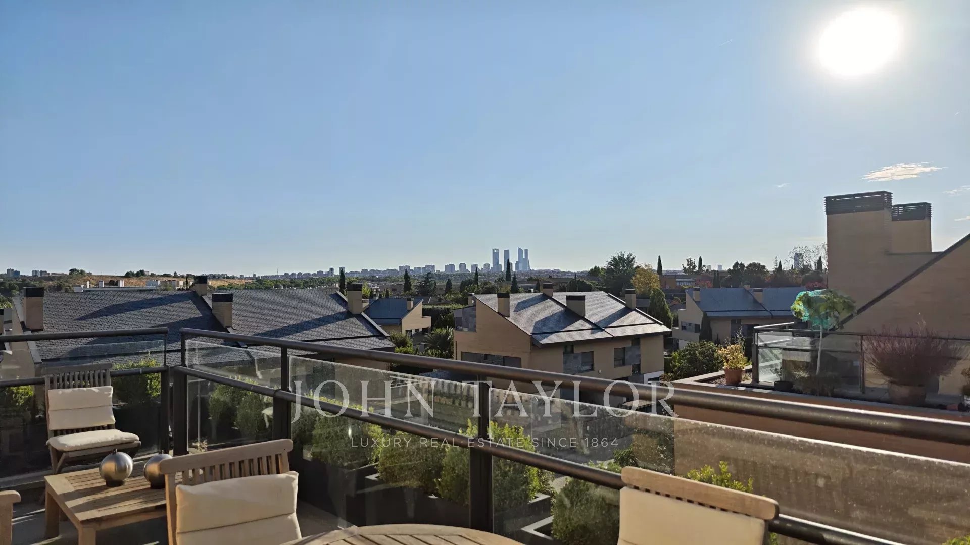 John Taylor presenta este ático duplex de esquina con terraza y unas impresionantes vistas al Encinar de los Reyes y las torres de Madrid, en una de las mejores urbanizaciones del Encinar. Un piso muy luminoso