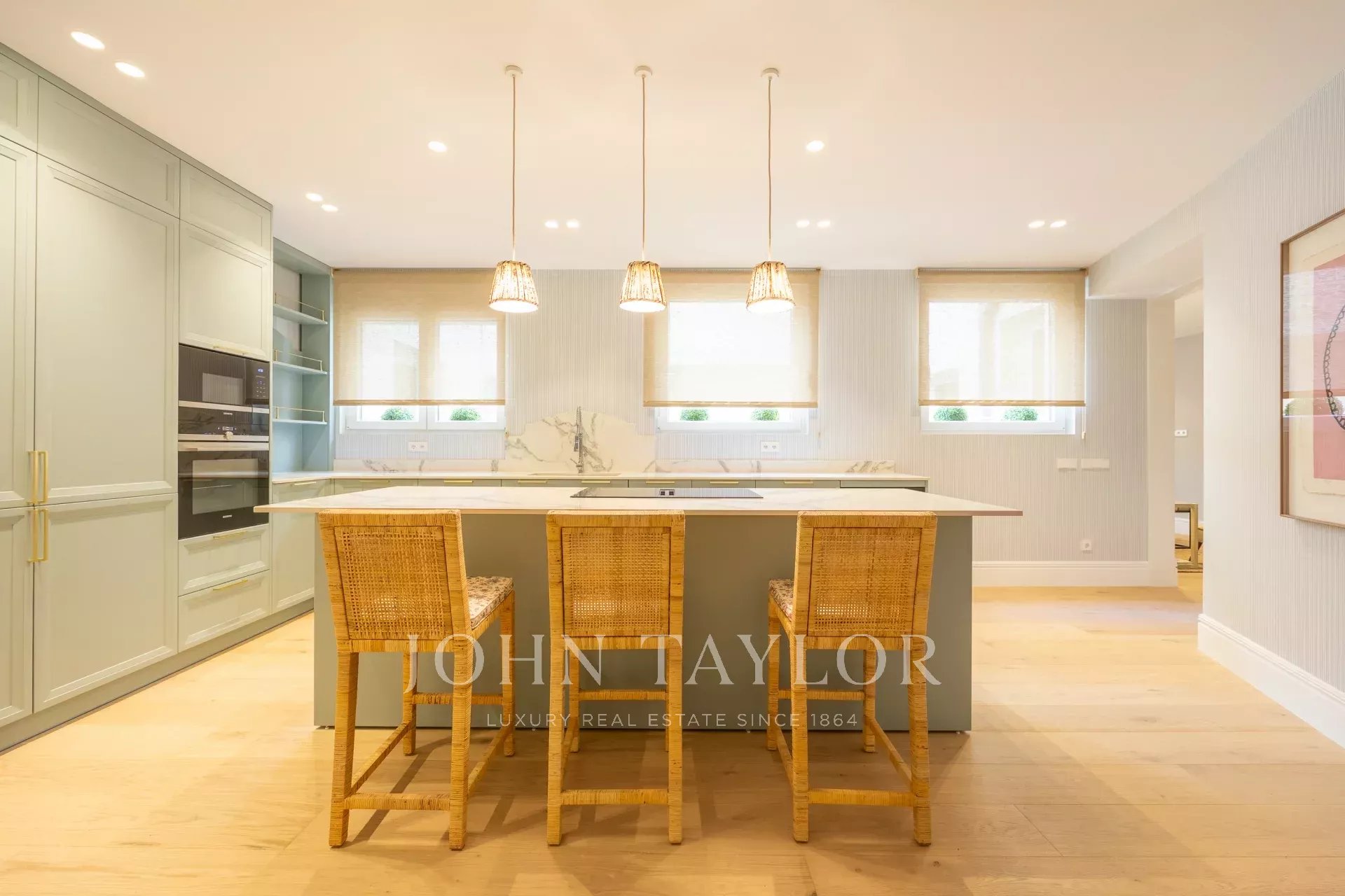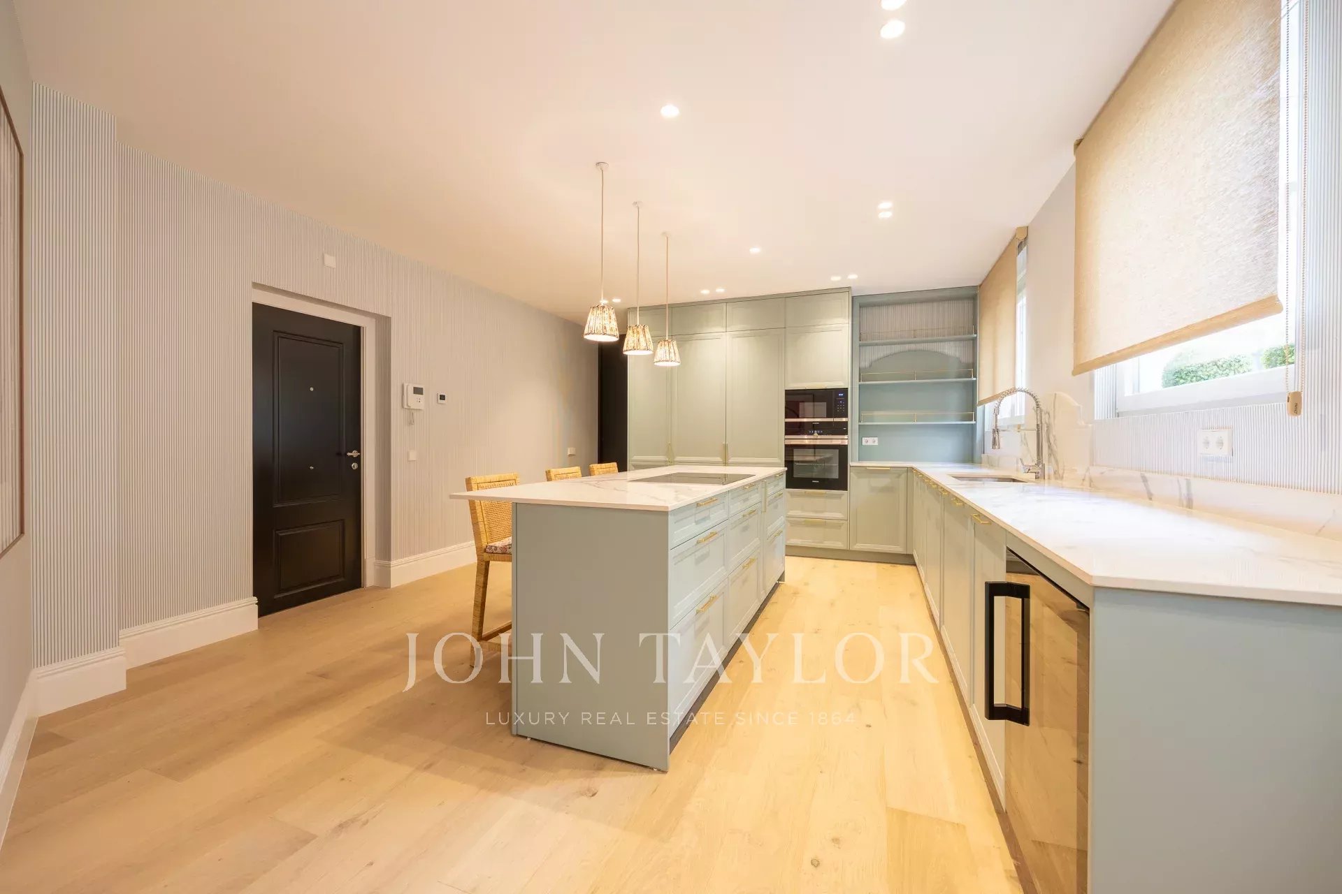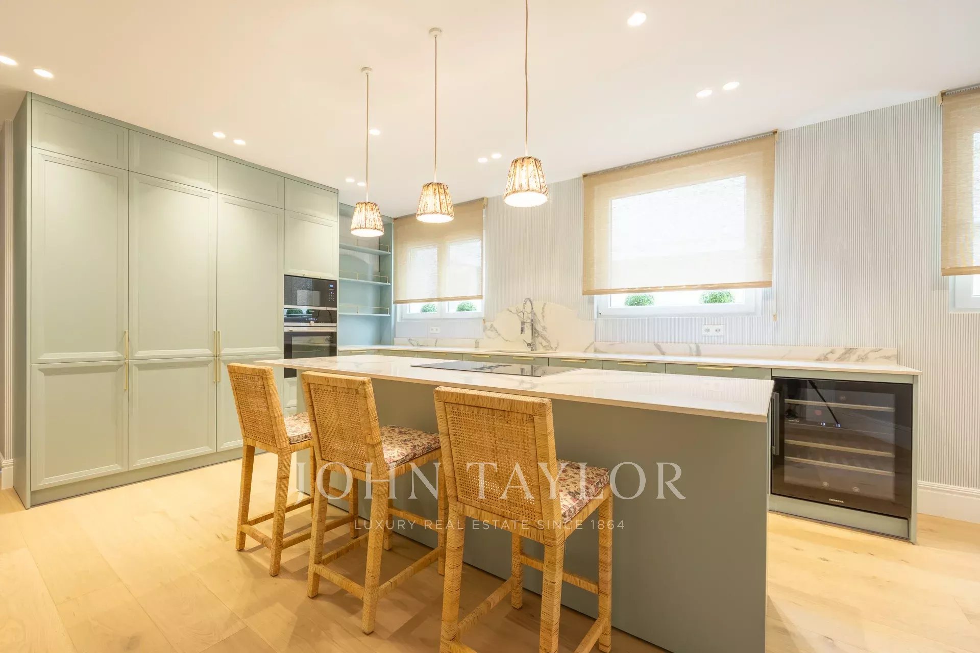 La propiedad cuenta también con un comedor independiente y una cocina completamente equipada con electrodomésticos de alta gama de última generación, de origen alemán, que incluyen una vinoteca, dos frigoríficos y dos congeladores.