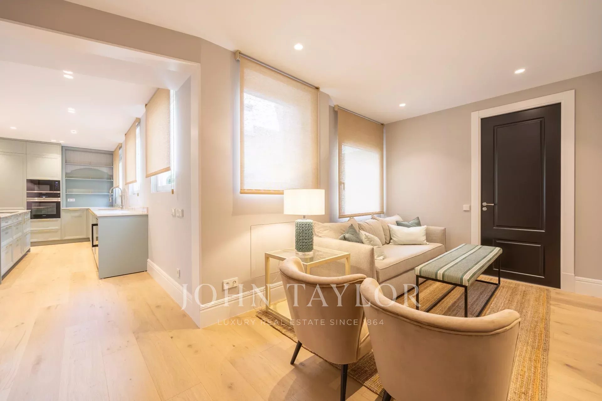 La propiedad tiene dos puertas de acceso, una principal y otra de servicio. También cuenta con un portero físico, plaza de garaje y un trastero en la misma finca. Se entrega completamente amueblado con un proyecto de decoración diseñado por Luis García Graile.