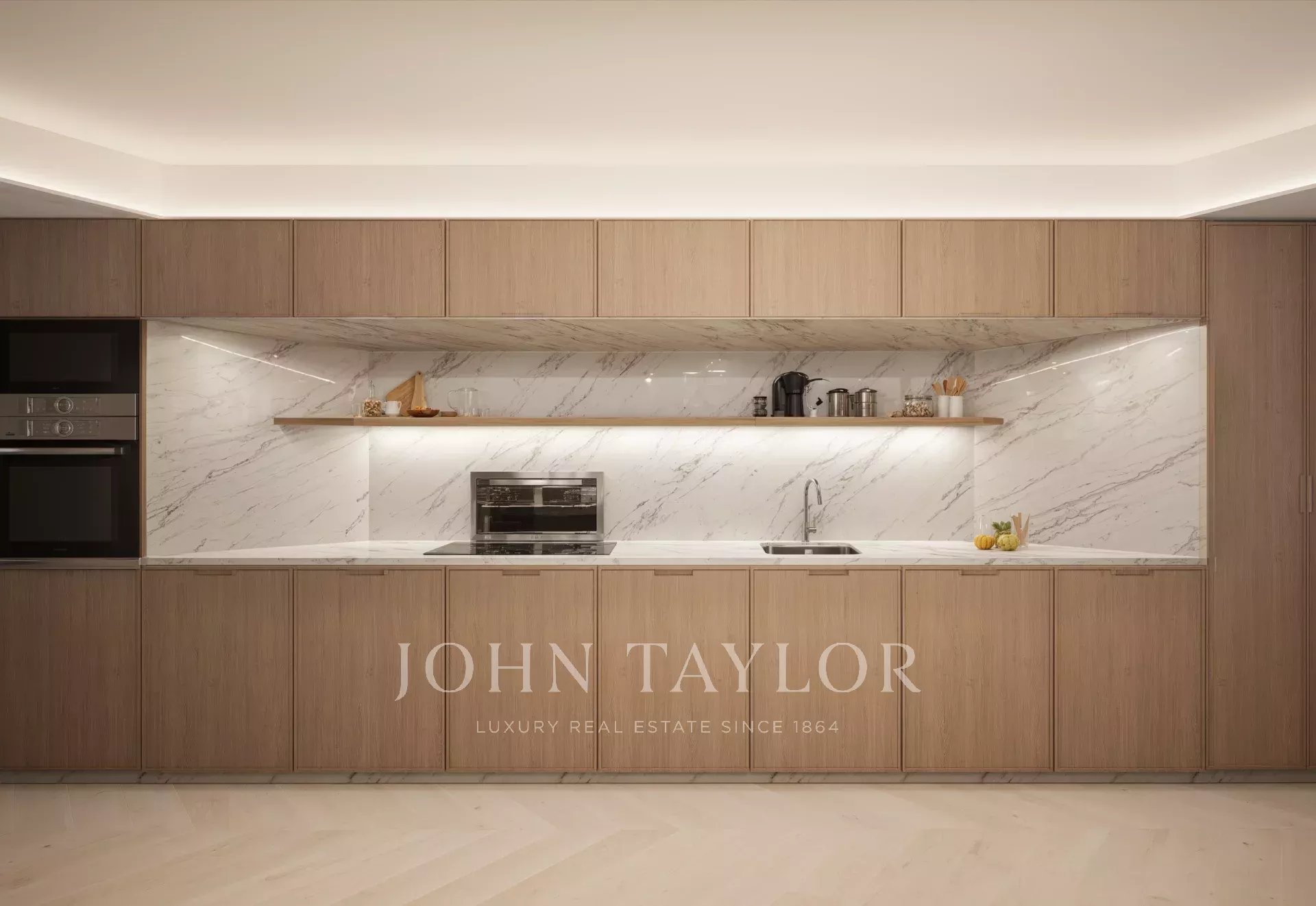 La cocina, de moderno diseño y equipada con electrodomésticos de alta gama, comunica la zona social y la zona privada. Destaca por su excelente luz natural gracias a sus grandes ventanales orientados al sur.