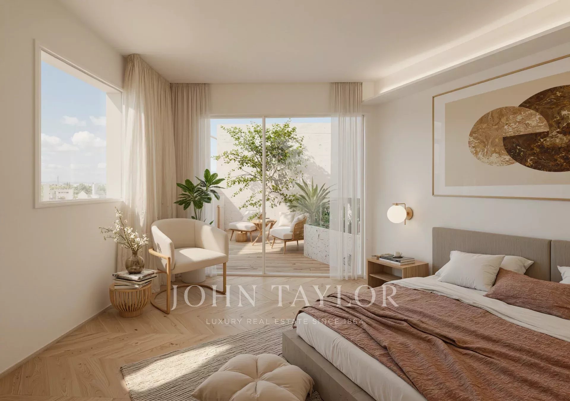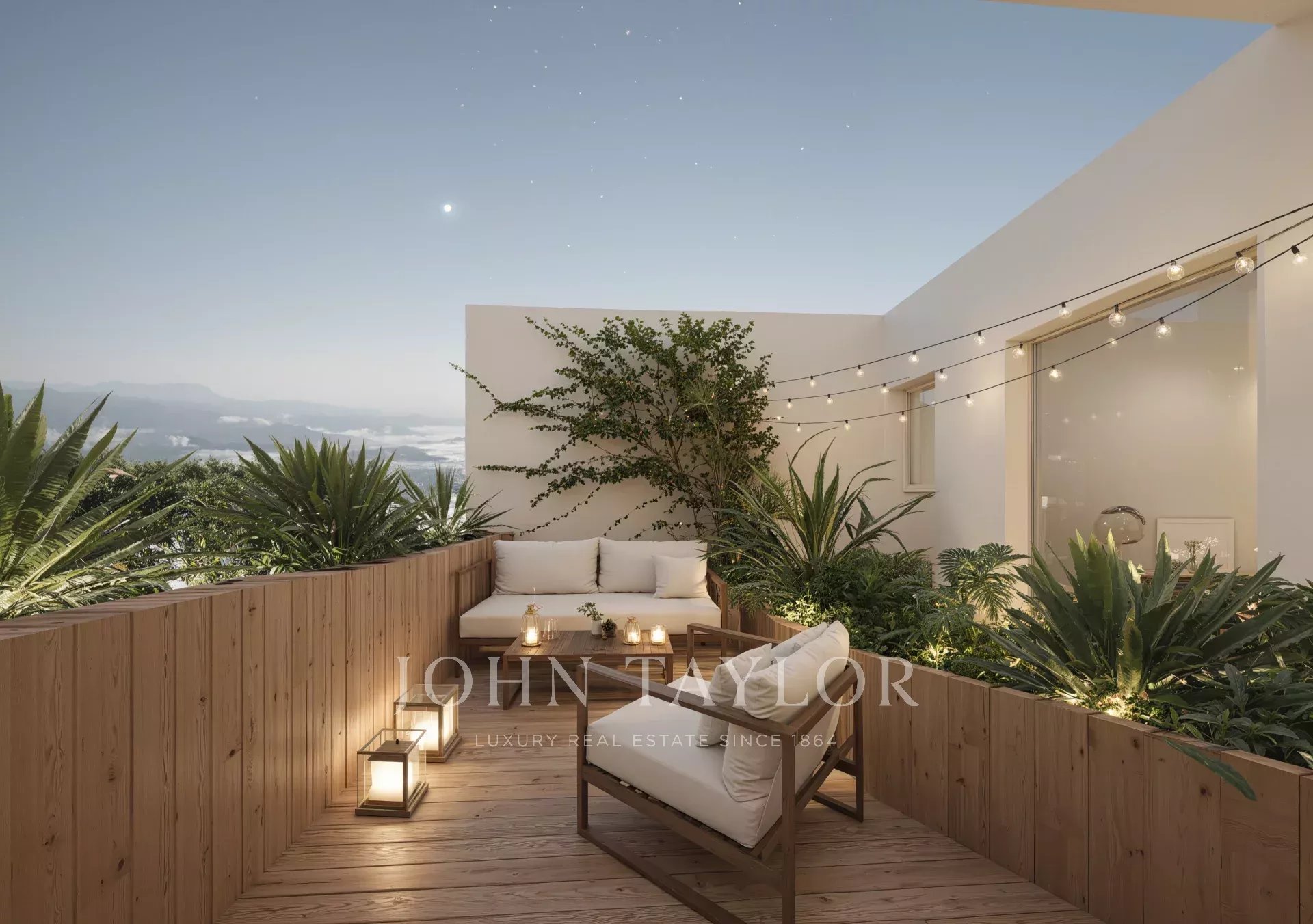La zona privada está compuesta por cuatro dormitorios, todos con su baño en suite, y todos con su propio acceso a terrazas. Dispone también de una zona independiente para servicio de lavandería.