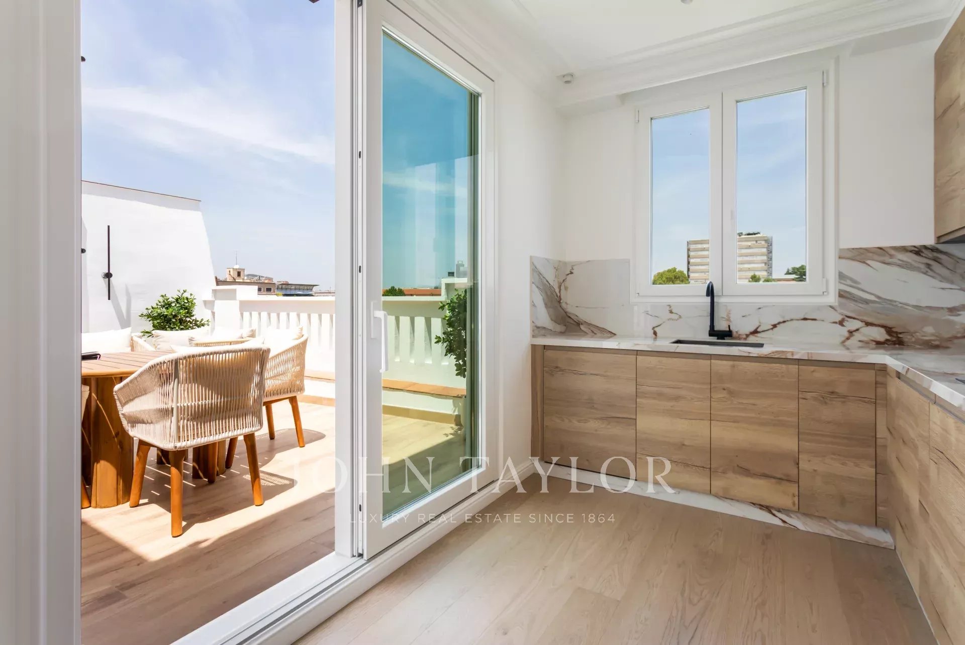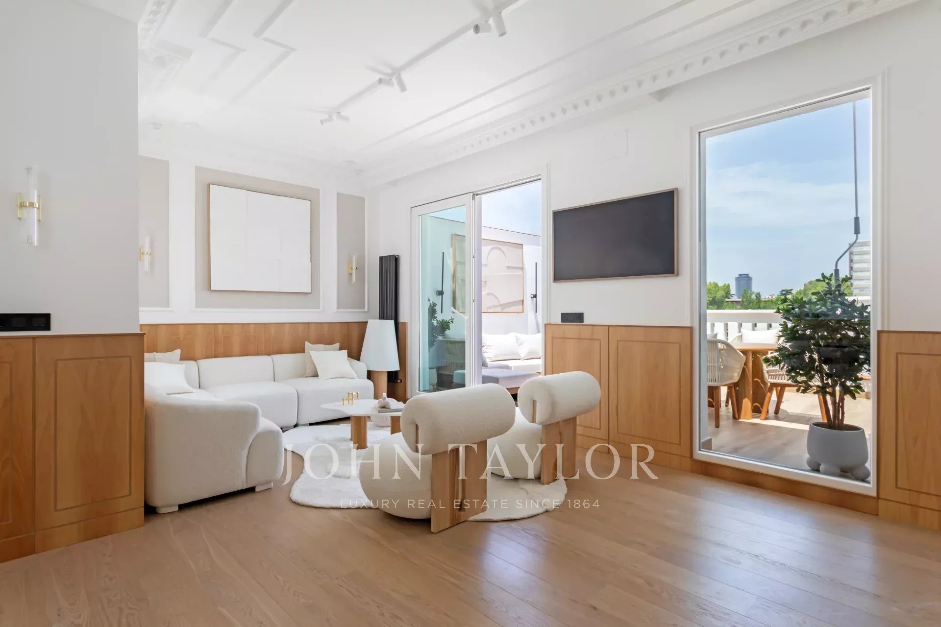 Excepcional ático recién reformado con una terraza cuadrada de 20 m² y vistas panorámicas.