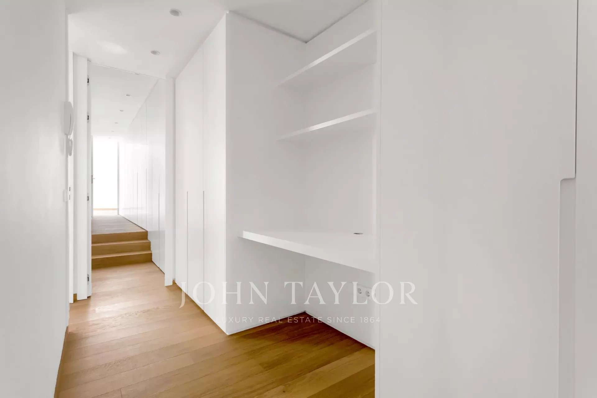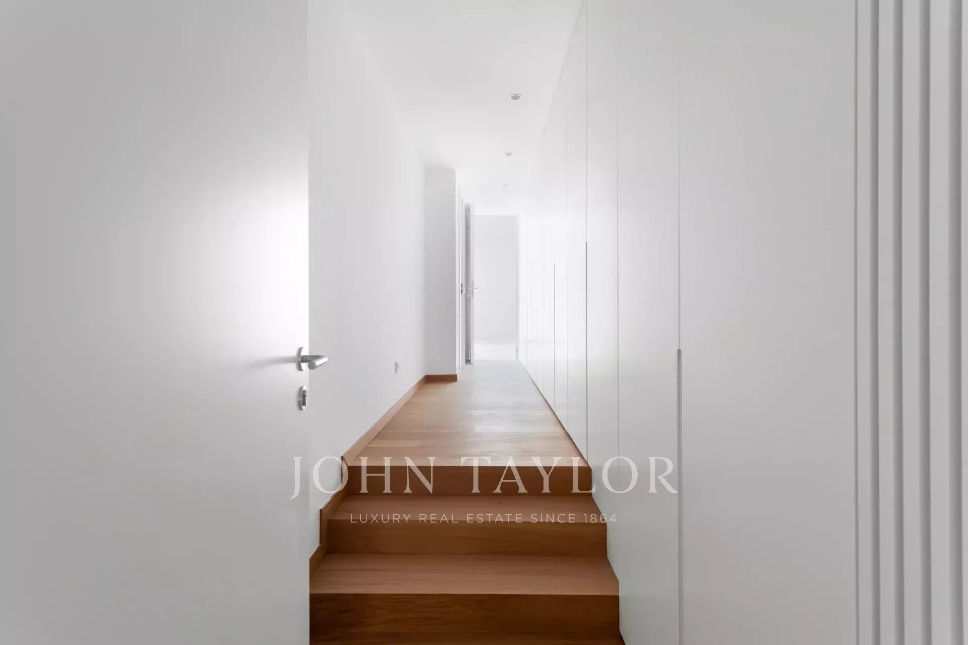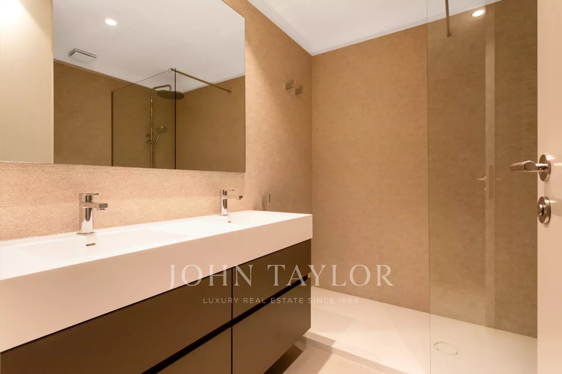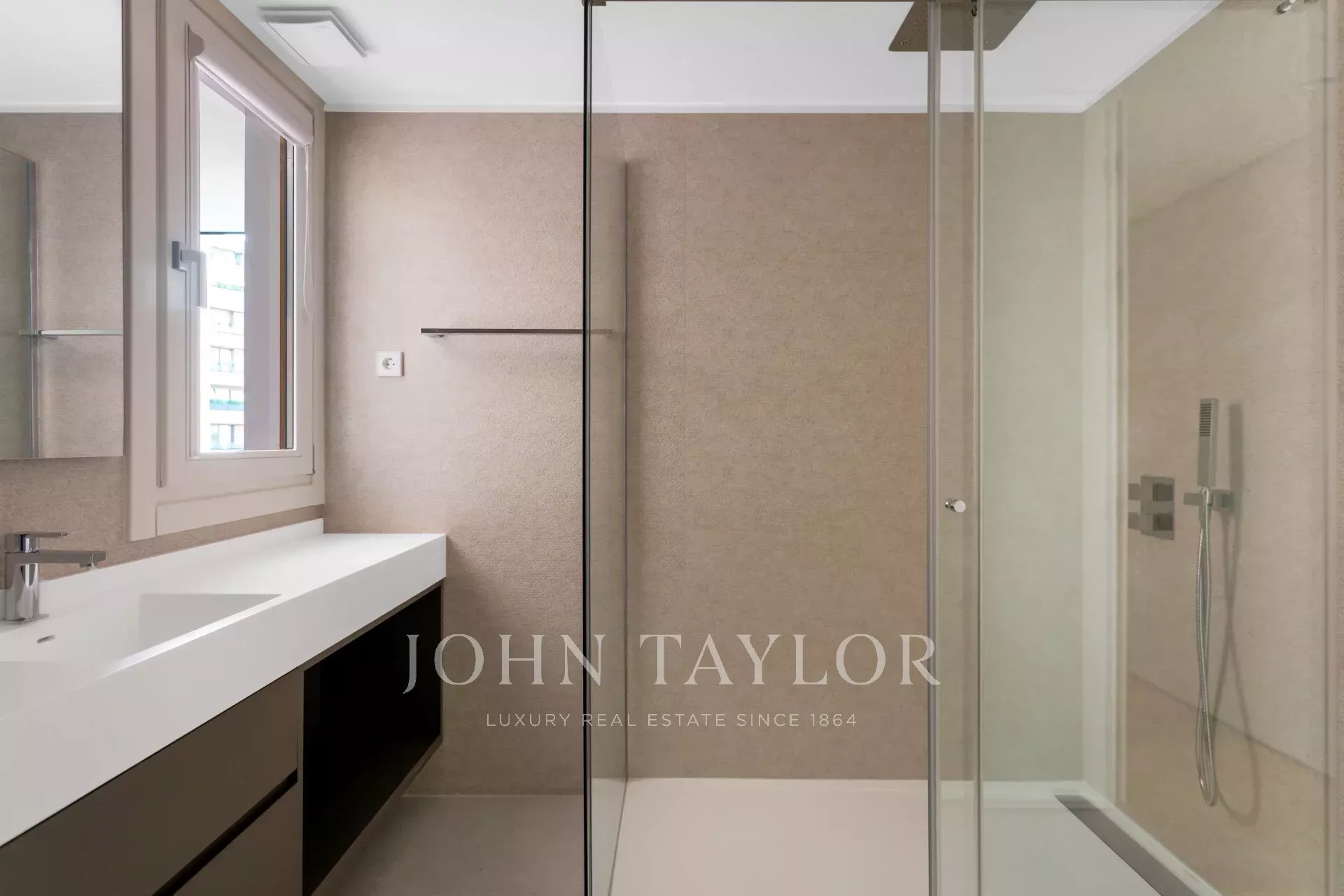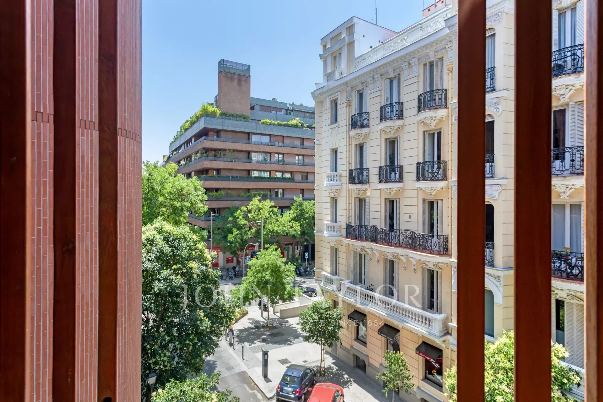 En sus 307 m² construidos, este piso único, dispone de un recibidor privado contiguo al ascensor principal, un segundo recibidor al interior que distribuye en primer lugar a la zona pública de la vivienda – aseo de invitados, y salón, comedor y cocina americana integrable – todo abierto a terrazas hacia la calle Lagasca. Desde el recibidor también se accede a la zona de dormitorios pasando por amplios armarios y un “work place” que articulan una primera master suite con un vestidor extraordinario y acceso a la terraza con vistas a Ortega y Gasset, junto a un baño completo; y una segunda master suite, también con acceso a la terraza principal, zona de vestidor, y baño completo.