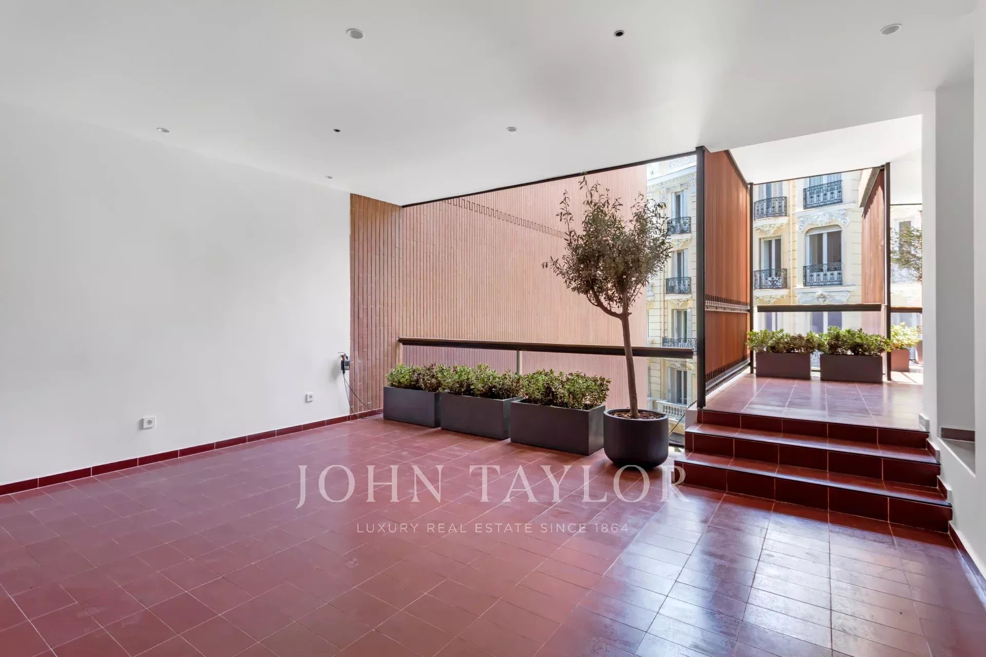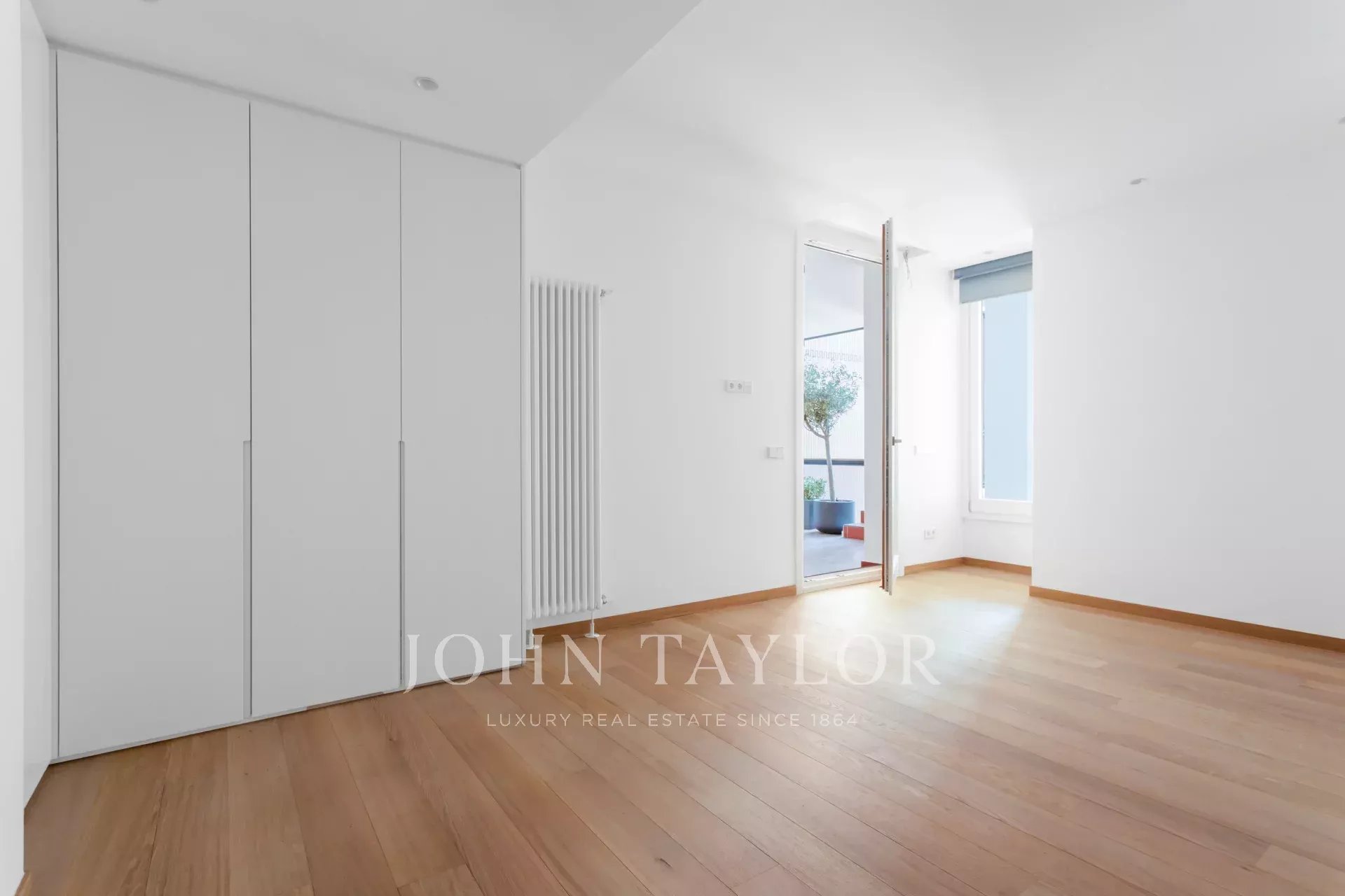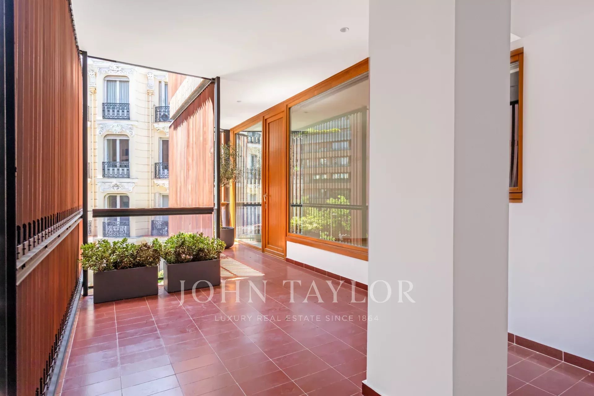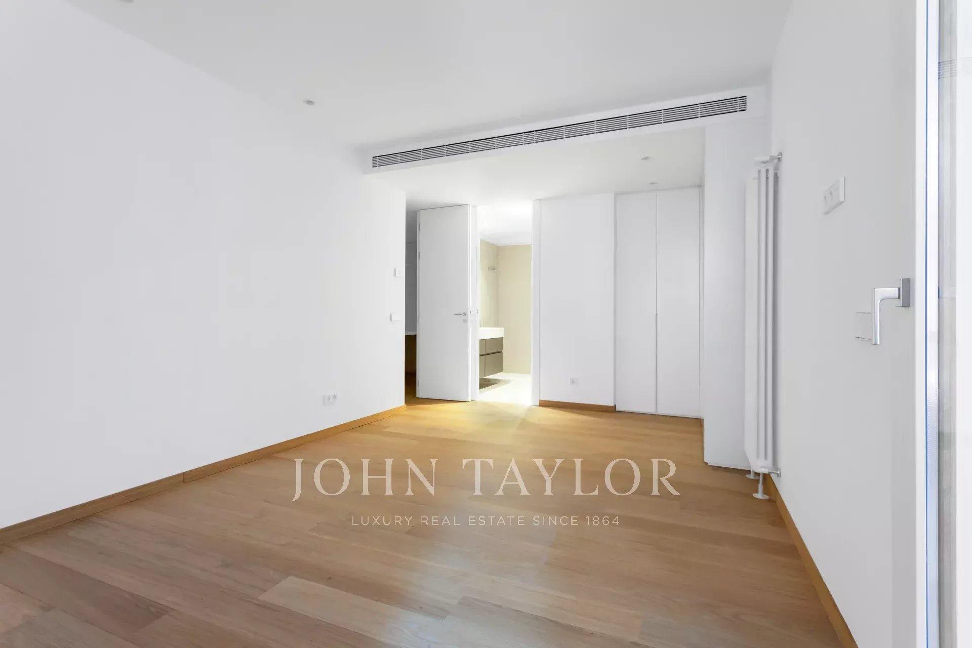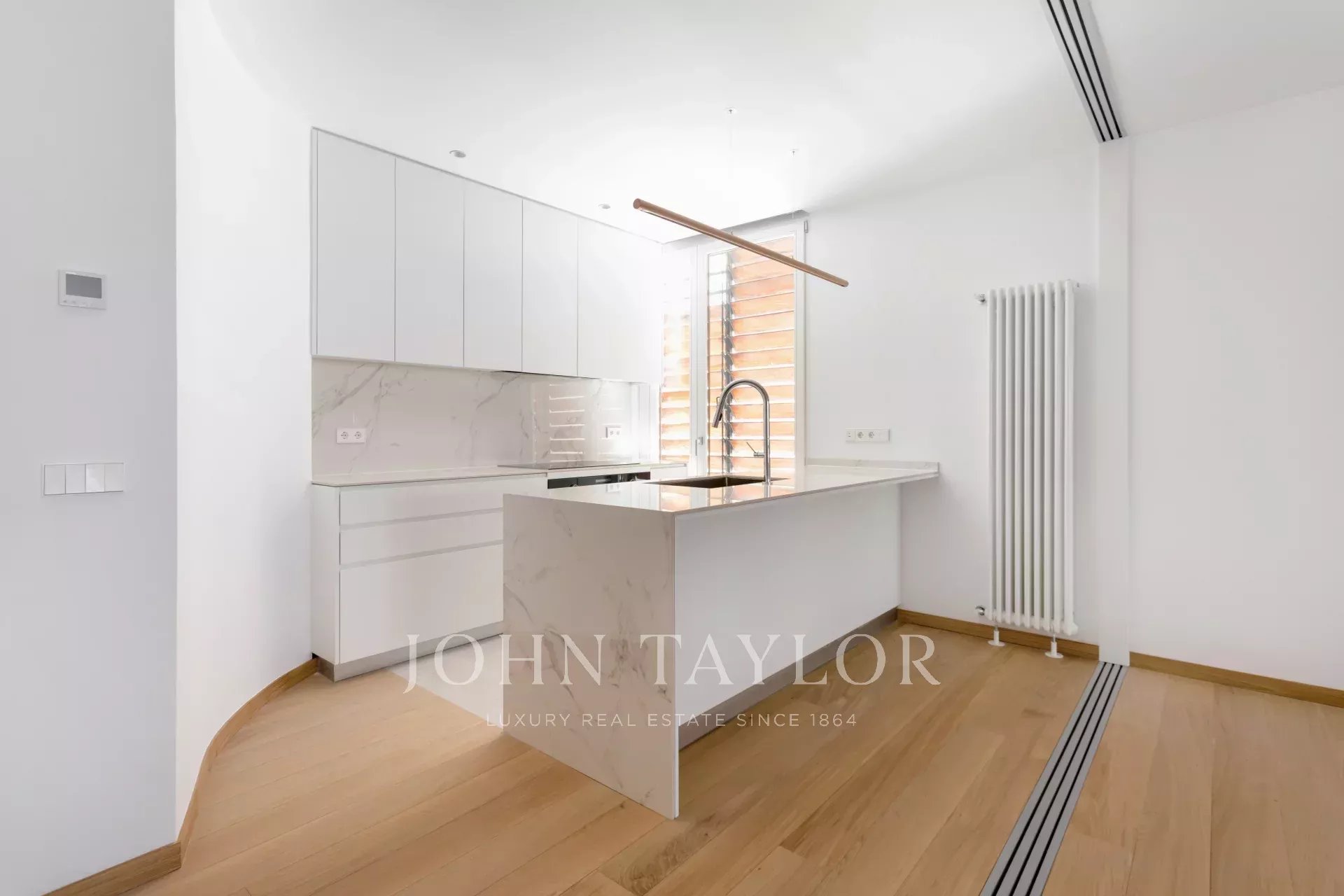 En sus 307 m² construidos, este piso único, dispone de un recibidor privado contiguo al ascensor principal, un segundo recibidor al interior que distribuye en primer lugar a la zona pública de la vivienda – aseo de invitados, y salón, comedor y cocina americana integrable – todo abierto a terrazas hacia la calle Lagasca. Desde el recibidor también se accede a la zona de dormitorios pasando por amplios armarios y un “work place” que articulan una primera master suite con un vestidor extraordinario y acceso a la terraza con vistas a Ortega y Gasset, junto a un baño completo; y una segunda master suite, también con acceso a la terraza principal, zona de vestidor, y baño completo.
