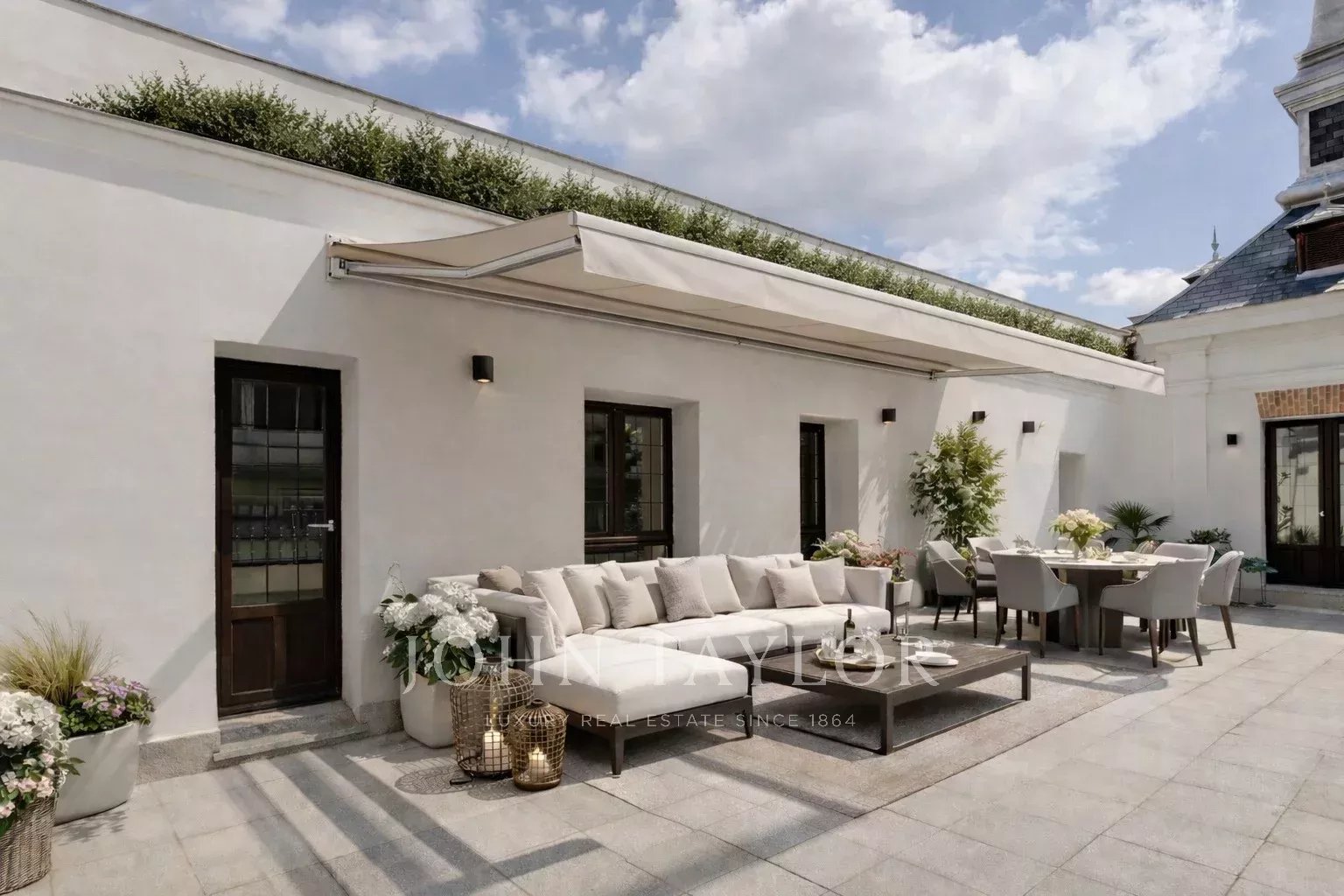 John Taylor presenta este fabuloso ático con una enorme terraza con orientación sur, en uno de los edificios más espectaculares de la ciudad de Madrid, clásico y totalmente renovado, con 3 plaza de garaje, piscina, spa y gimnasio y con amenities dignas de las mejores residencias a nivel mundial.