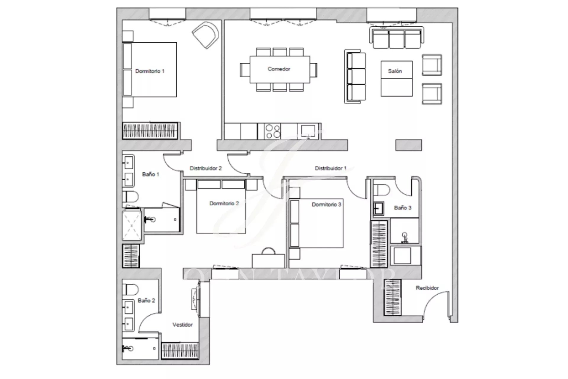 El inmueble dispone de tres dormitorios, cada uno con baño en suite, asegurando comodidad, privacidad y confort para toda la familia. La configuración y distribución de los espacios están pensadas para optimizar la luz natural y la funcionalidad de la vivienda.