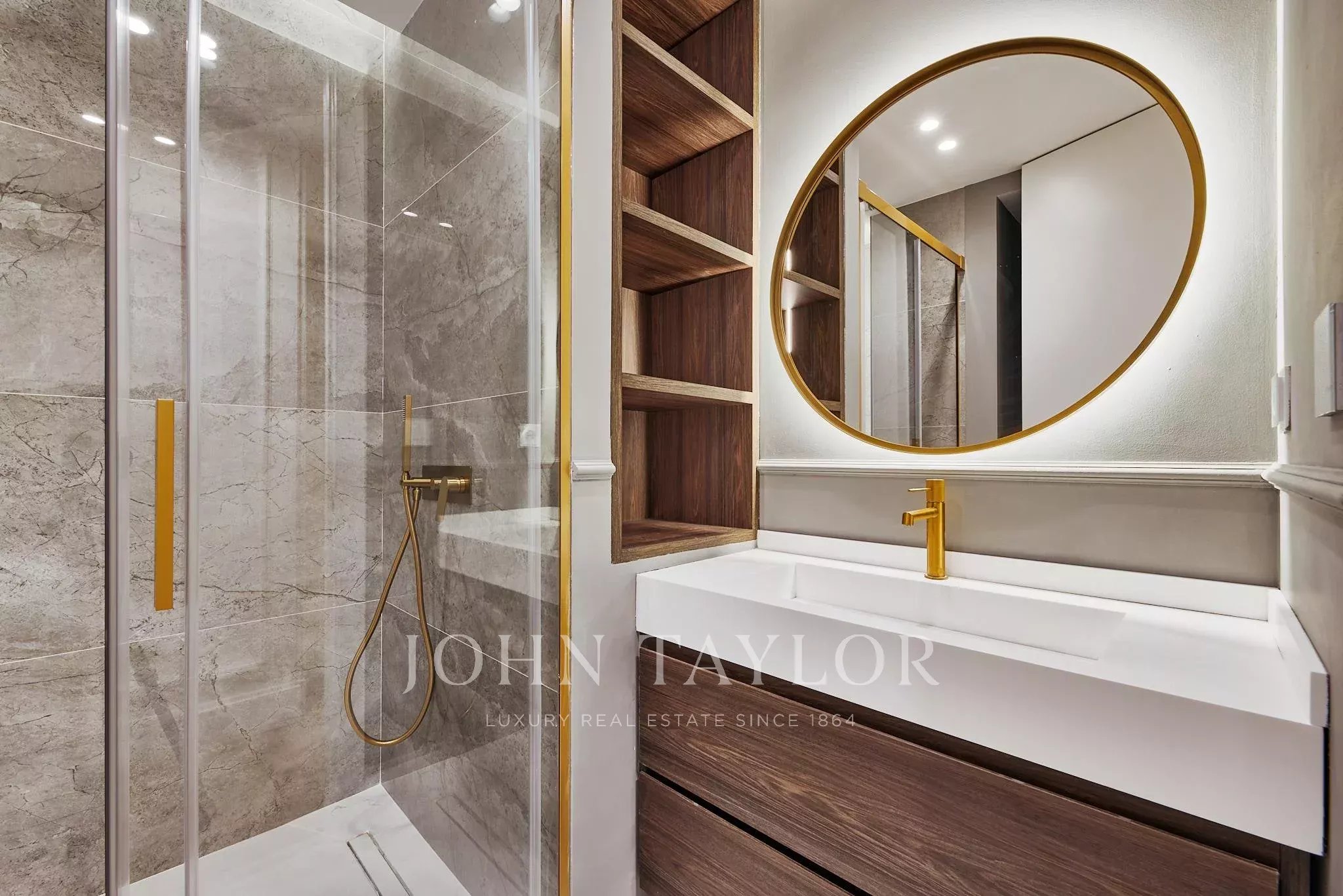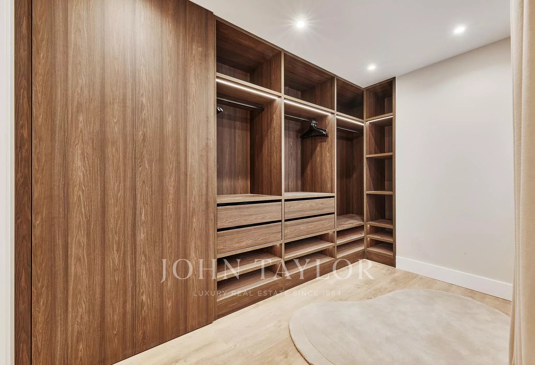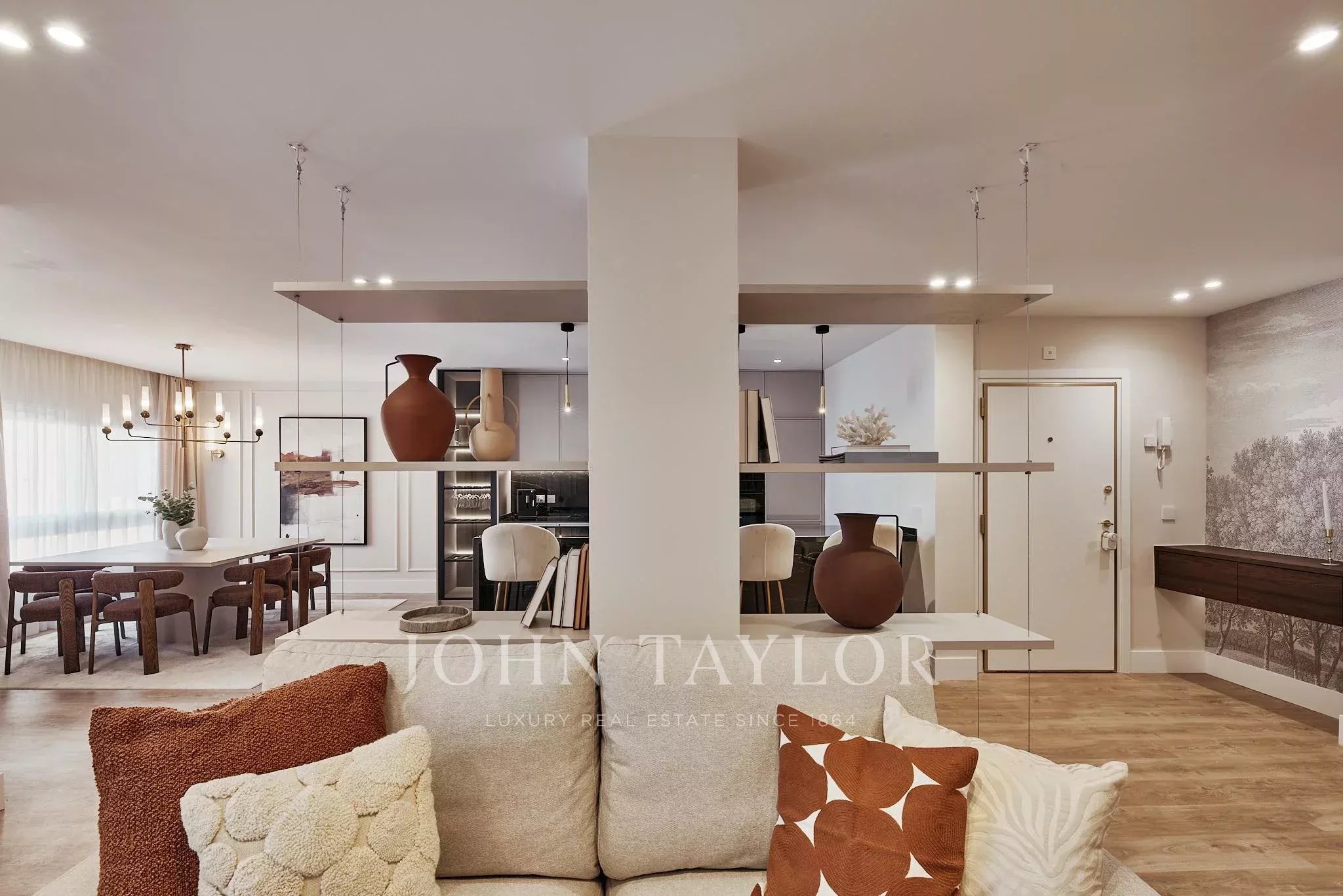 La zona de día ofrece un amplio salón-comedor con salida a espacio exterior y una cocina totalmente equipada, integrada con armonía. Dispone de tres dormitorios y tres baños completos, además de vestidor y soluciones de almacenamiento a medida.