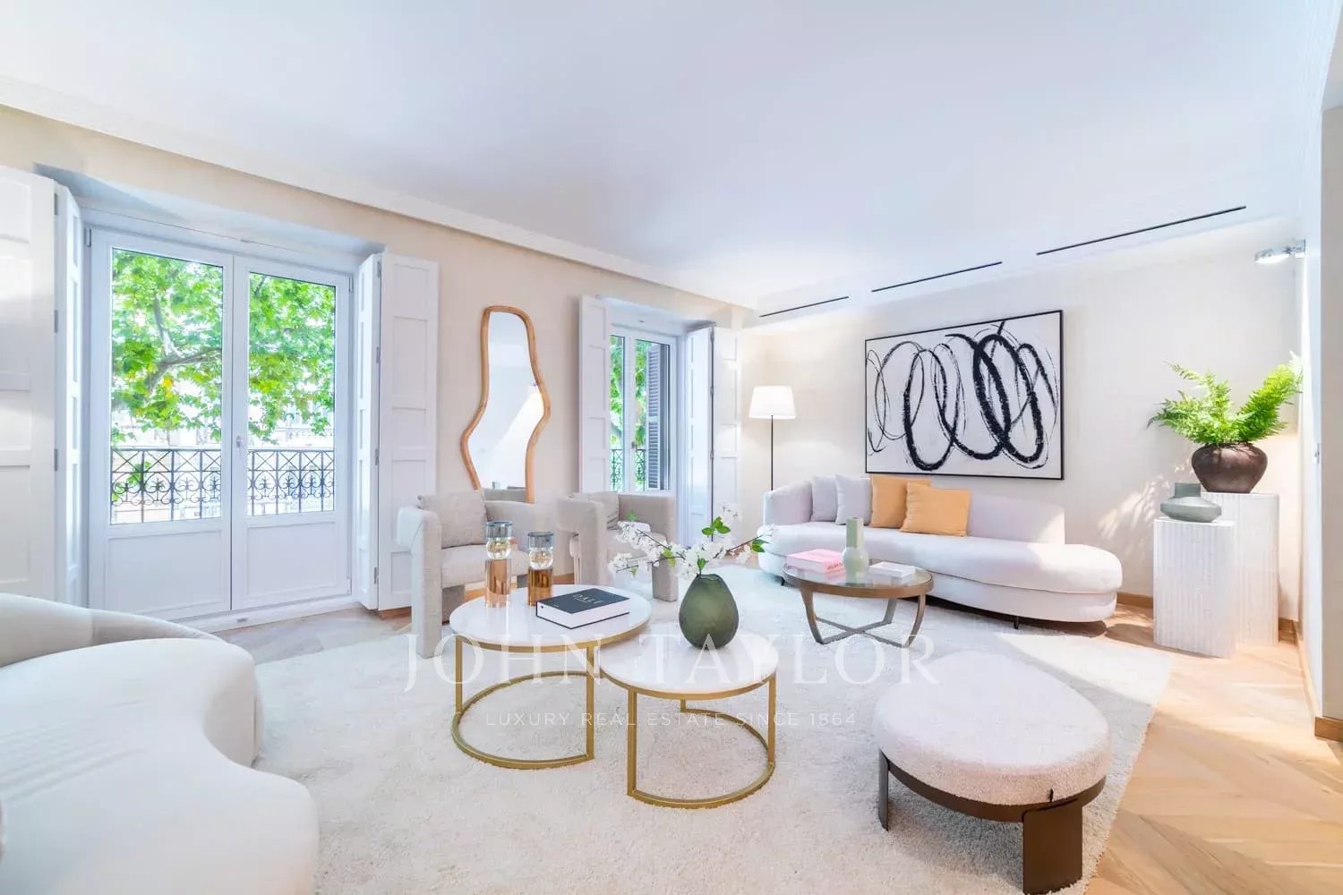 Ubicada en una de las direcciones más representativas del barrio de Salamanca, esta magnífica vivienda exterior se sitúa en la primera planta de una señorial finca de 1920 con ascensor y un elegante portal clásico.
