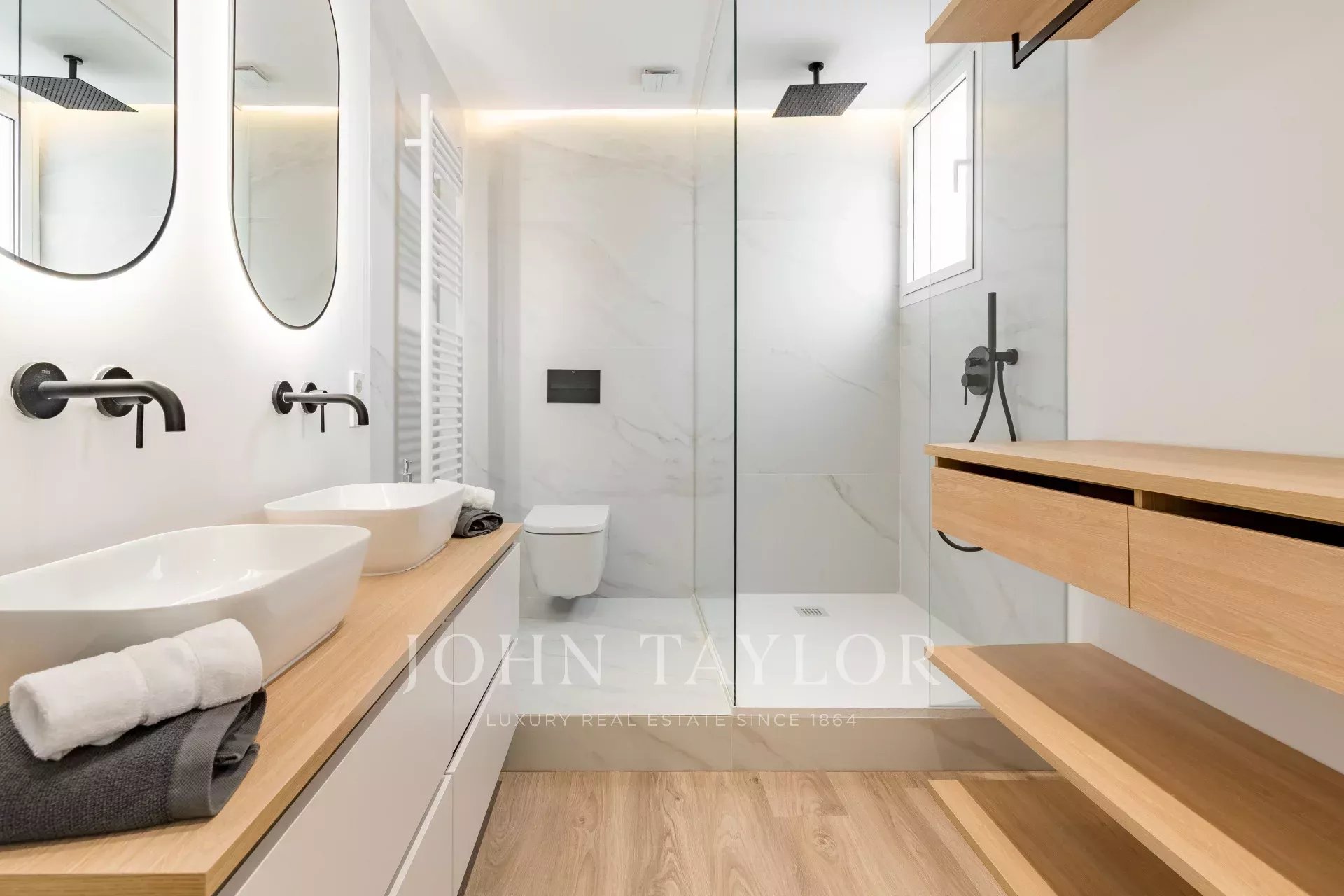 Los dos dormitorios son espaciosos, siendo la habitación principal un verdadero refugio con baño en suite y vestidor, mientras que la segunda habitación también ofrece su propio vestidor y baño en suite, garantizando privacidad y confort.