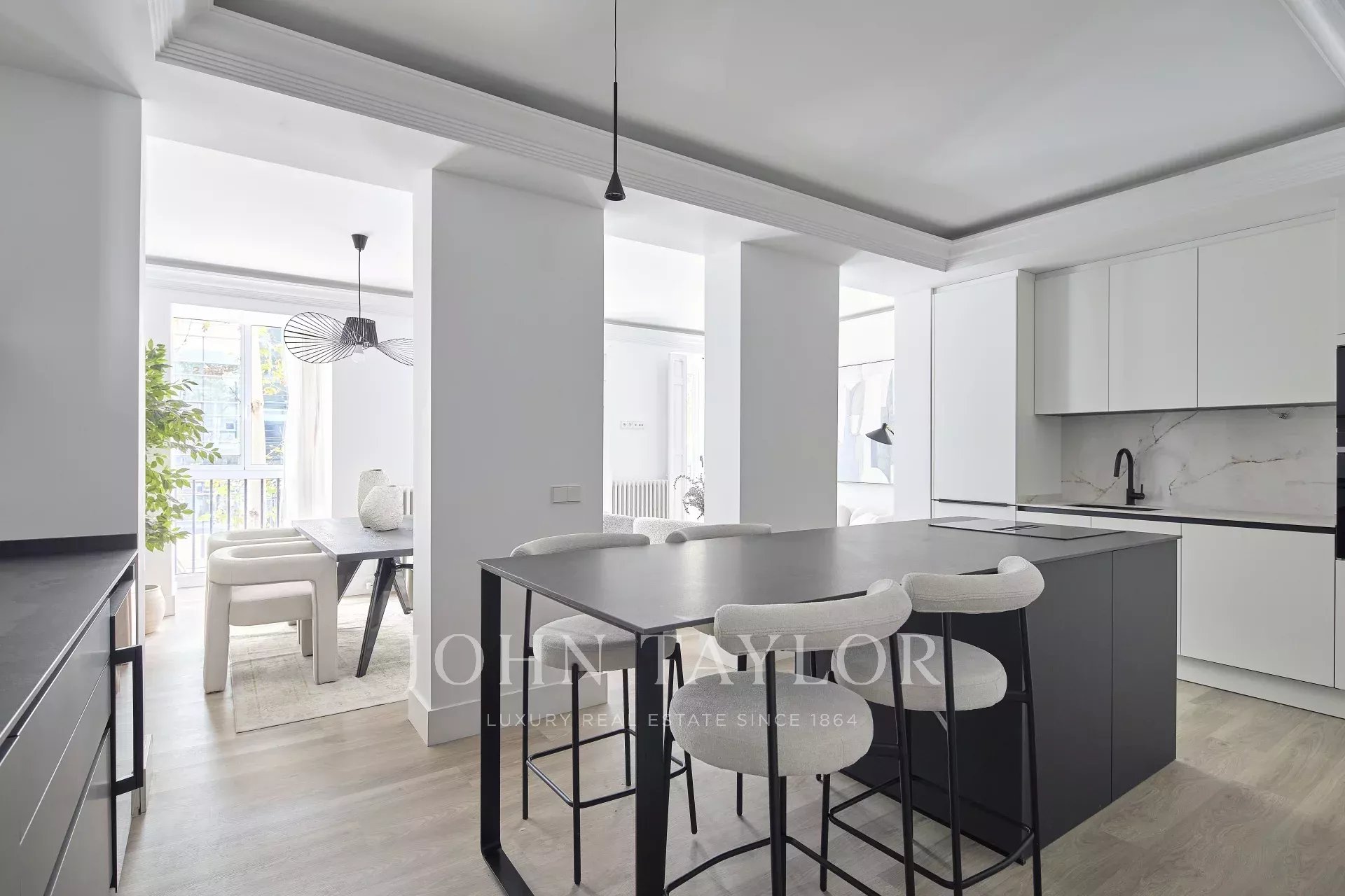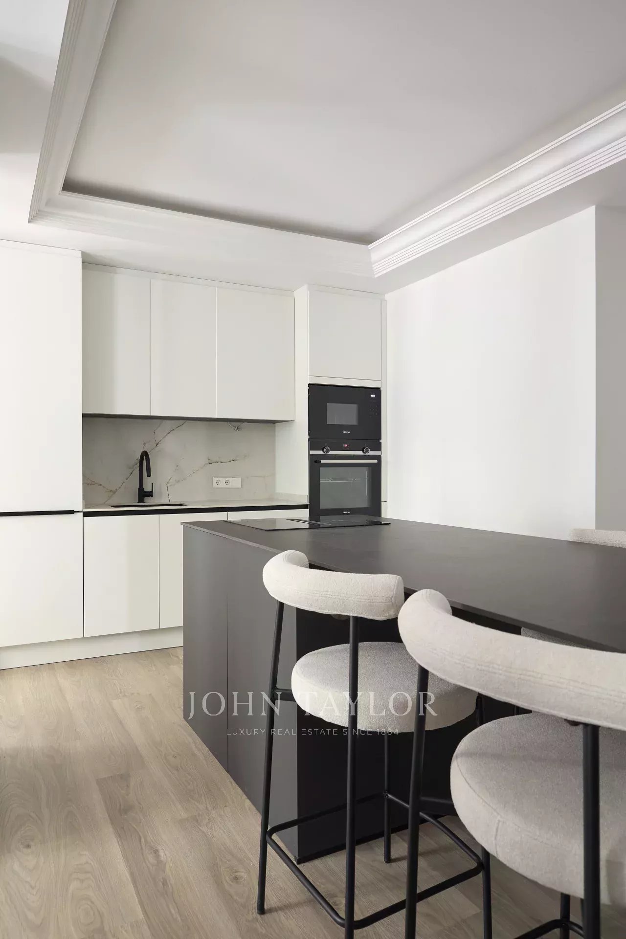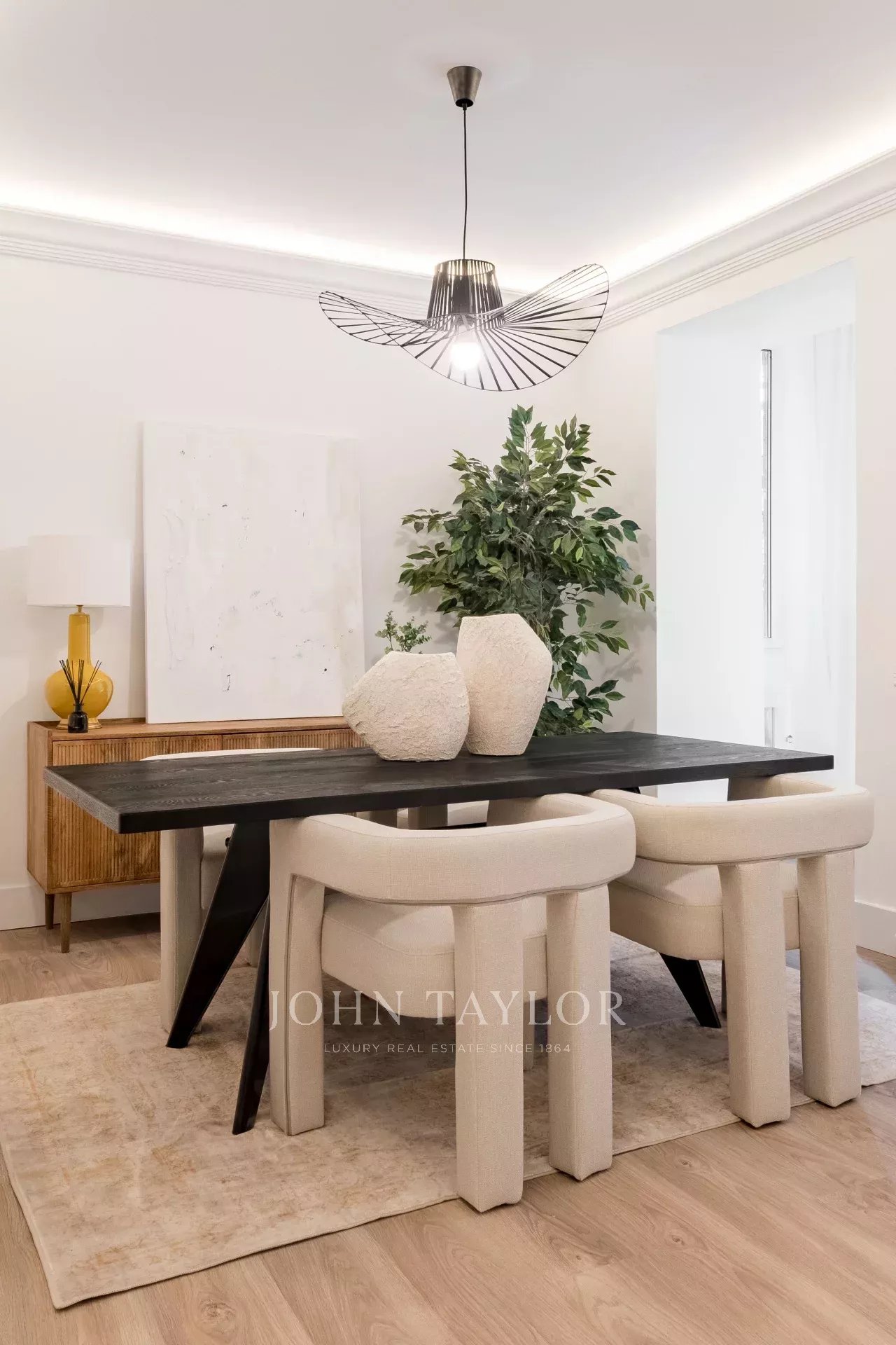 Descubre este elegante piso recién reformado de 112 m² situado en un edificio de fachada clásica con dos balcones y un mirador a la calle y orientación al Sur. Este hogar es una perfecta fusión de elegancia clásica y comodidades modernas, ideal para quienes buscan un espacio único y acogedor. El amplio salón comedor se divide en dos ambientes perfectos para disfrutar de momentos en familia o recibir amigos.