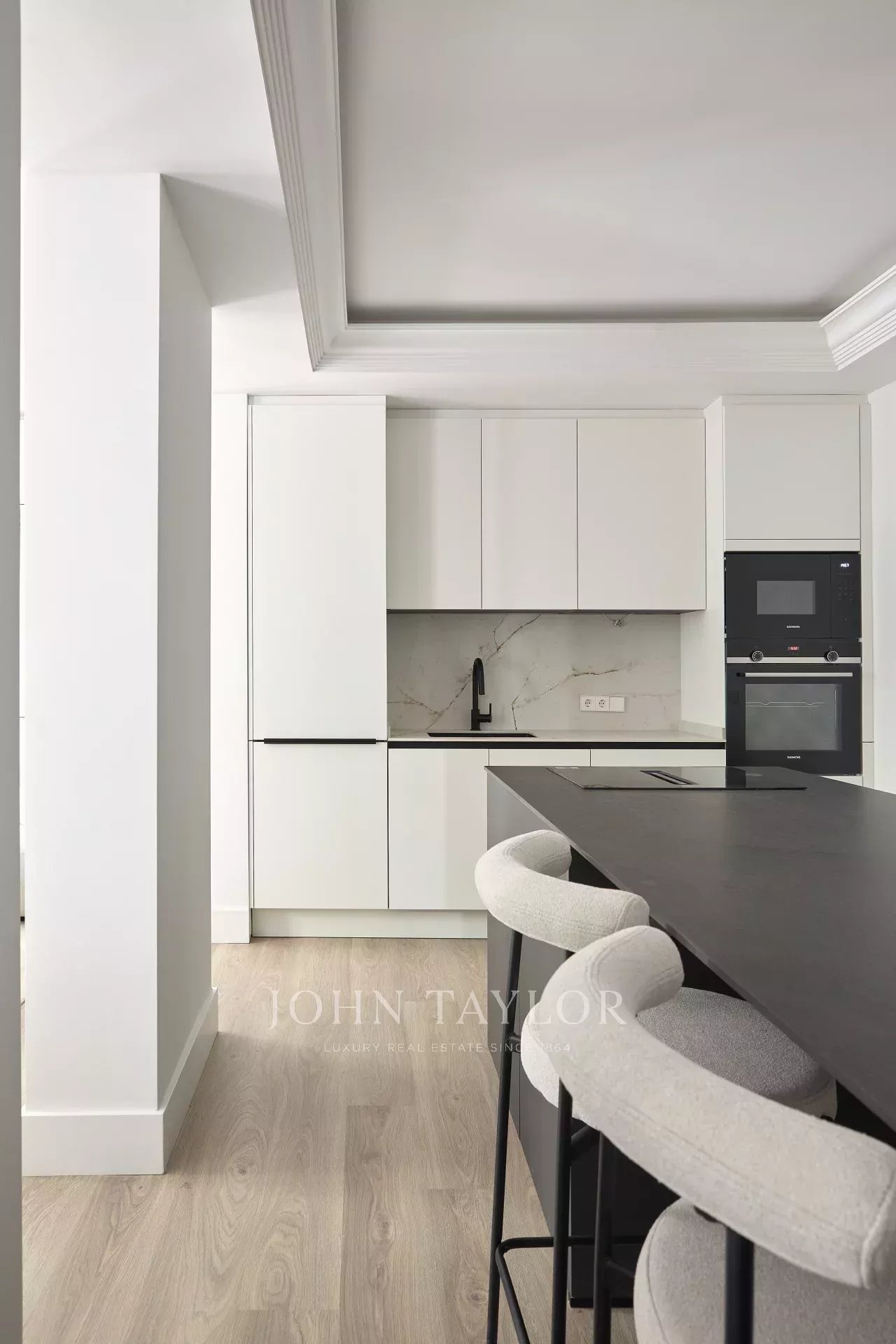 Los balcones orientados al sur son el lugar perfecto para relajarse. La calefacción central y el aire acondicionado aseguran un ambiente agradable durante todo el año. Ubicado estratégicamente en el barrio de Goya (distrito de Salamanca), este piso está rodeado de una variada oferta de restaurantes y tiendas, lo que lo convierte en una opción ideal para disfrutar de la vida urbana sin renunciar a la tranquilidad.