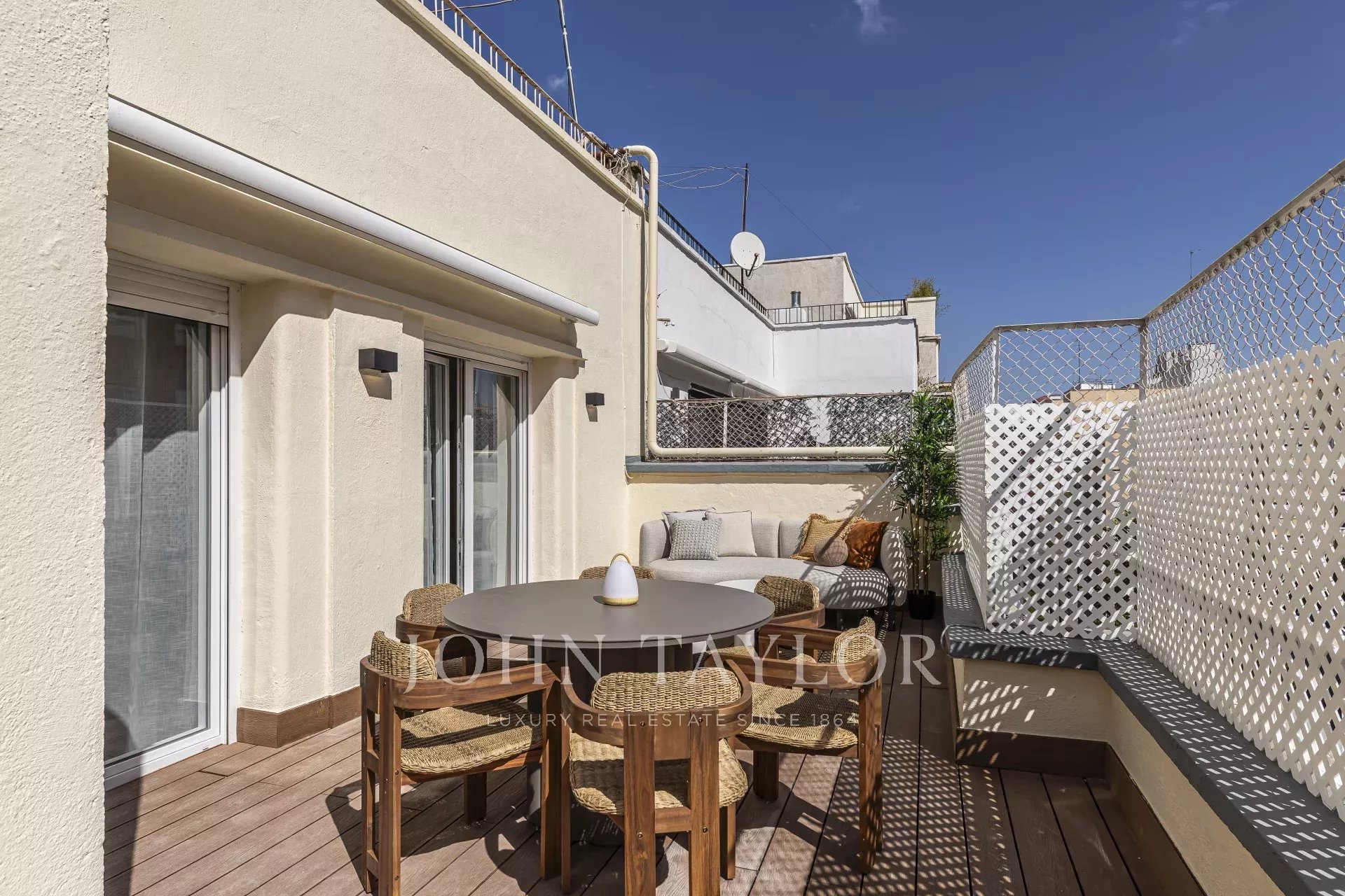 Ubicada en la sexta planta de un edificio clásico de 1948, este magnífico ático de 157 m² ha sido completamente reformada para ofrecer un equilibrio perfecto entre tradición y modernidad.