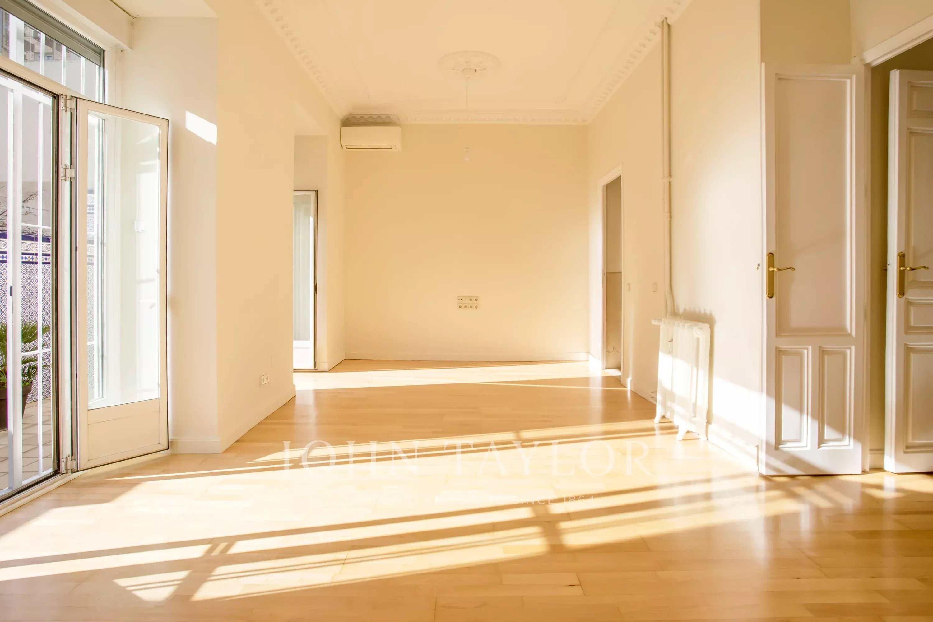 En un elegante edificio de fachada clásica de principios del siglo XX se sitúa esta exclusiva vivienda, que destaca por su luminoso patio-jardín con orientación sur, un auténtico valor añadido que permite disfrutar de un espacio exterior privado en pleno corazón del Barrio de Salamanca. La propiedad incluye un trastero.