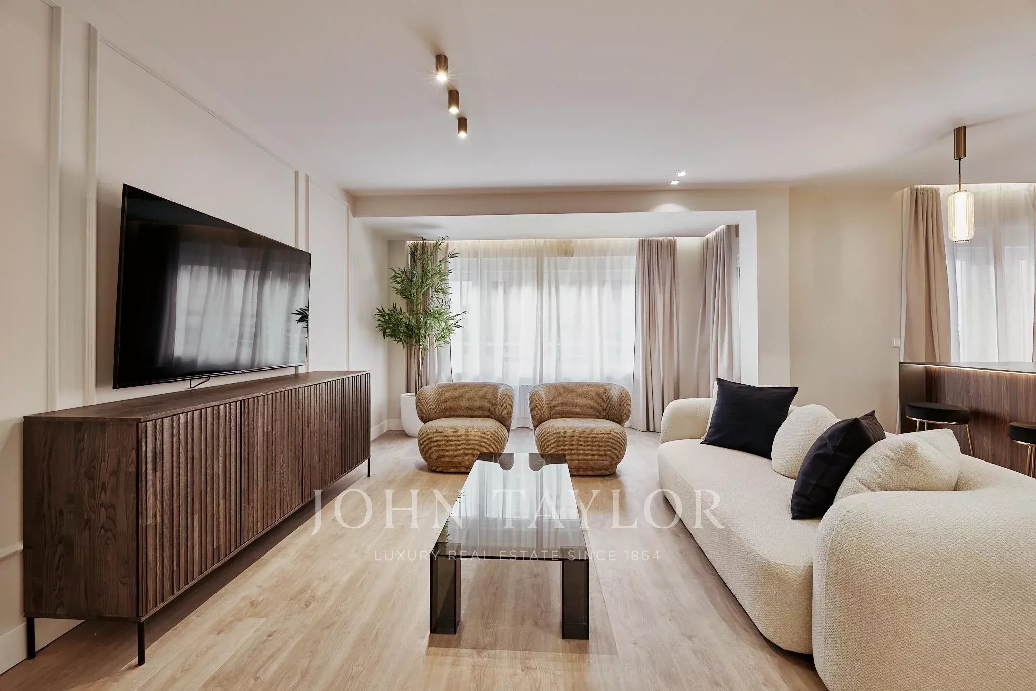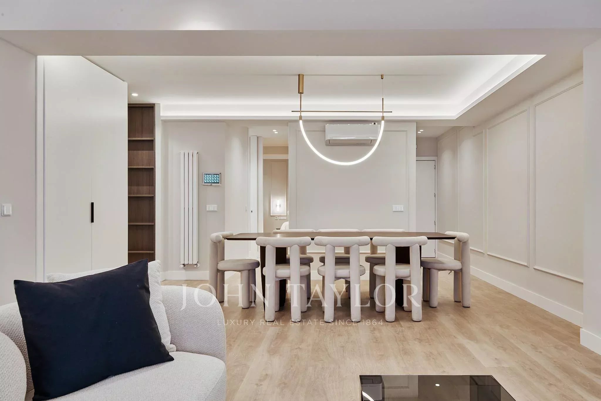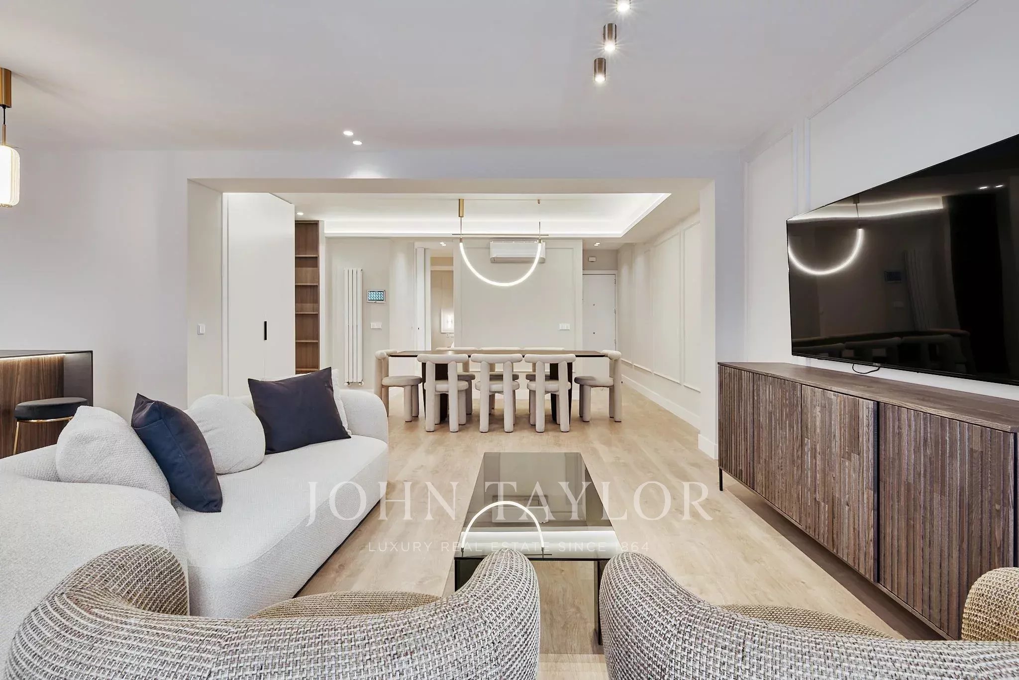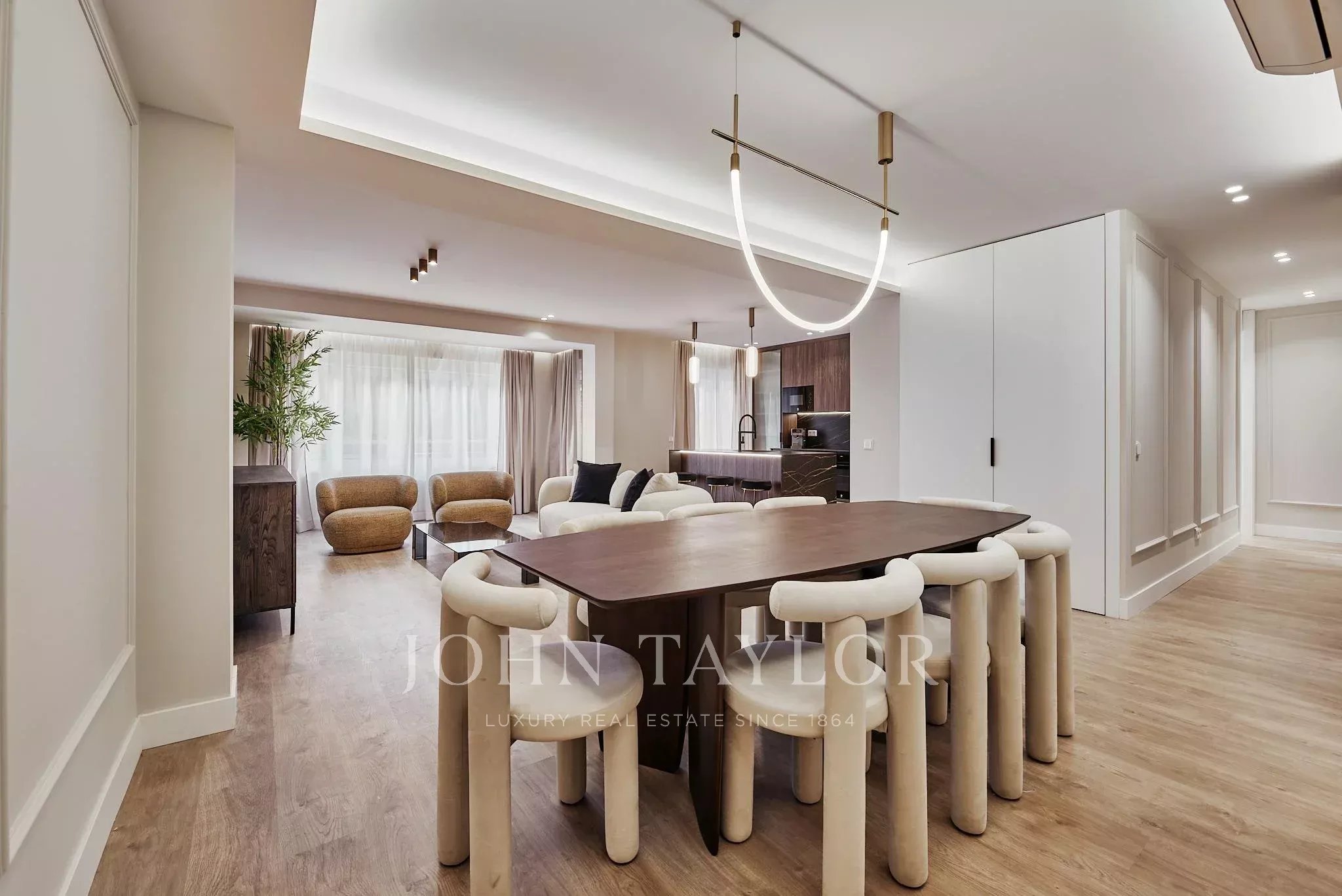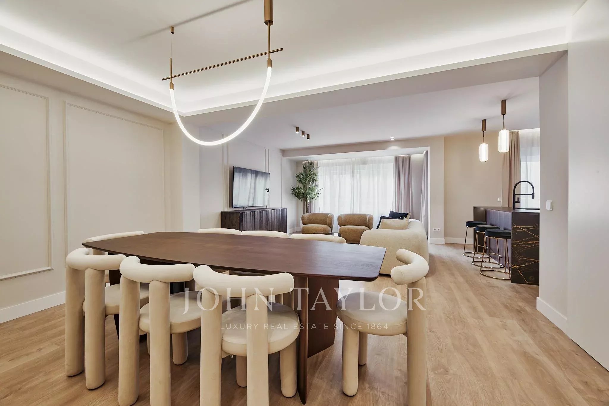 El proyecto de reforma ha dado lugar a una distribución generosa y armoniosa, donde el salón-comedor se abre directamente a la terraza, creando una continuidad natural entre interior y exterior. La cocina, completamente equipada, se integra con elegancia en el conjunto, pensada para un estilo de vida contemporáneo.