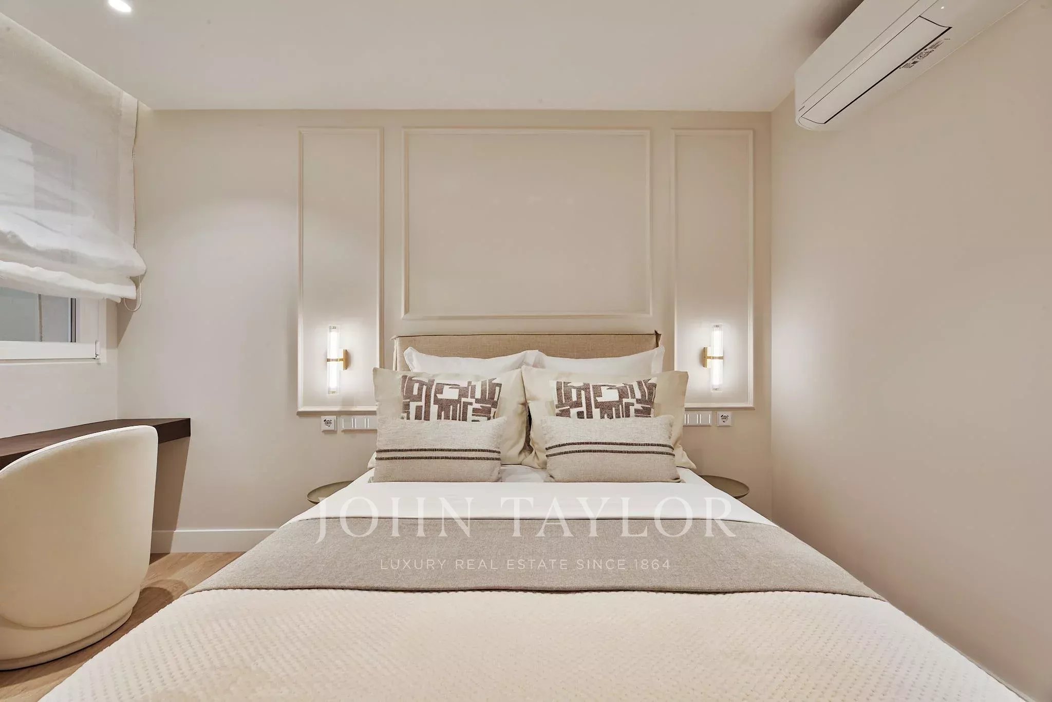 La zona de descanso se compone de cuatro dormitorios y cuatro baños completos, concebidos con un cuidado especial por el detalle, la funcionalidad y la estética. La selección de materiales y el mobiliario aportan coherencia y sofisticación a cada estancia.