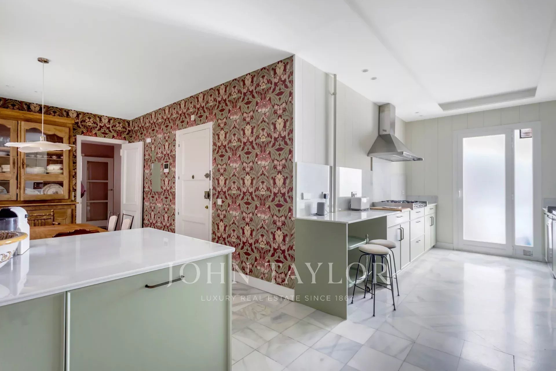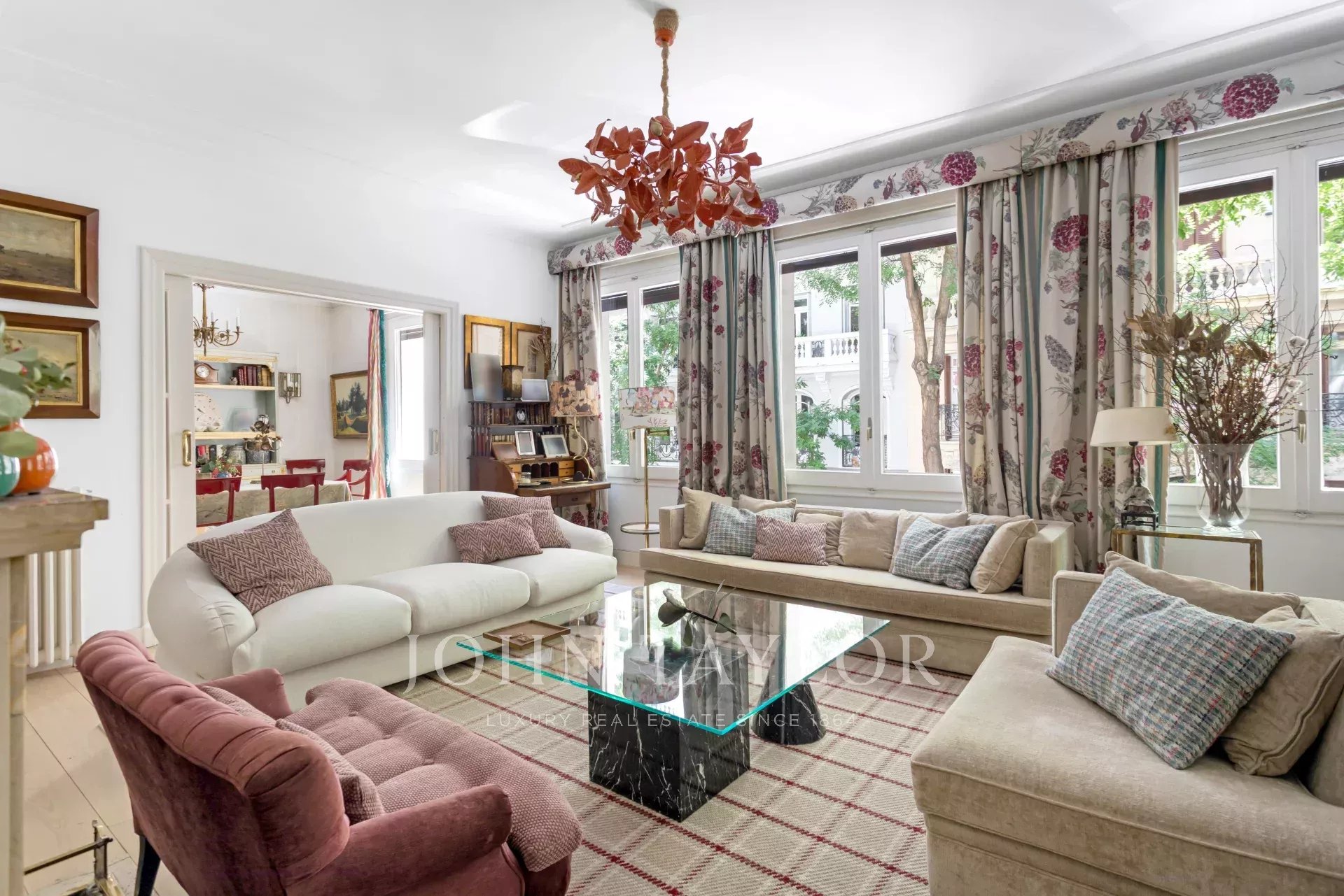 Exclusiva residencia de 305 m² con 7 huecos a la calle. Se presenta con una entrada señorial y un vestíbulo de carácter, donde el mármol y los suelos ajedrezados anticipan el tono elegante de la casa. Esta propiedad, exterior y orientada al este, permite que la luz inunde los salones desde primera hora, realzando las proporciones generosas y la fluidez entre estancias: amplios salones representativos con chimenea y molduras, una biblioteca o despacho integrado y comedor que invitan tanto a la vida familiar como a la recepción de invitados.