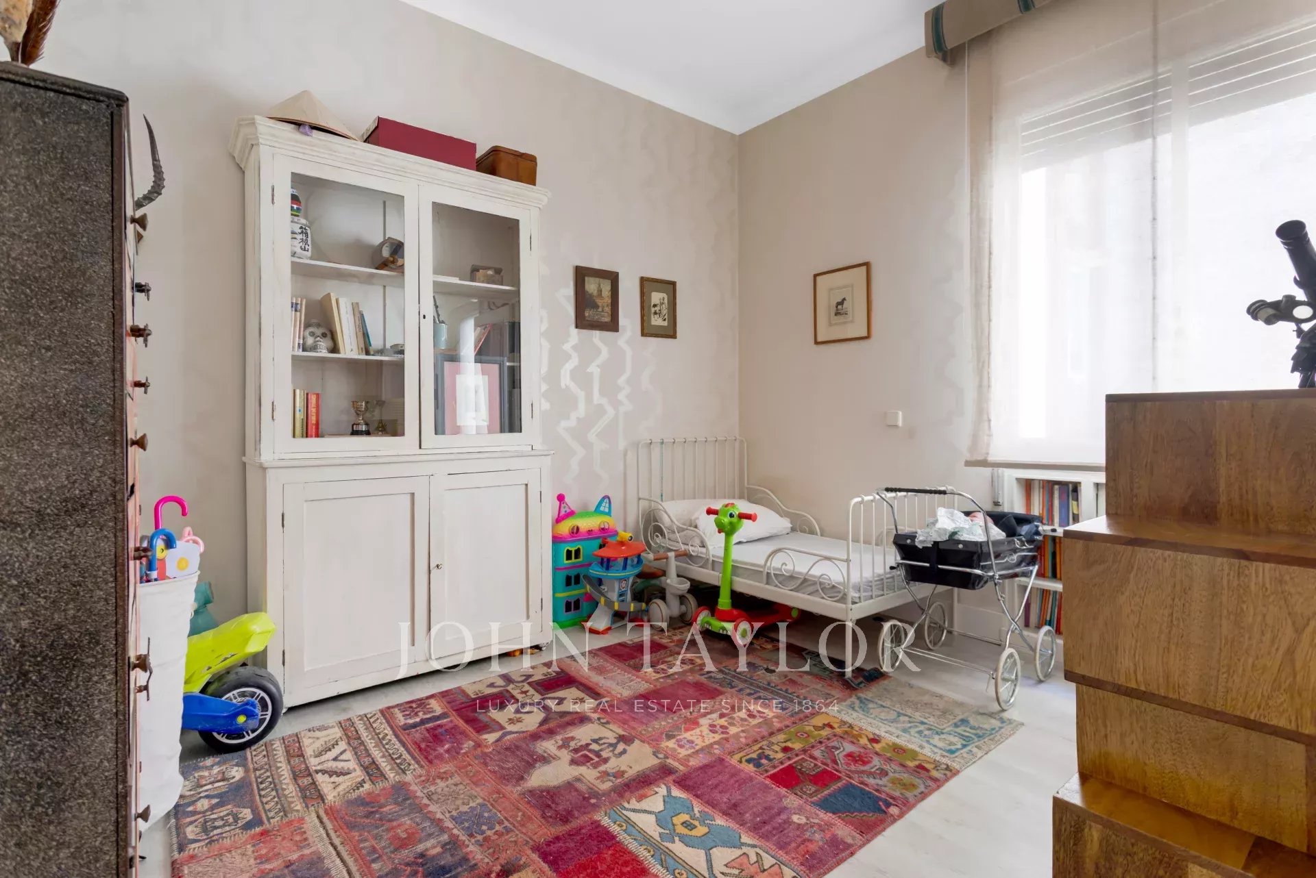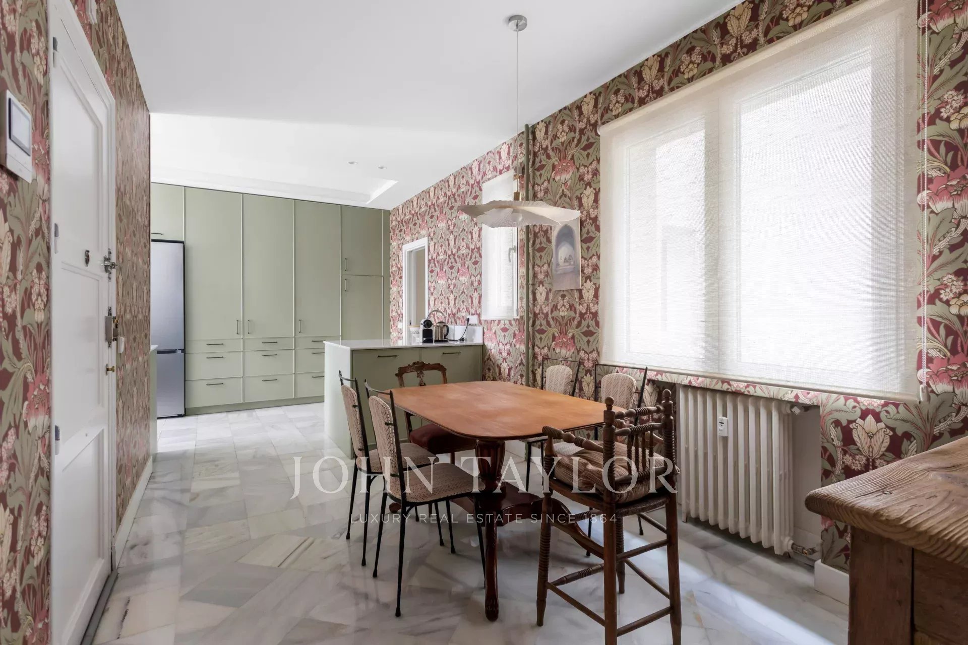 La cocina, práctica y funcional y de gran capacidad, mantiene una línea sobria con mobiliario a medida; Junto a ella, la zona de servicio aporta equilibrio al conjunto. Cuatro dormitorios que garantizan privacidad y versatilidad y tres baños distribuidos con criterio completan la vivienda, ofreciendo un lienzo perfecto para intervenir y actualizar respetando su esencia original. Luz, proporción y detalles de época conviven con el potencial para aportar toques contemporáneos sin perder el carácter señorial.