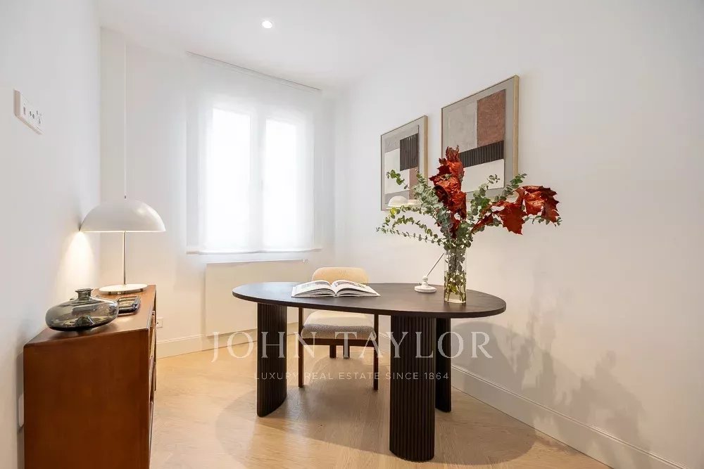 En un bonito edificio de fachada clásica y en pleno barrio de Recoletos, encontramos esta fabulosa propiedad, totalmente reformada, amueblada y a estrenar. Está ubicada en una cuarta planta con orientación sur, lo que, unido a su altura de techos y amplios ventanales, le otorga una fabulosa luz natural.
