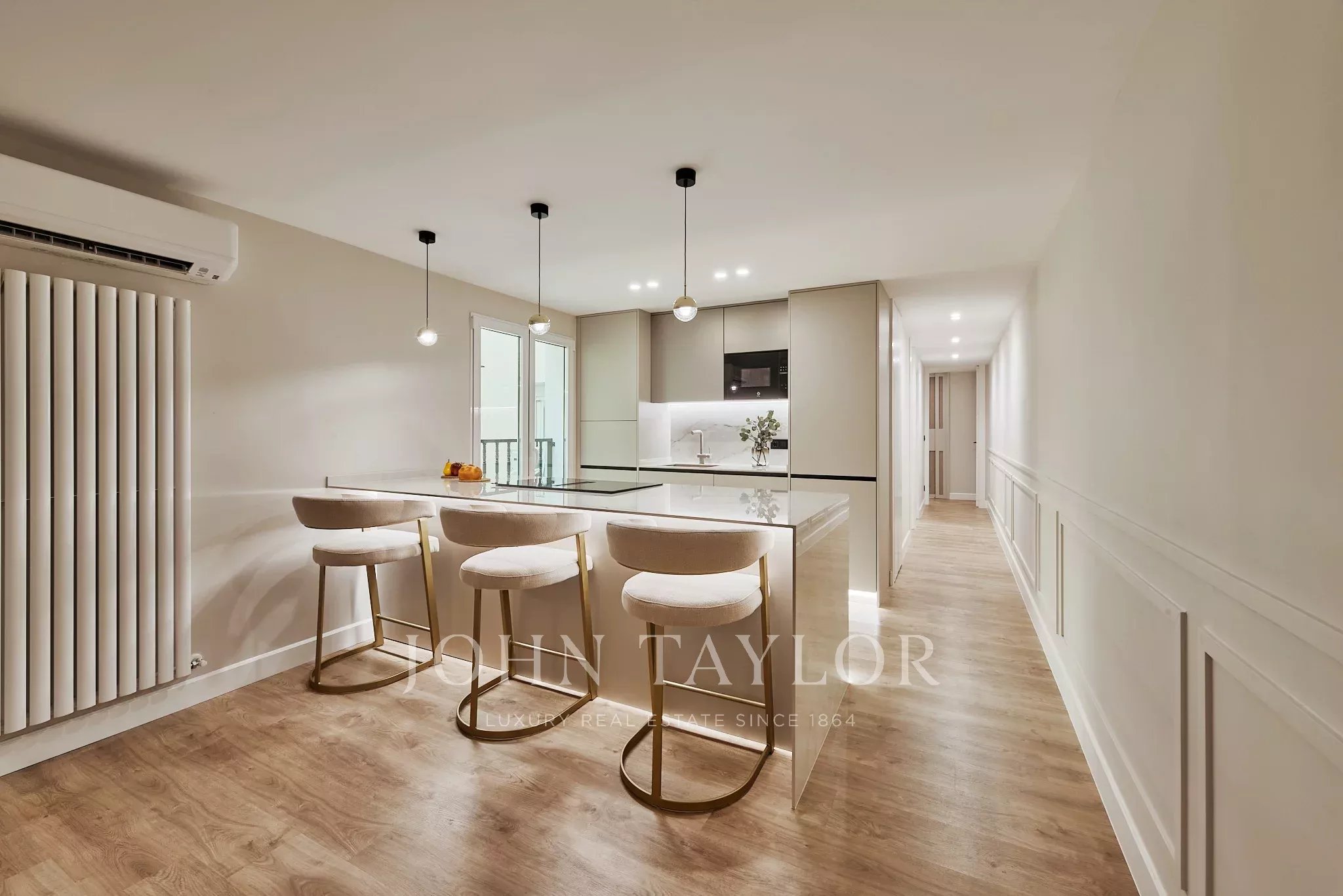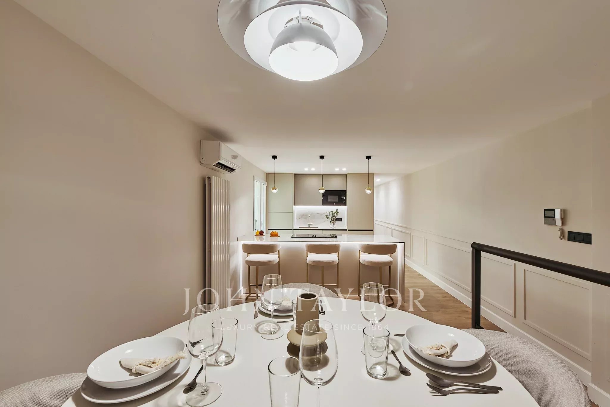 Experimente la vida urbana de lujo en el barrio más exclusivo de Madrid, Recoletos, con este impresionante dúplex, que combina la elegancia contemporánea en un edificio clásico.