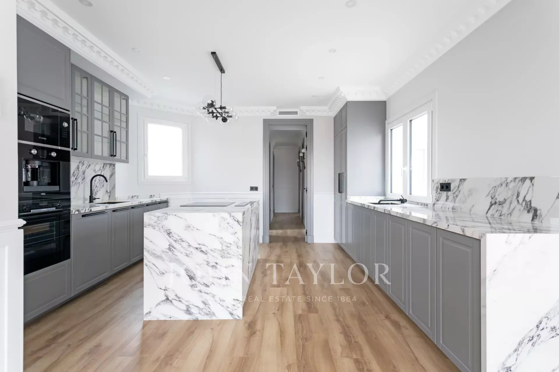 Situado en la sexta planta de un edificio moderno, la cualidad principal de esta propiedad es la abundancia de luz natural en todas las estancias.
