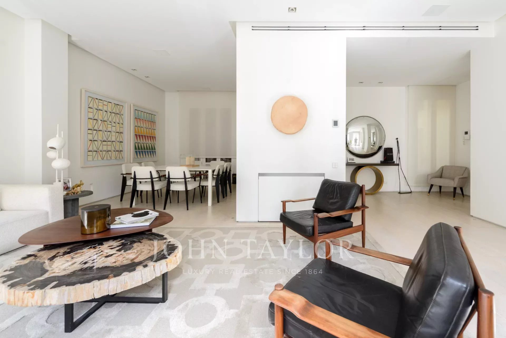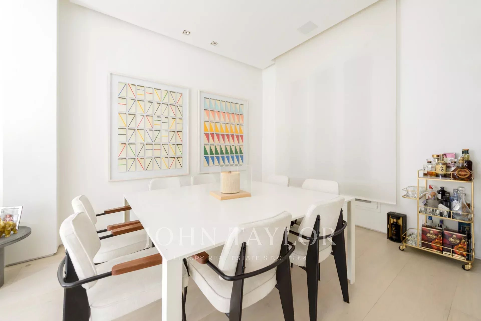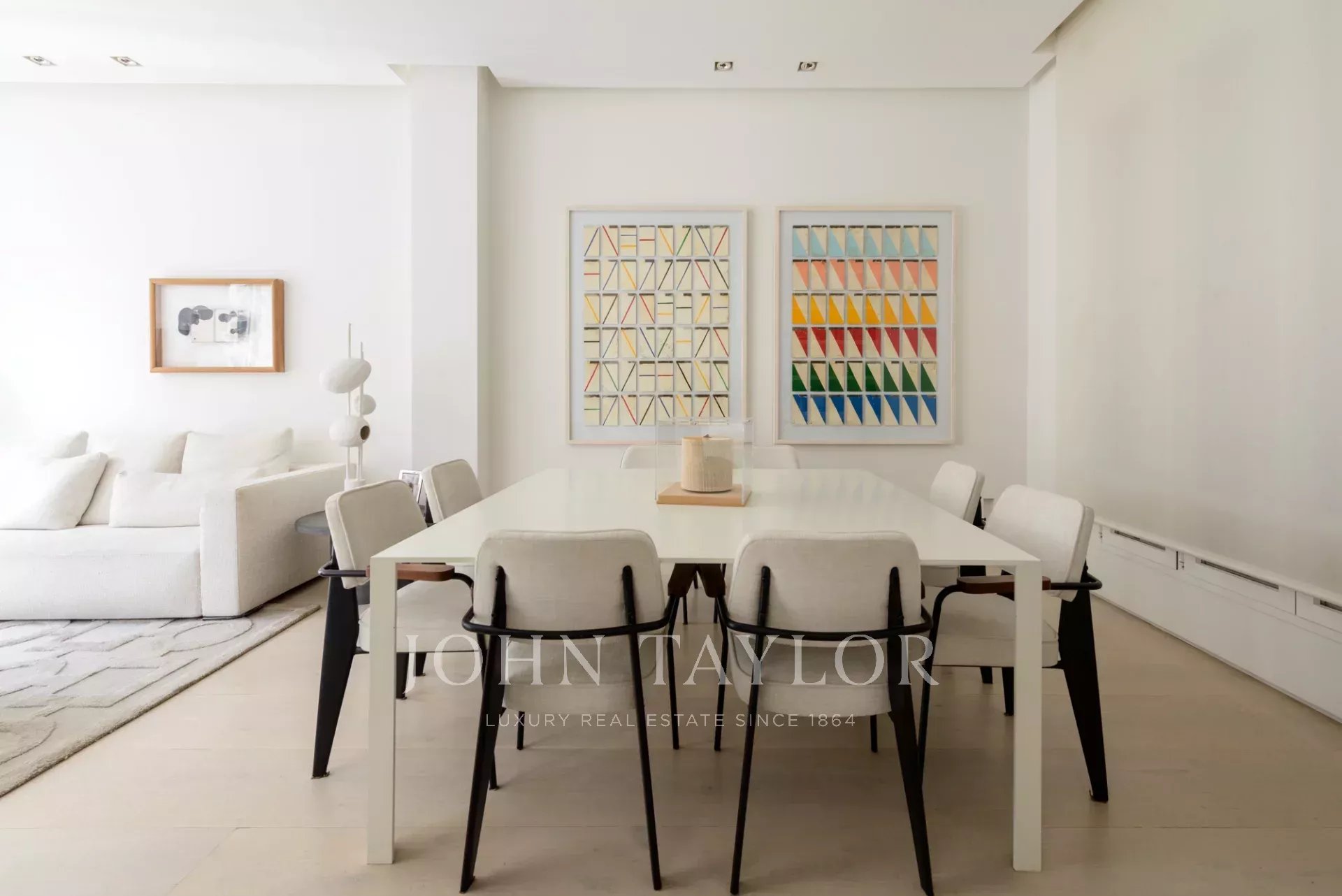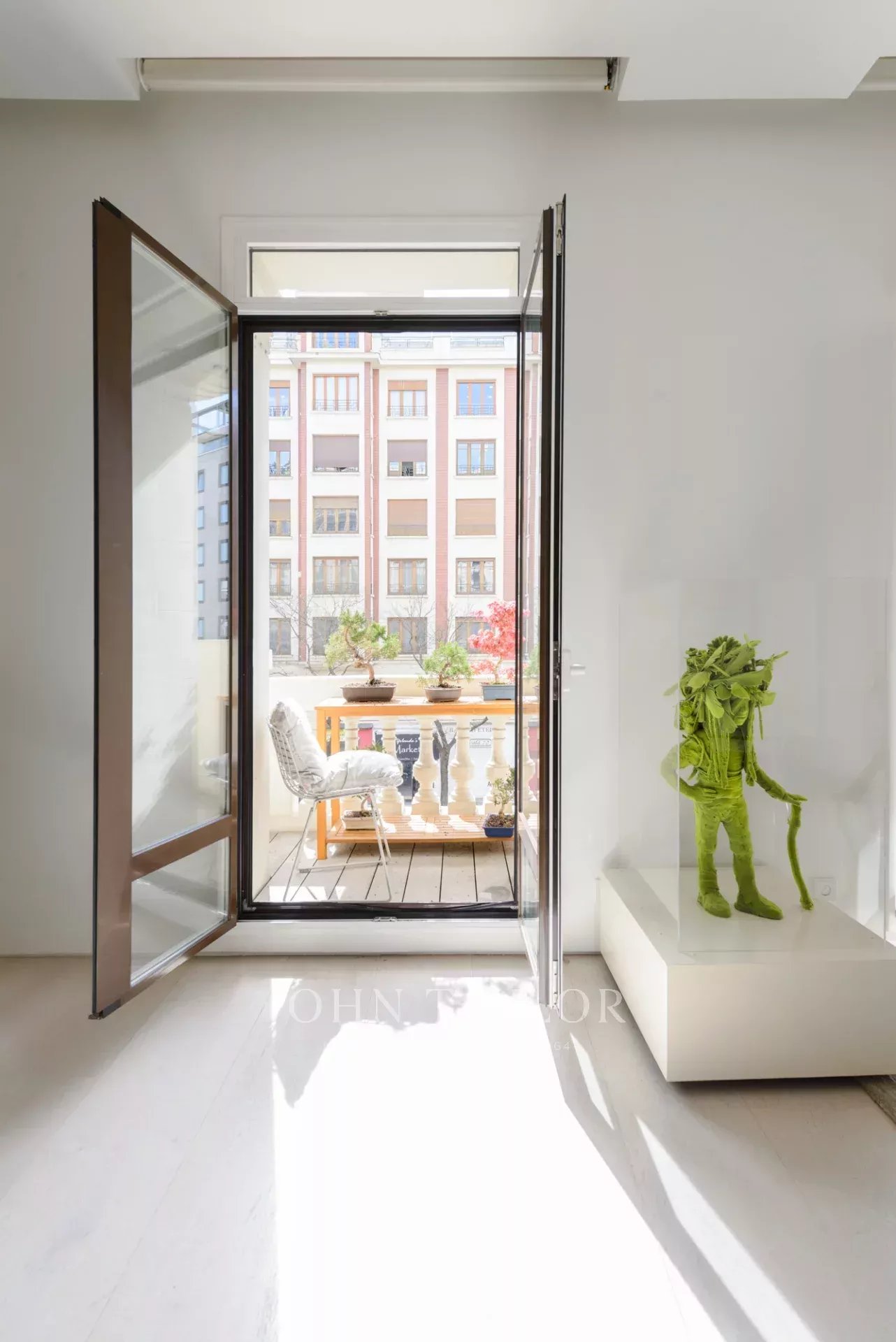 Esta inigualable vivienda se ubica junto al Parque del Retiro, en un espectacular edificio de fachada clásica. Destacamos especialmente sus cuatro balcones y la imponente altura de sus techos de más de 3 metros, que aportan amplitud y carácter a cada estancia. La reforma ha sido realizada por un reconocido equipo de diseñadores españoles, y cada detalle ha sido hecho a medida para este piso, incluidas las elegantes puertas de suelo a techo que refuerzan la sensación de sofisticación.