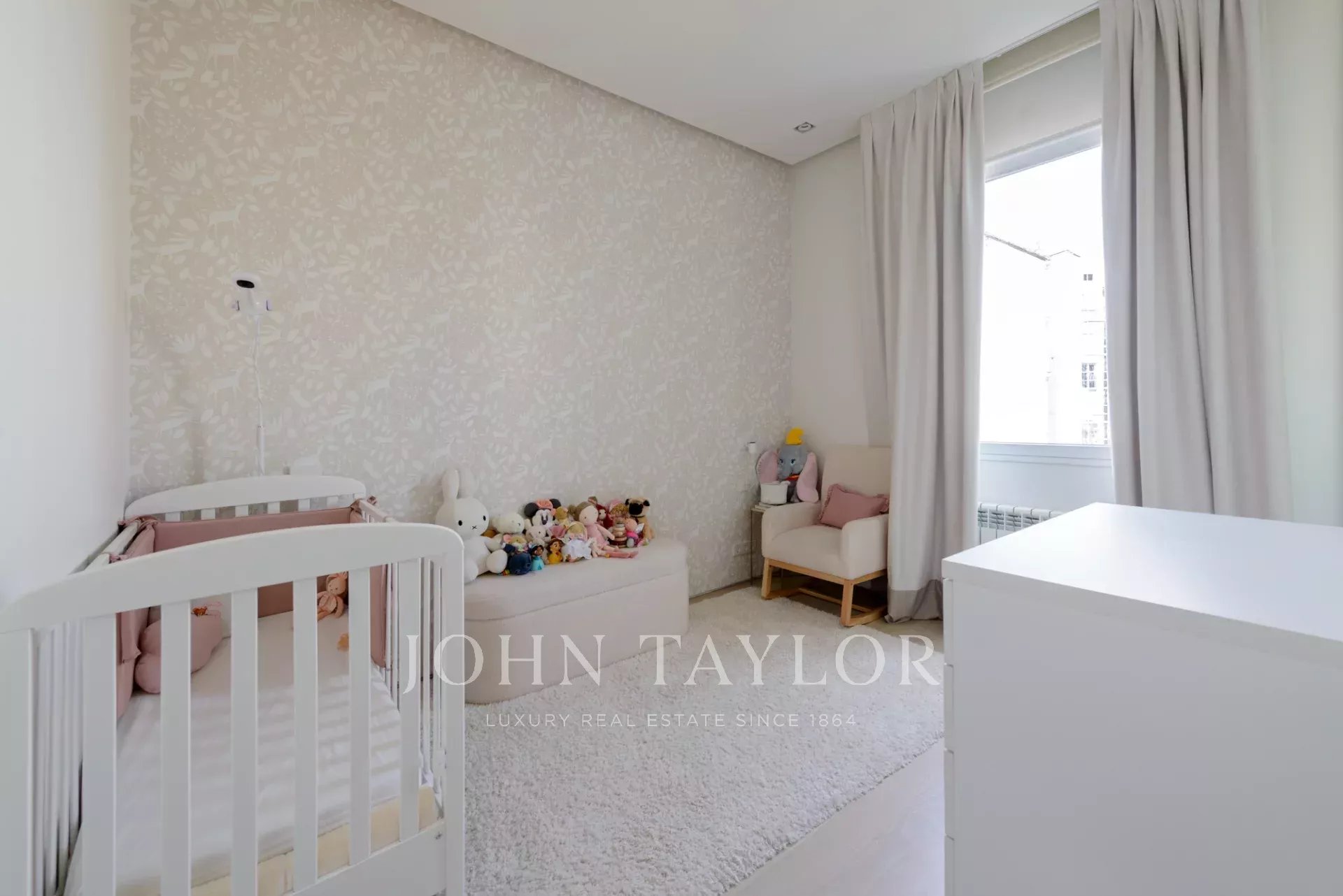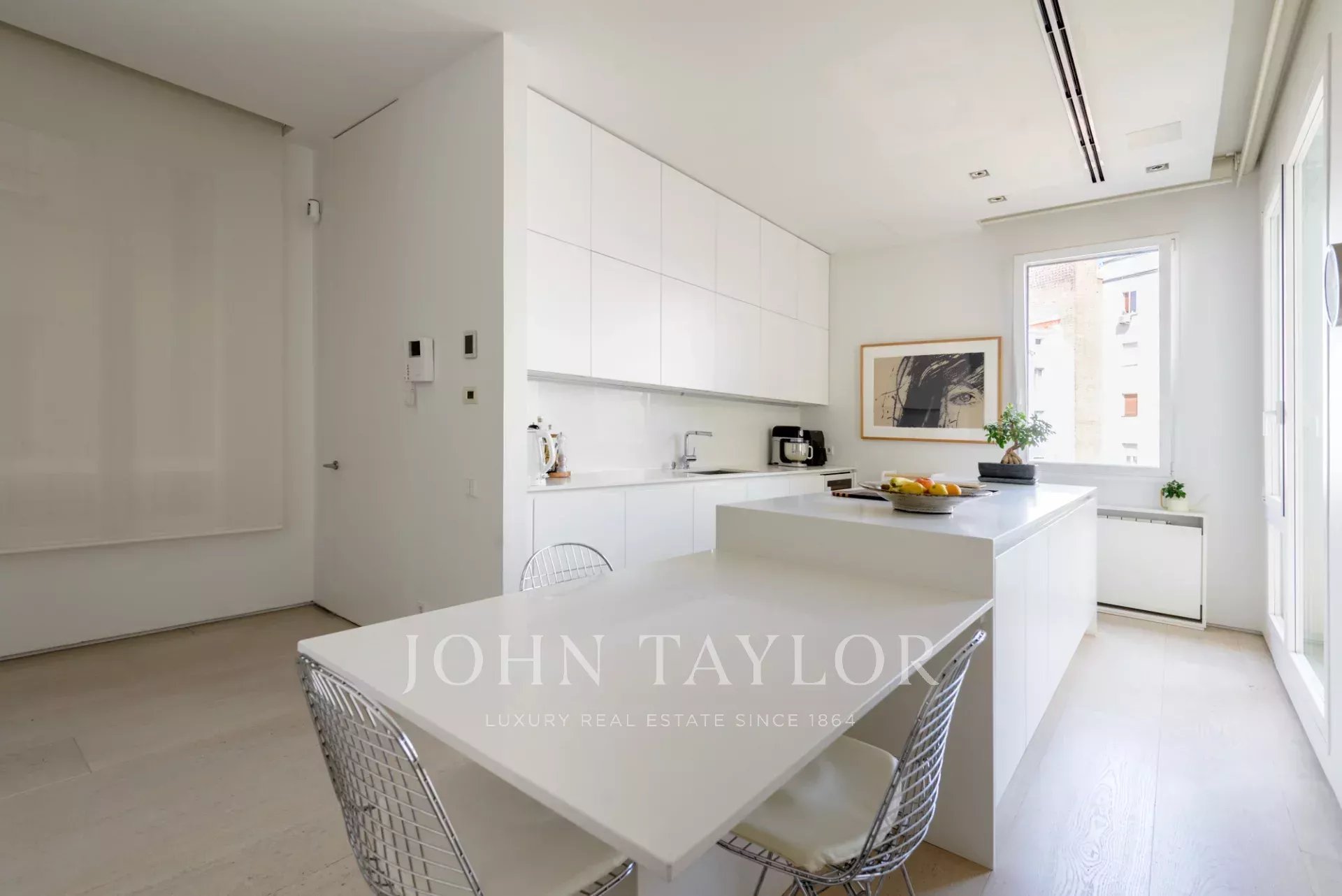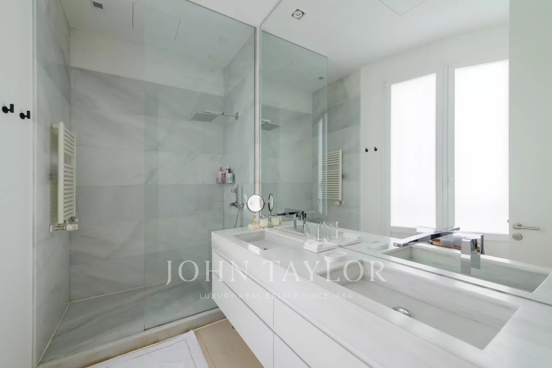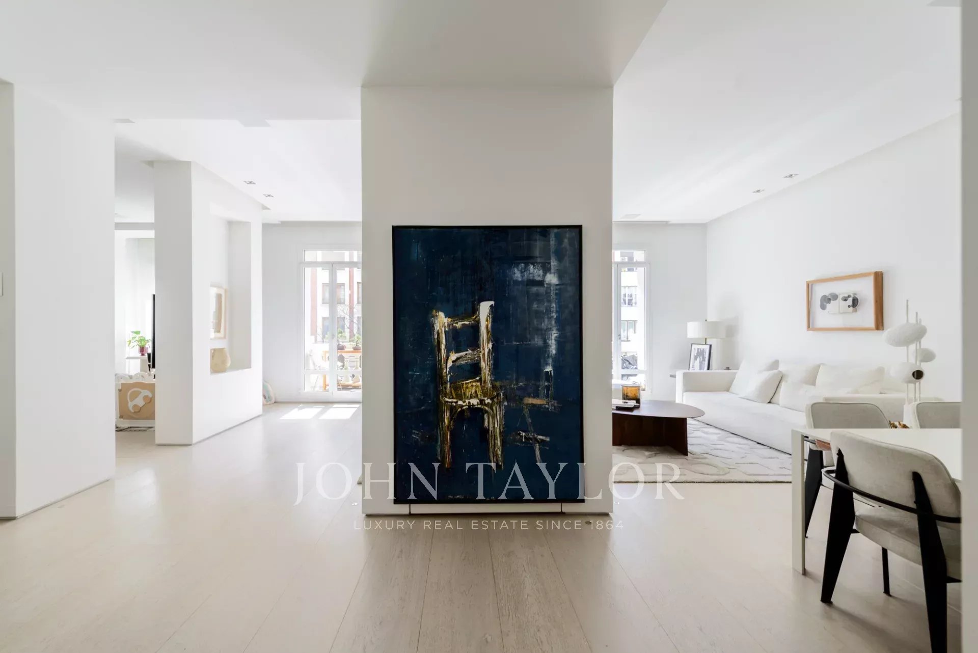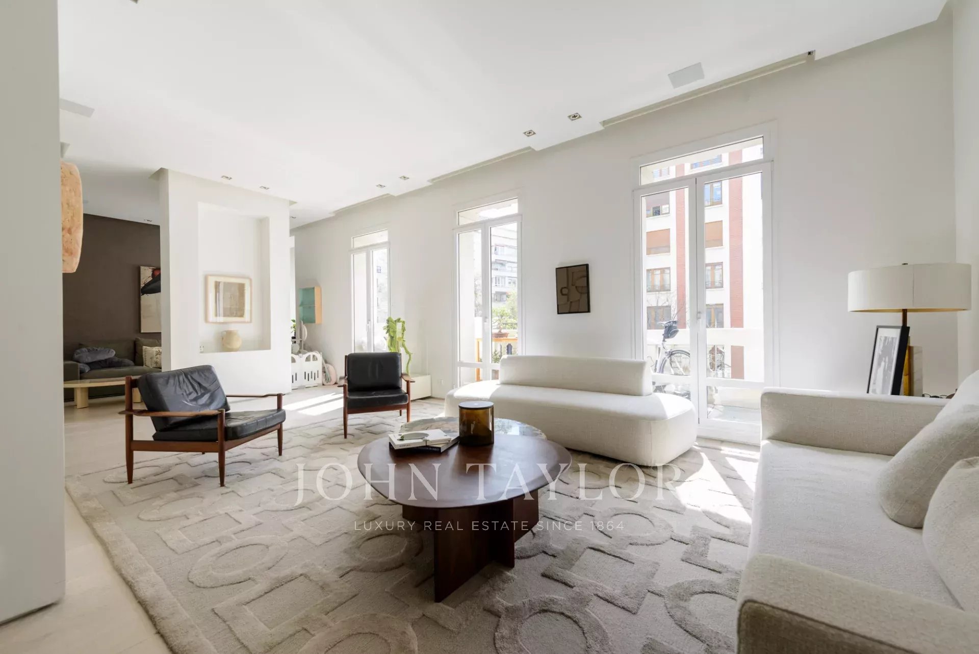 Esta inigualable vivienda se ubica junto al Parque del Retiro, en un espectacular edificio de fachada clásica. Destacamos especialmente sus cuatro balcones y la imponente altura de sus techos de más de 3 metros, que aportan amplitud y carácter a cada estancia. La reforma ha sido realizada por un reconocido equipo de diseñadores españoles, y cada detalle ha sido hecho a medida para este piso, incluidas las elegantes puertas de suelo a techo que refuerzan la sensación de sofisticación.