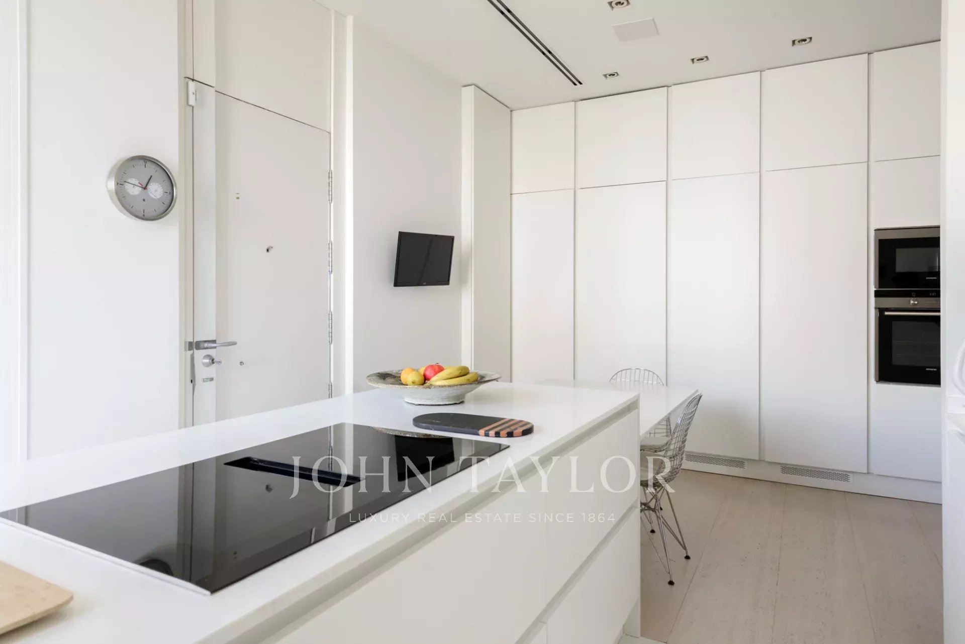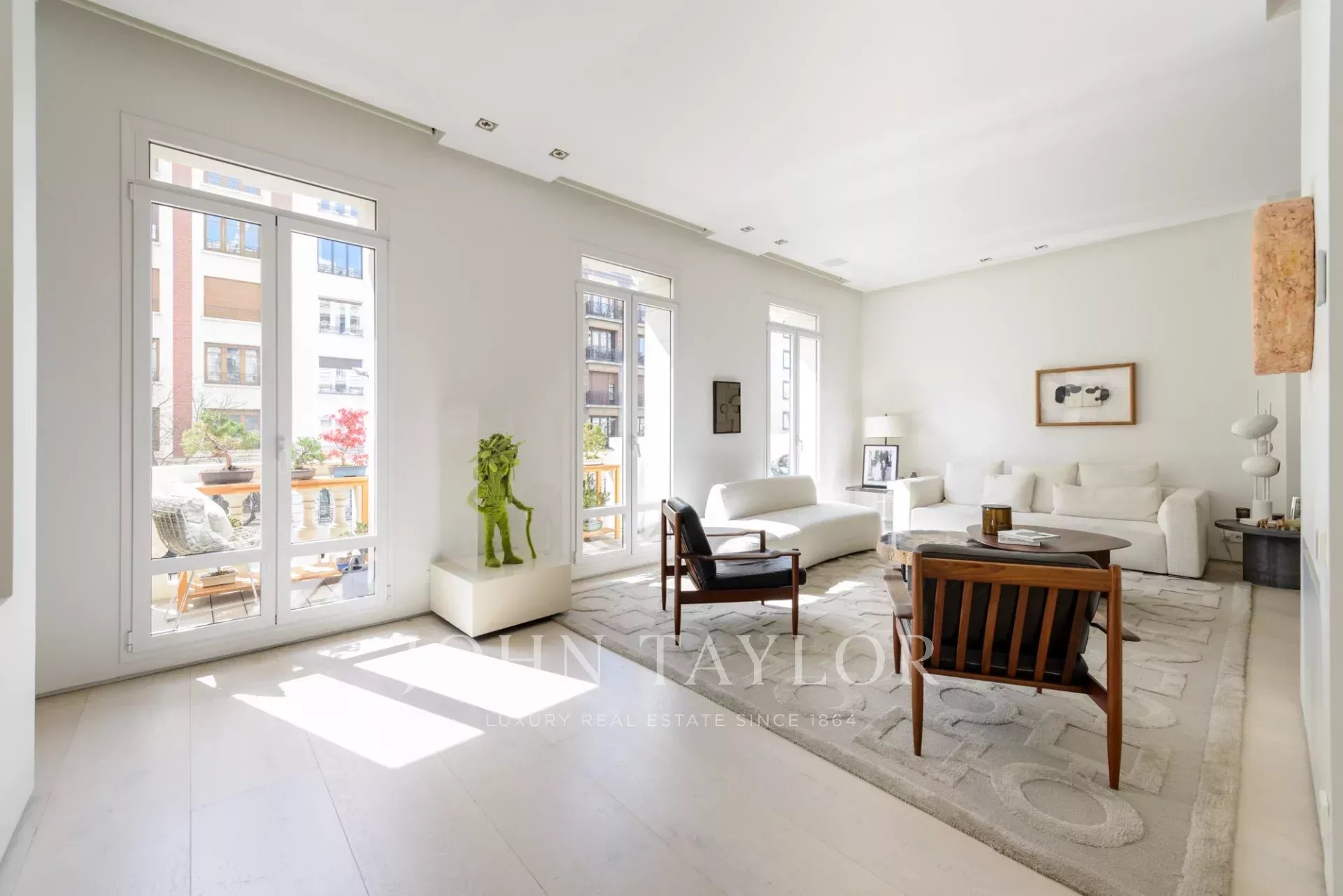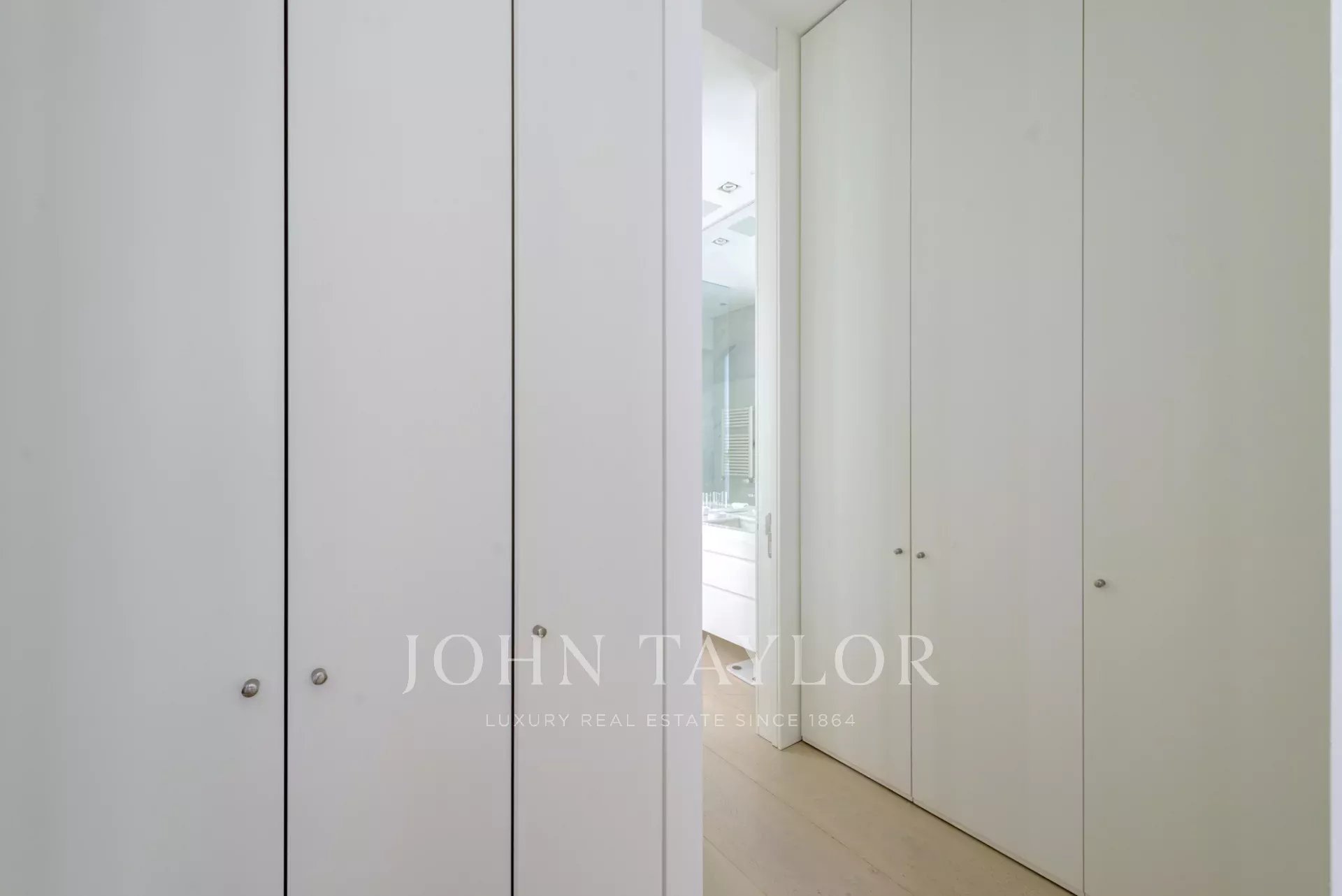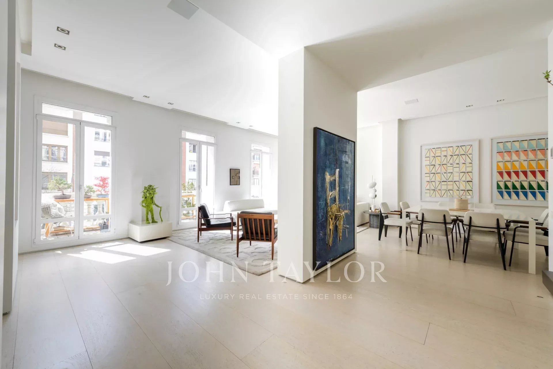 Esta inigualable vivienda se ubica junto al Parque del Retiro, en un espectacular edificio de fachada clásica. Destacamos especialmente sus cuatro balcones y la imponente altura de sus techos de más de 3 metros, que aportan amplitud y carácter a cada estancia. La reforma ha sido realizada por un reconocido equipo de diseñadores españoles, y cada detalle ha sido hecho a medida para este piso, incluidas las elegantes puertas de suelo a techo que refuerzan la sensación de sofisticación.