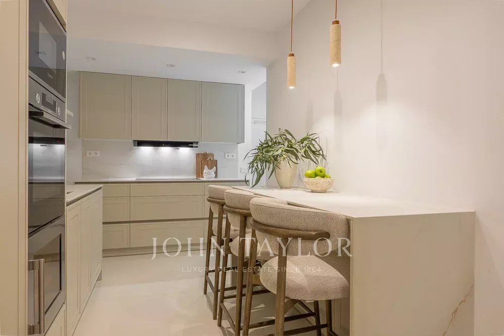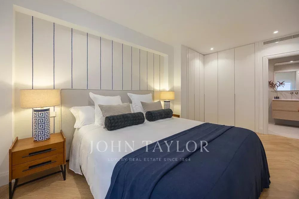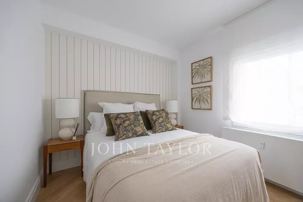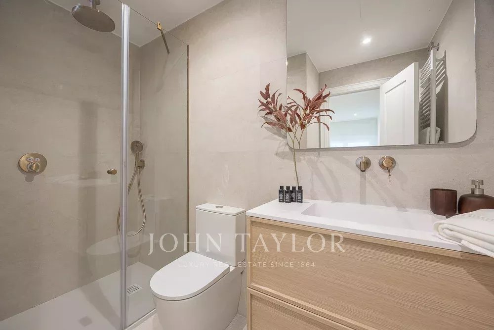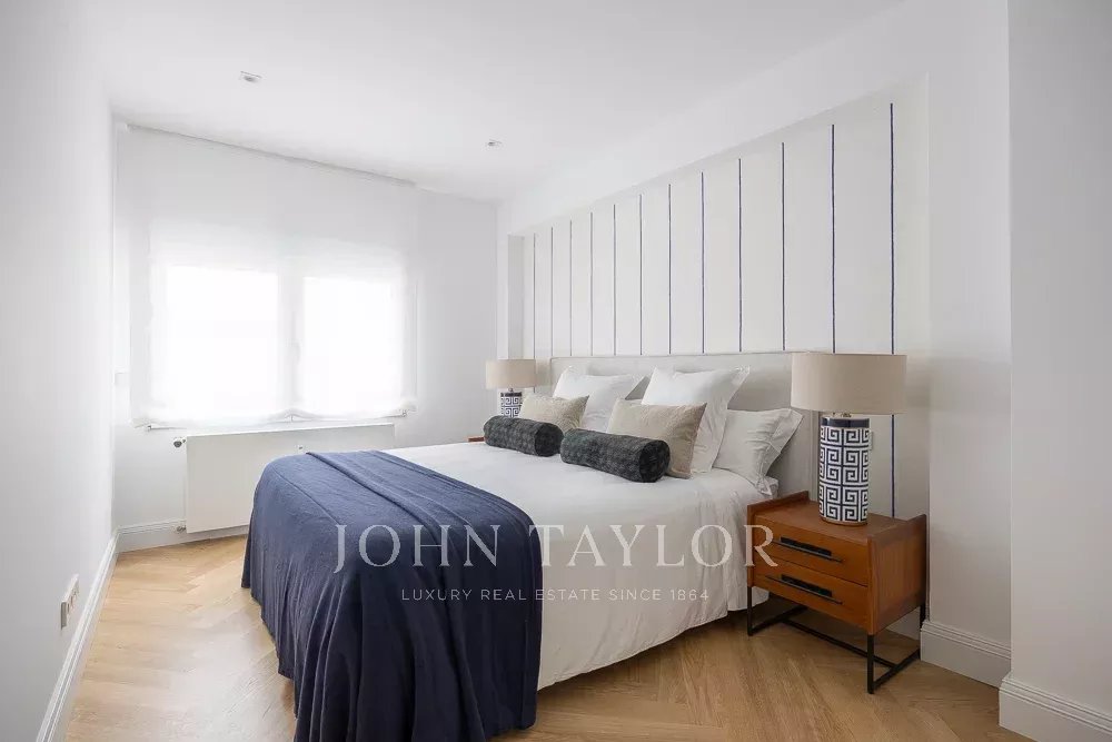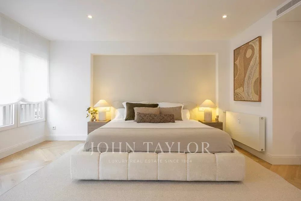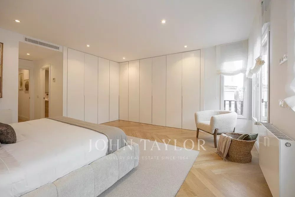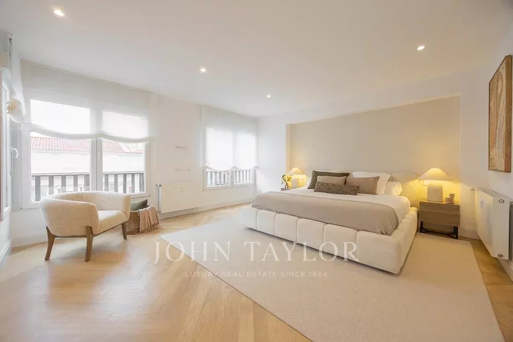 La zona de noche incluye tres dormitorios y tres cuartos de baño, todos en suite. El dormitorio principal destaca por su gran tamaño, muy por encima de la media de la zona, con dos amplios ventanales a la calle y cuarto de baño completo en suite.