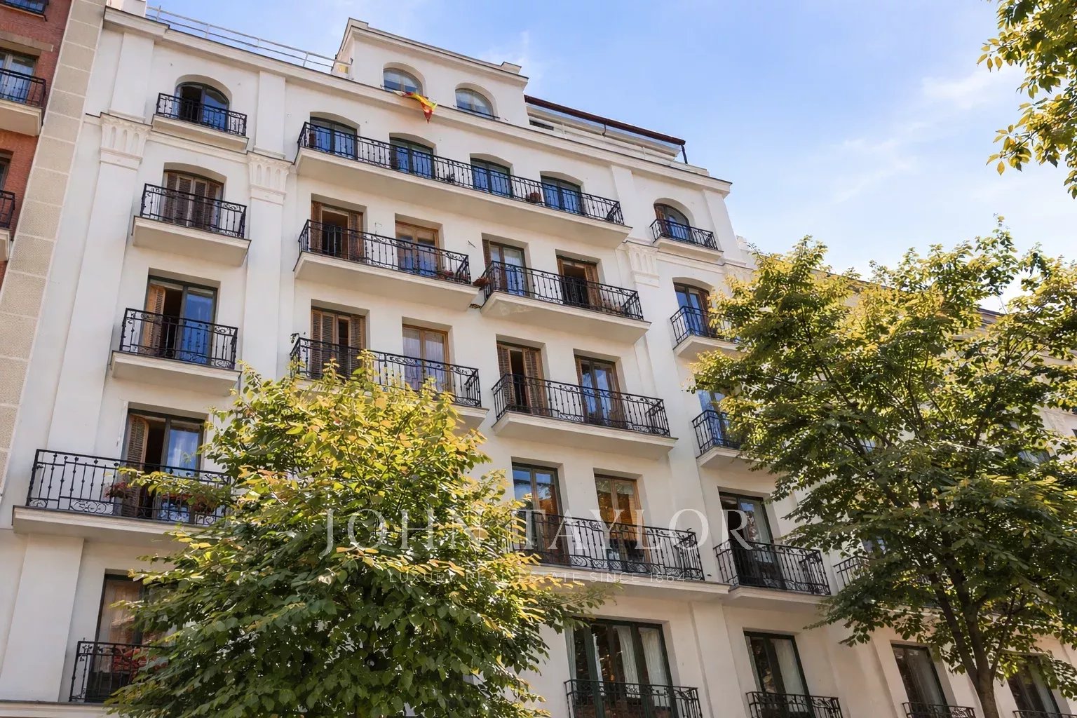 Con 149 m², techos de 3 metros y orientación oeste, la propiedad ofrece tres dormitorios y dos baños, distribuidos de manera que la luminosidad y la amplitud se perciben en cada estancia. Los tres balcones aportan luz y vistas al elegante entorno, mientras que la altura de la planta realza la sensación de amplitud.