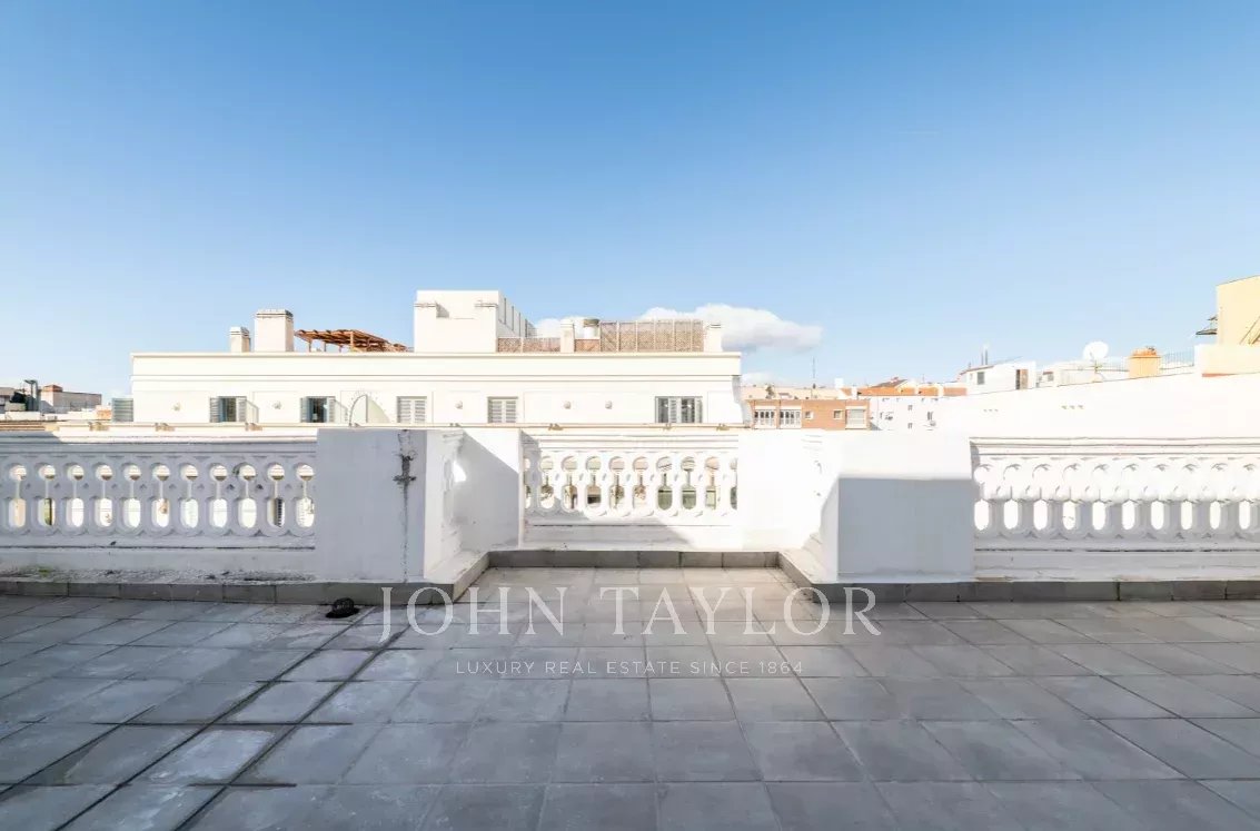 La vivienda, situada en la última planta de un edificio señorial representativo en Recoletos, destaca por su carácter clásico, portal elegante y excelente comunidad. Su orientación oeste proporciona luminosidad durante todo el día y privacidad absoluta, mientras que la amplia terraza de 48 m² permite disfrutar de espacios exteriores únicos con vistas despejadas.