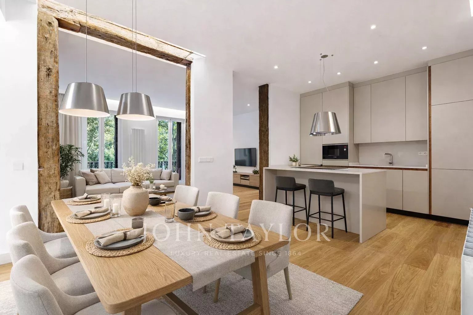 Situada en el barrio de Cortes, frente al Jardín Botánico. Esta elegante vivienda de 152 m² ofrece una interpretación sofisticada de la vida en el centro de Madrid. Un espacio donde la amplitud, la luz natural y la calidad constructiva definen una experiencia residencial serena y atemporal.