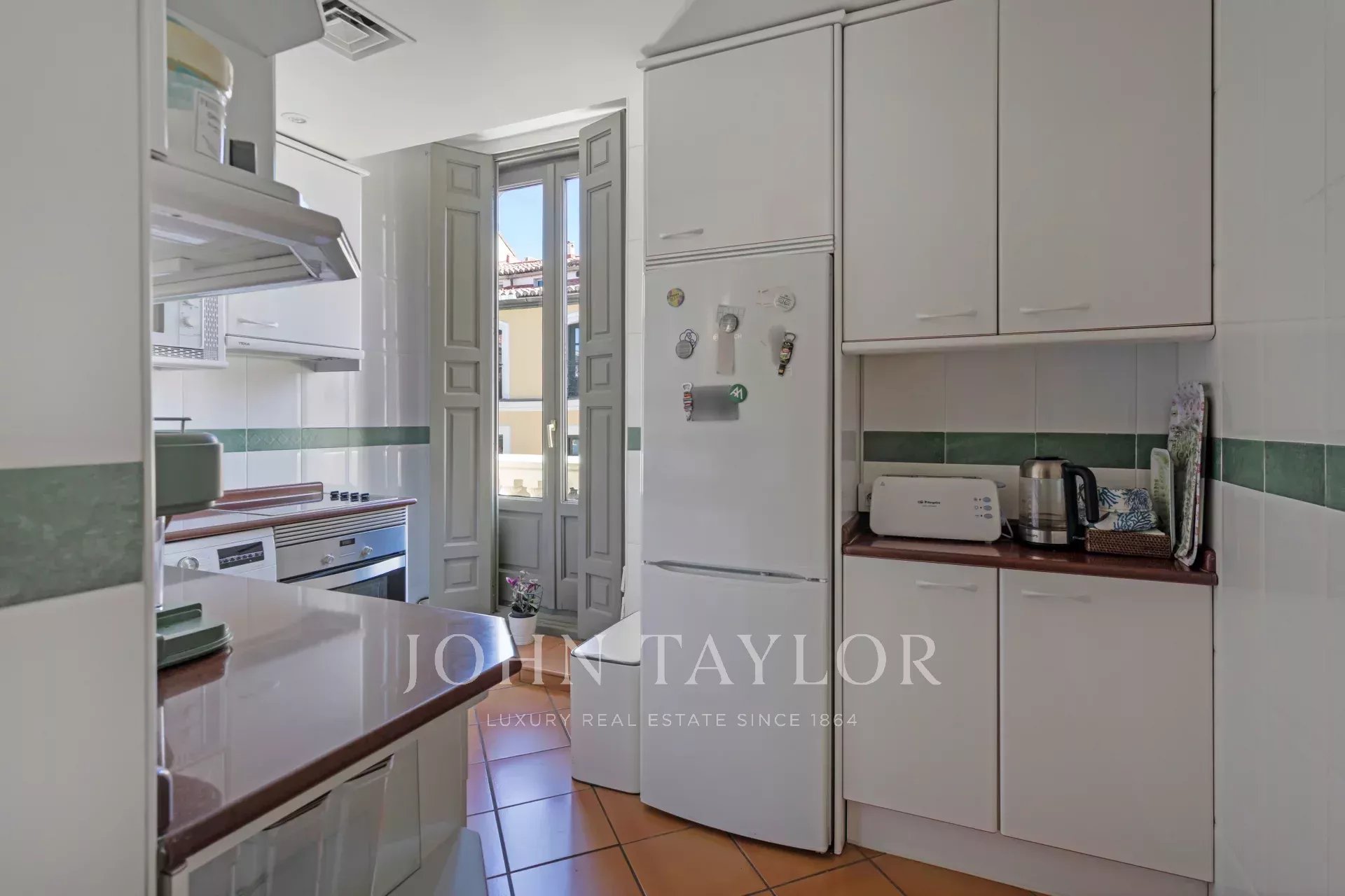 El edificio, con fachada señorial y portal de época, se encuentra en perfecto estado de conservación y forma parte del paisaje inmemorable de Justicia, una de las zonas más vibrantes y sofisticadas de Madrid, rodeada de galerías de arte, boutiques de autor, restaurantes con estrella y todos los servicios a pie de calle.