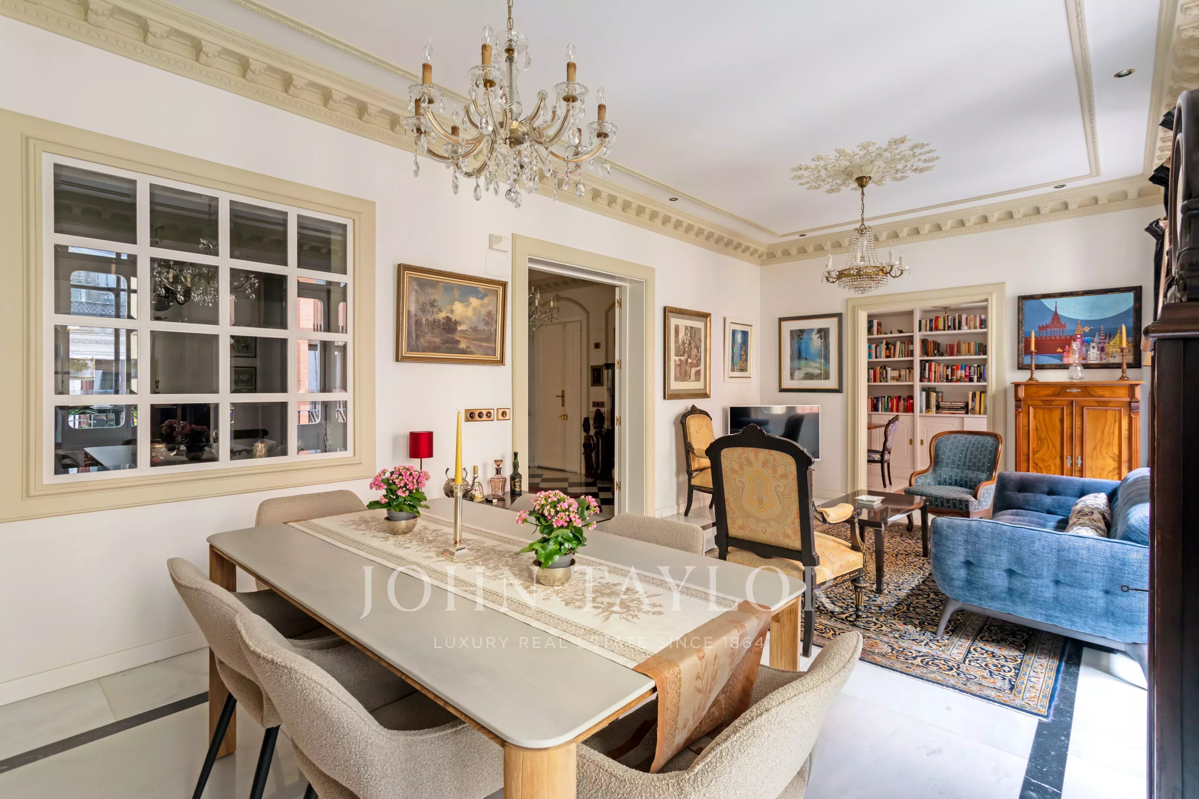 El interior revela un cuidado lenguaje estético que combina carácter y atemporalidad, evocando la esencia clásica del entorno con una interpretación contemporánea y sofisticada. El resultado es un espacio con identidad propia, pensado para quienes valoran la belleza en los detalles y la singularidad en cada elemento.