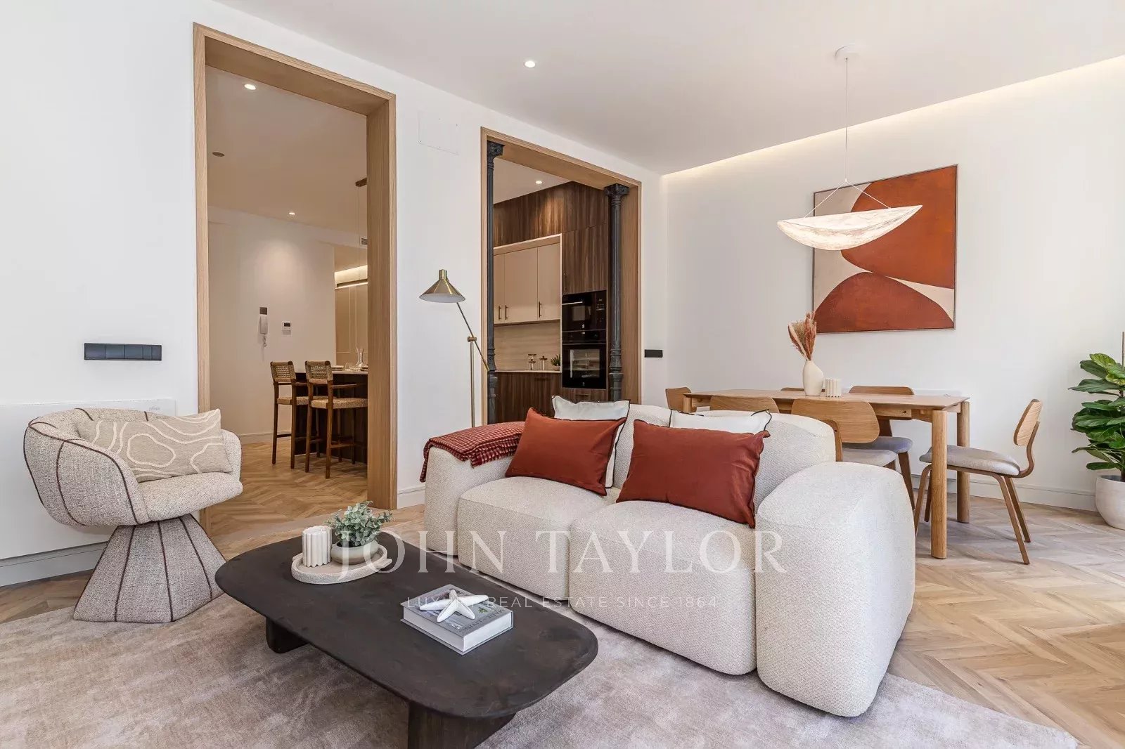 Cuenta con 127 m² construidos, organizados en un amplio y luminoso salón con cocina integrada y una elegante isla central que articula el espacio. La zona de comedor, generosa y bien definida, convierte esta estancia en el auténtico corazón de la vivienda, ideal tanto para el día a día como para recibir invitados.